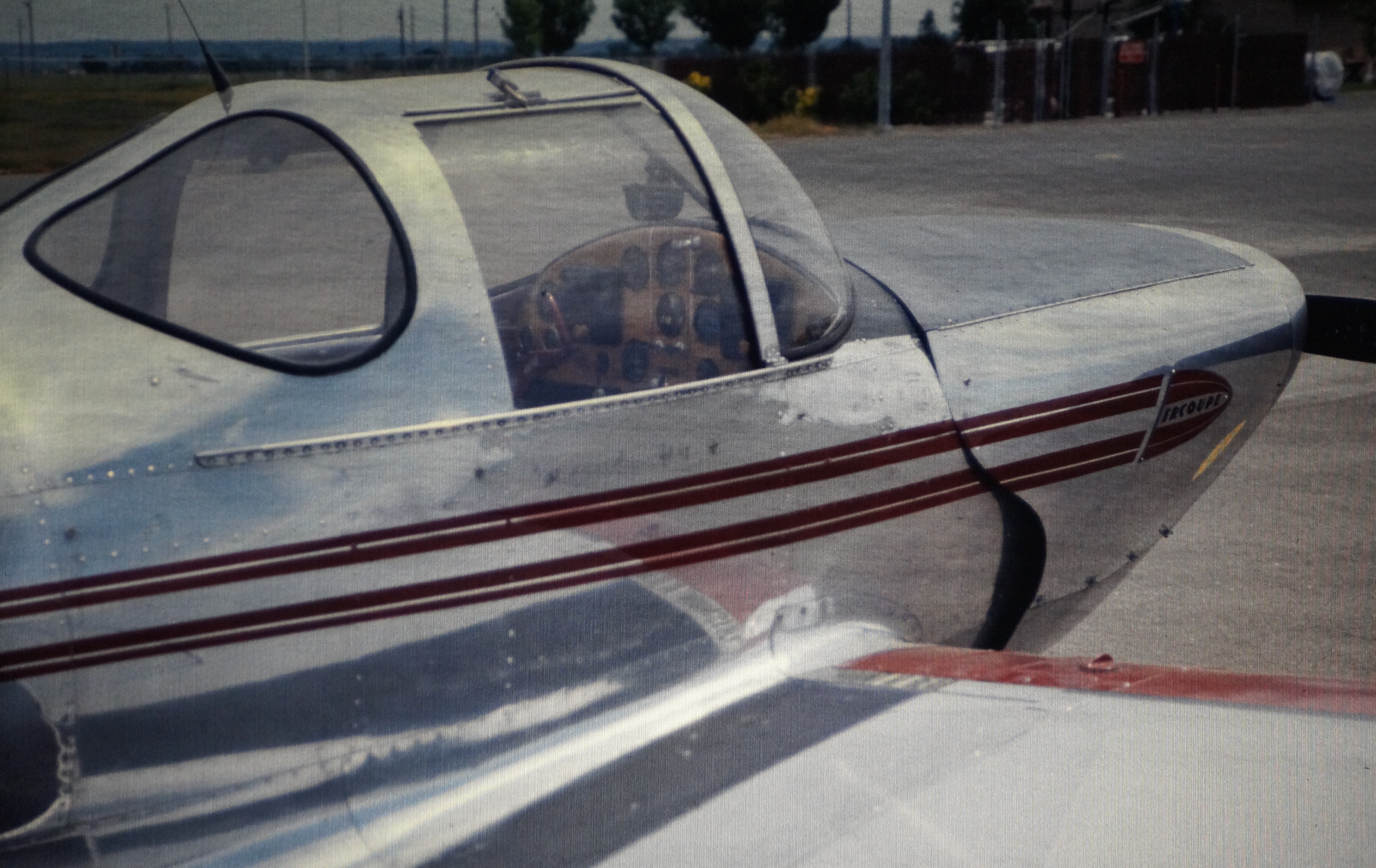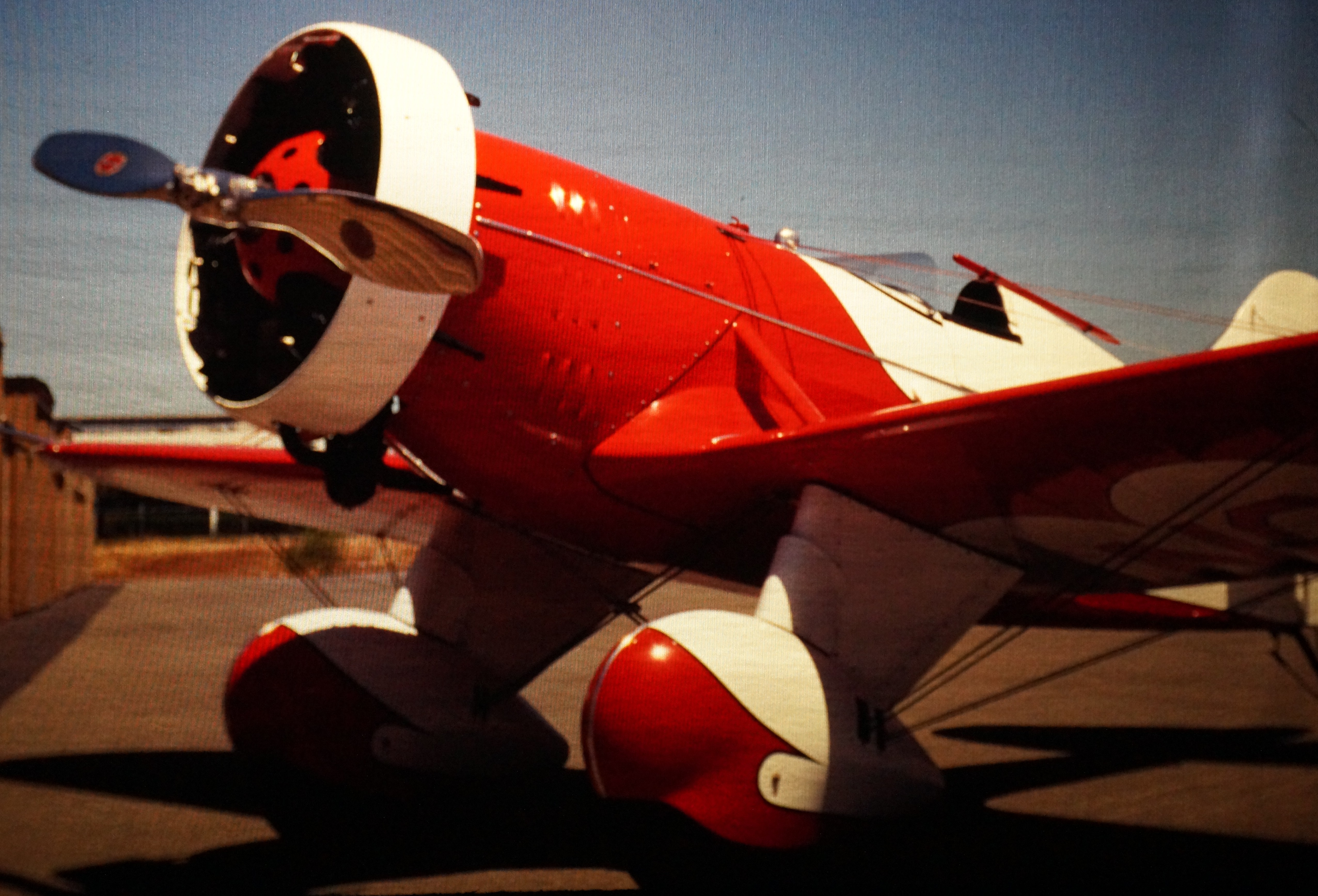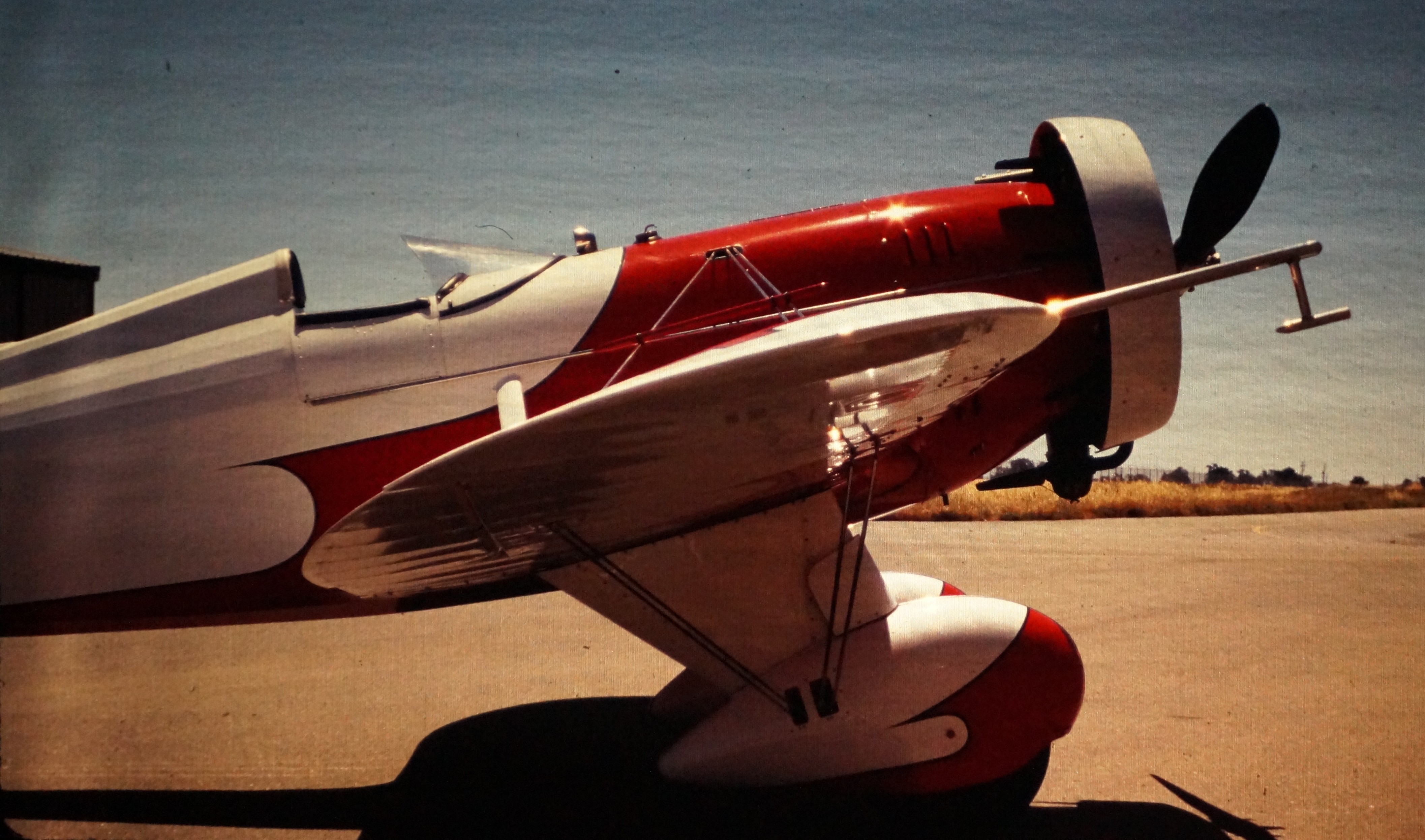 Recreation of a Granville Brothers GeeBee Sportster, shot at Lincoln Harder airport (LHM). It looked about as hard to fly as the originals. Slides projected on screen and photographed for the vintage look.