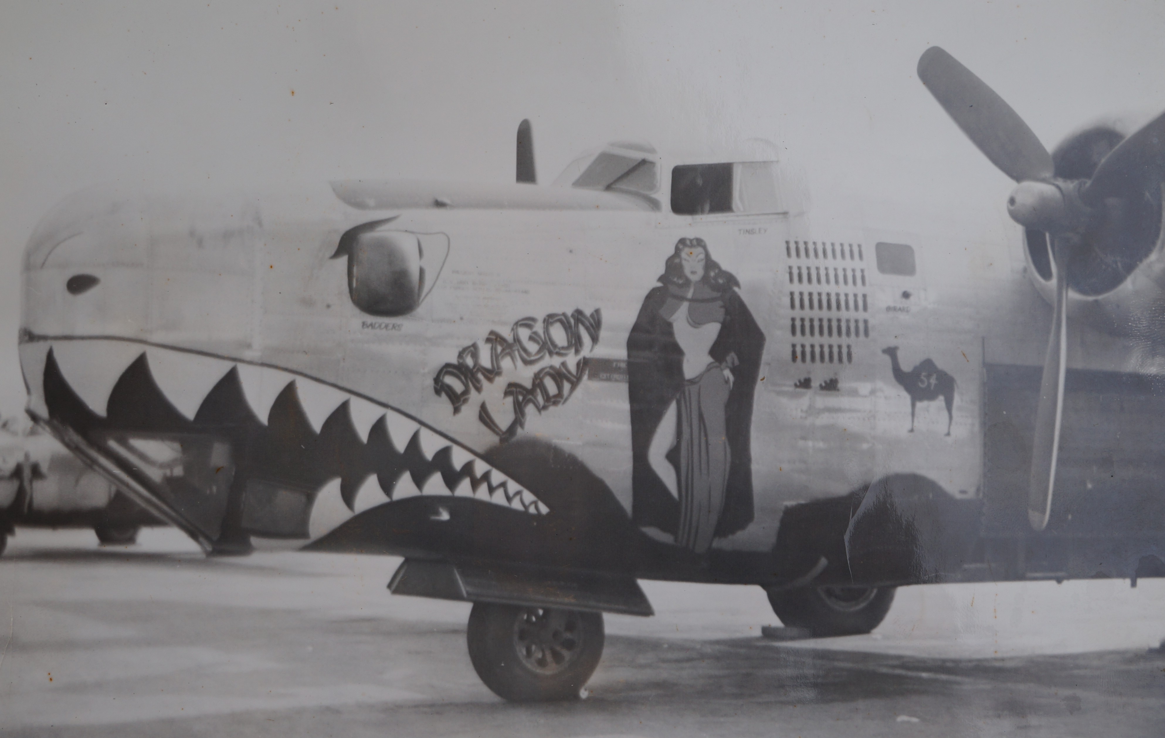 Dragon Lady has 43 bomb symbols, two sunken ships and a camel marked ’54’. Black camo paint underneath, shark’s mouth, front gun turret faired over.