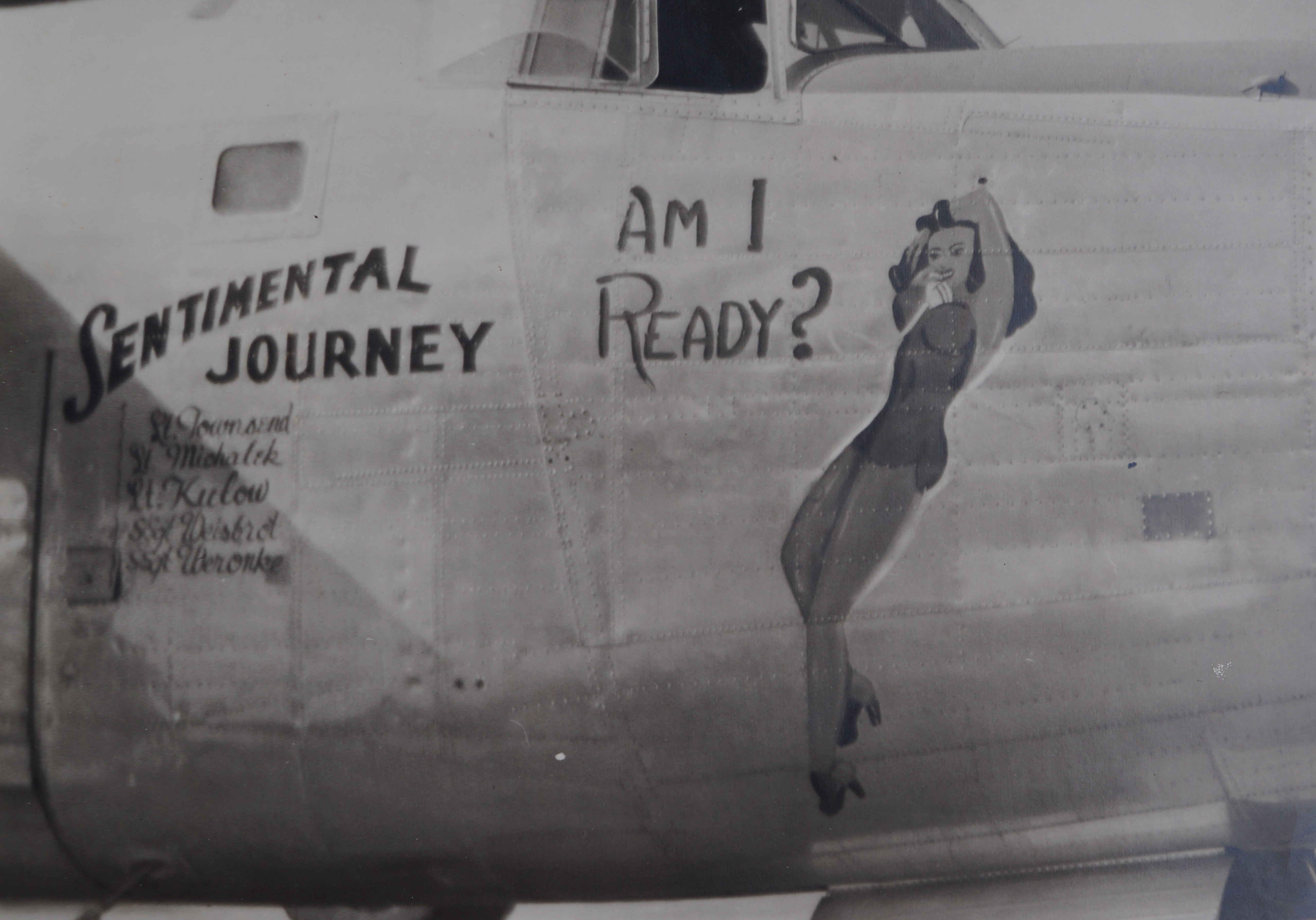 This Liberator had two names, Sentimental Journey and Am I Ready? Crew, Lt. Townsend, Lt. Michalek, Lt. Kulow, Ssgt, Weisbrot, Ssgt Weronke.