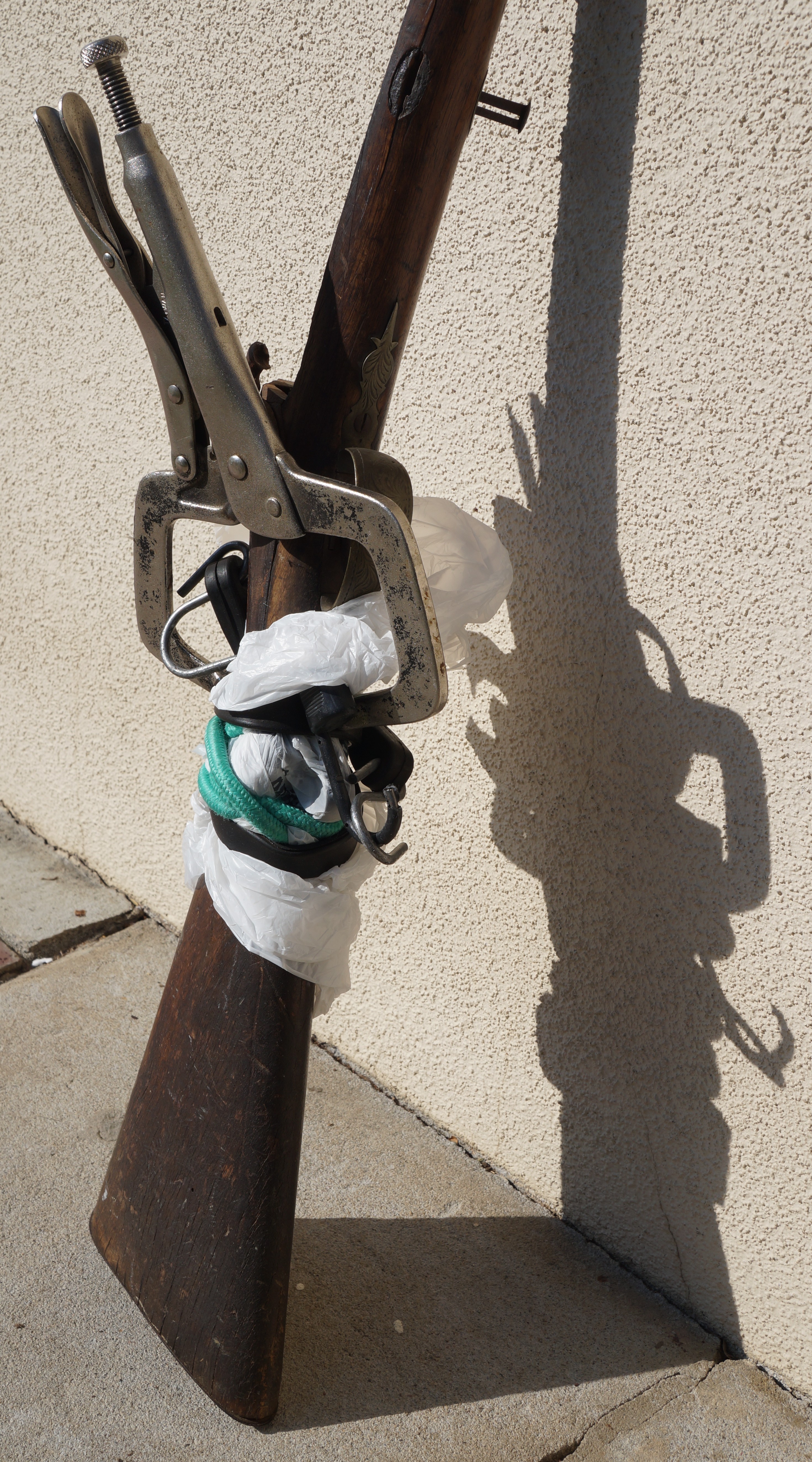 But this is a battered wall-hanger so I don’t feel so constrained. I also could not follow their advise to dissemble the gun before starting because any attempt would have destroyed the screws and the wood.