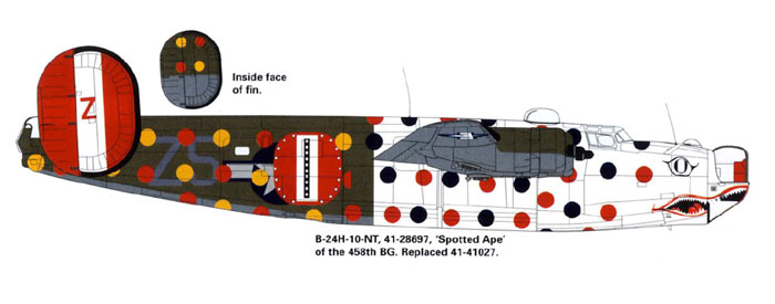Would you believe a B-24 wearing polka dots? The wild paint scheme was used on “assembly missions” so other bombers could form proper formation. This one was named the Spotted Ass Ape.