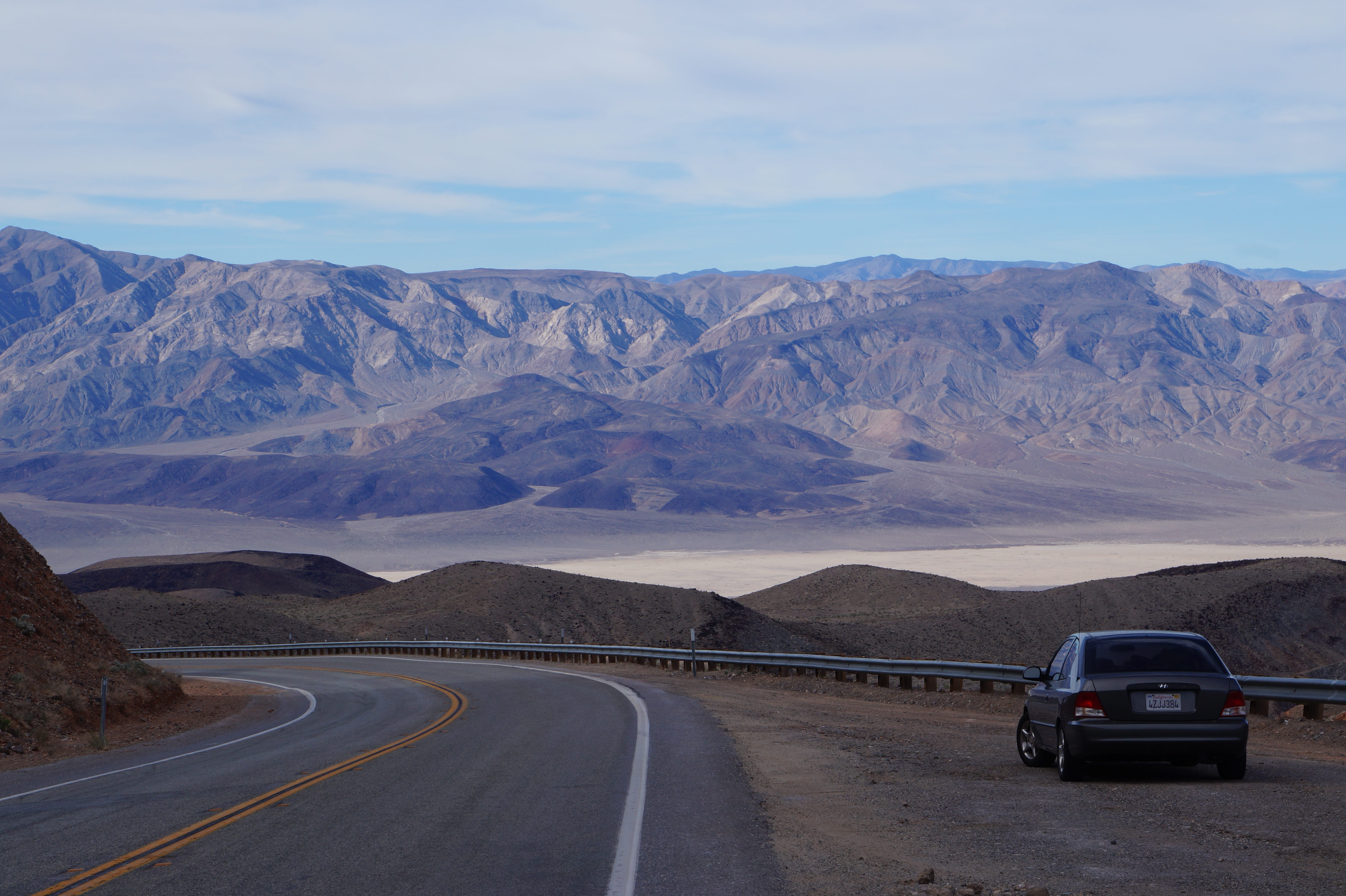 From Lone Pine to Death Valley is 100 miles and speed limits are 55 to 65. Must not be lucrative for John Law though because no speed traps were evident. Nonetheless I kept Deathwish Drang, my diminutive (South) Korean clown car, at a sedate pace, pulling over for every FUV in a hurry. Gas at Panamint Springs was $4.99 per gal-I didn’t buy any.