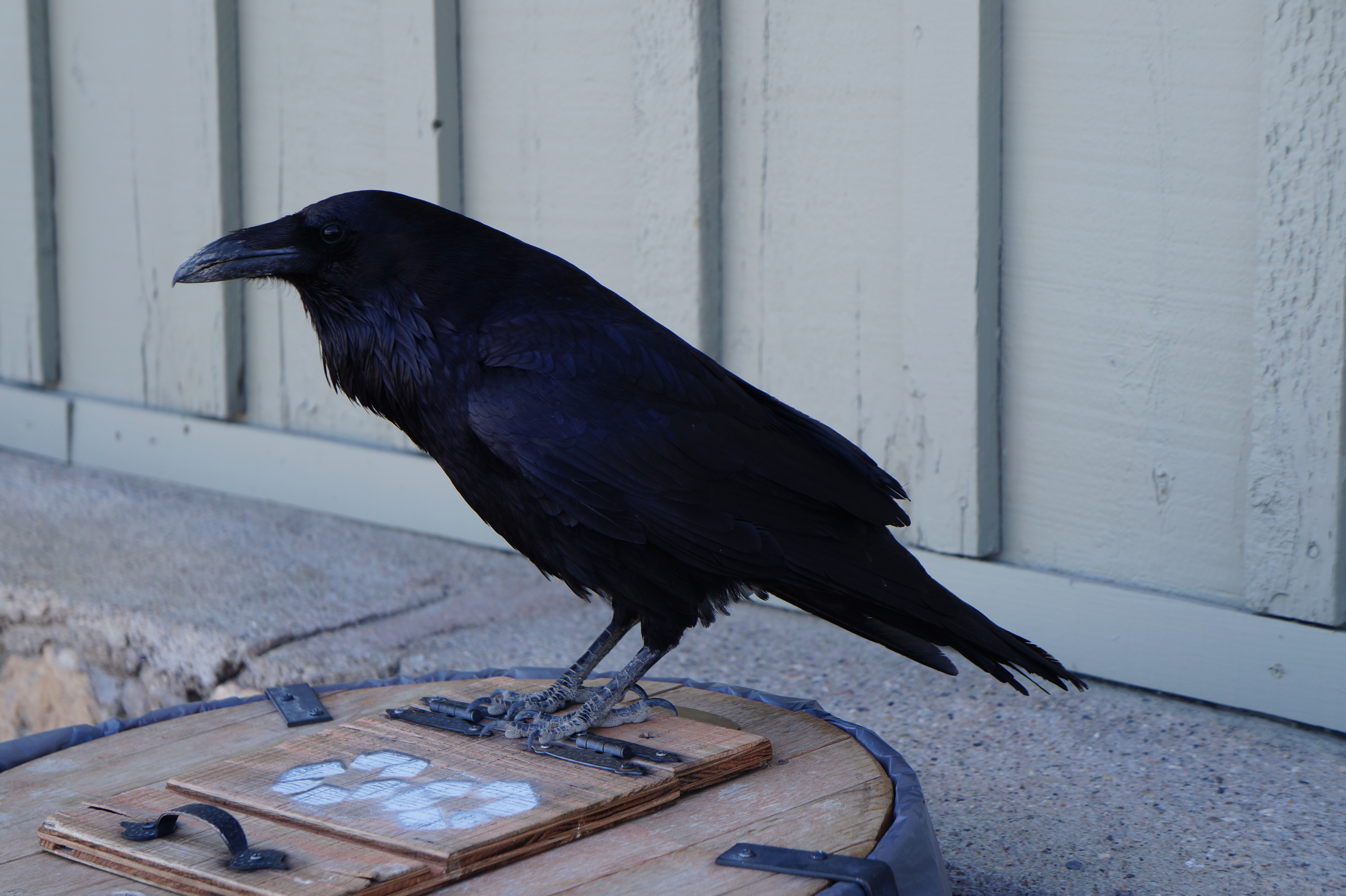 This young raven had been fed previously by tourists not following the rules and was brave, bold and quite unafraid in begging me for food. I was determined but dropped a piece of my lunch apple so he got rewarded for bad behavior anyway.