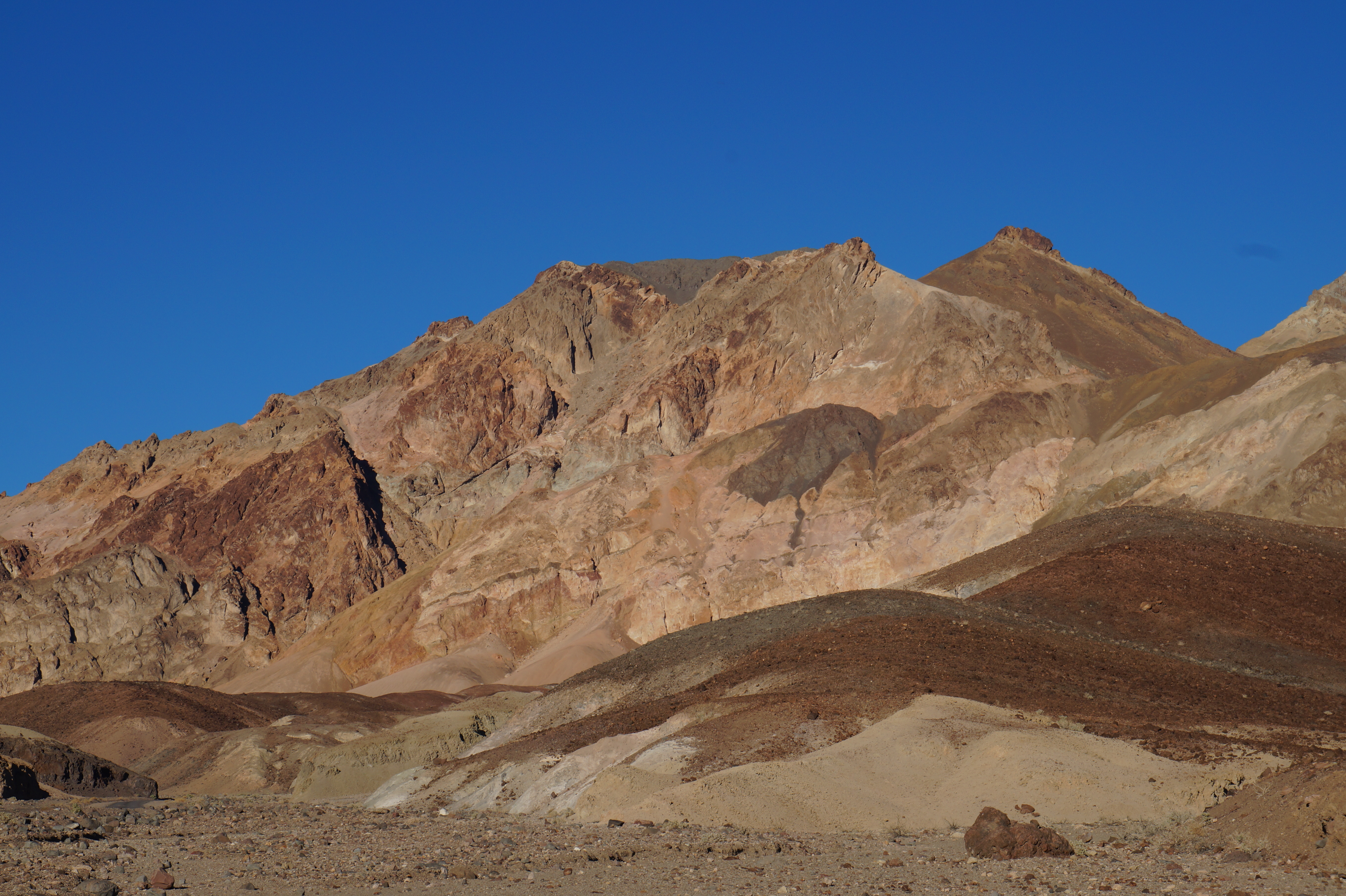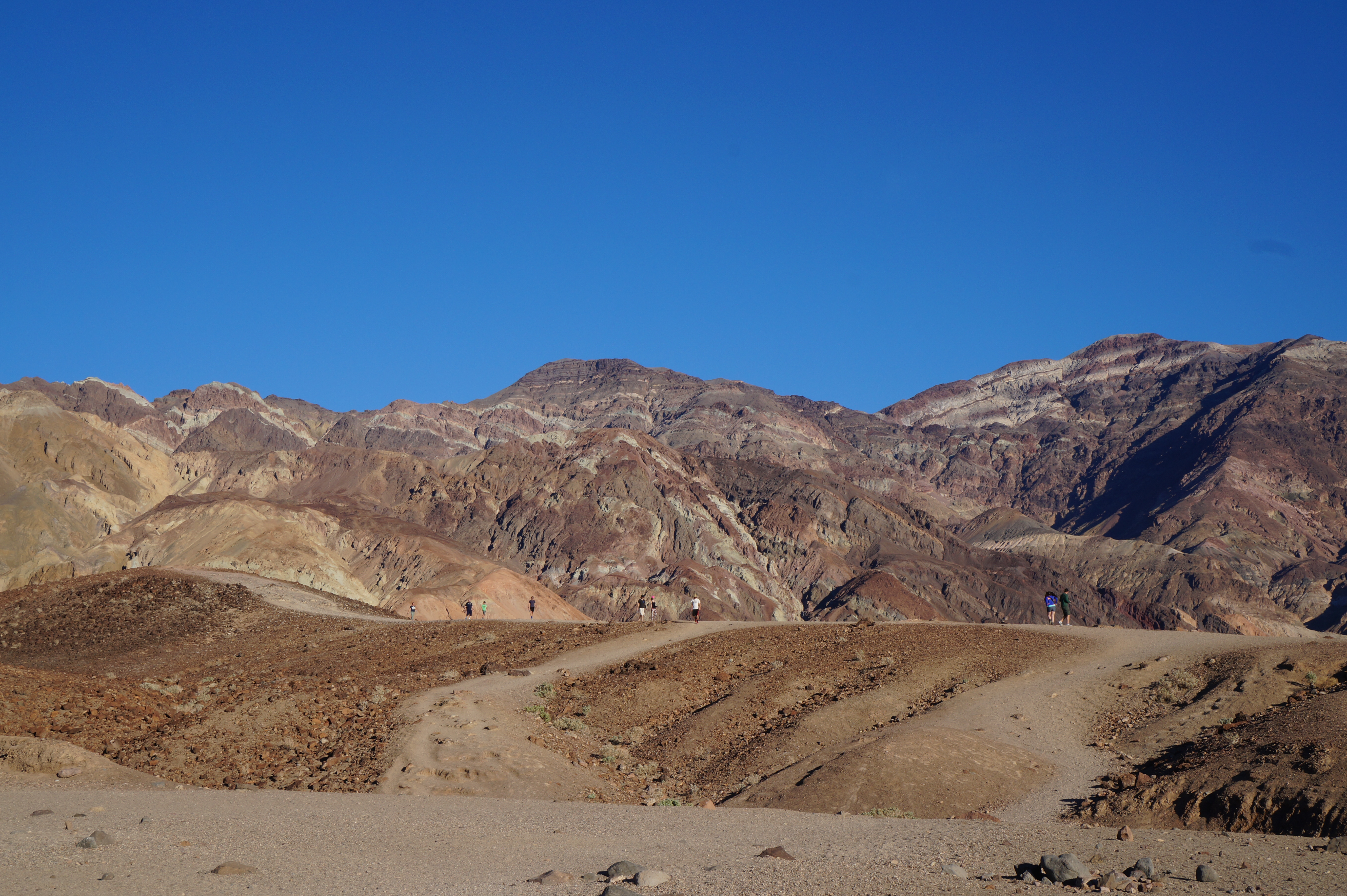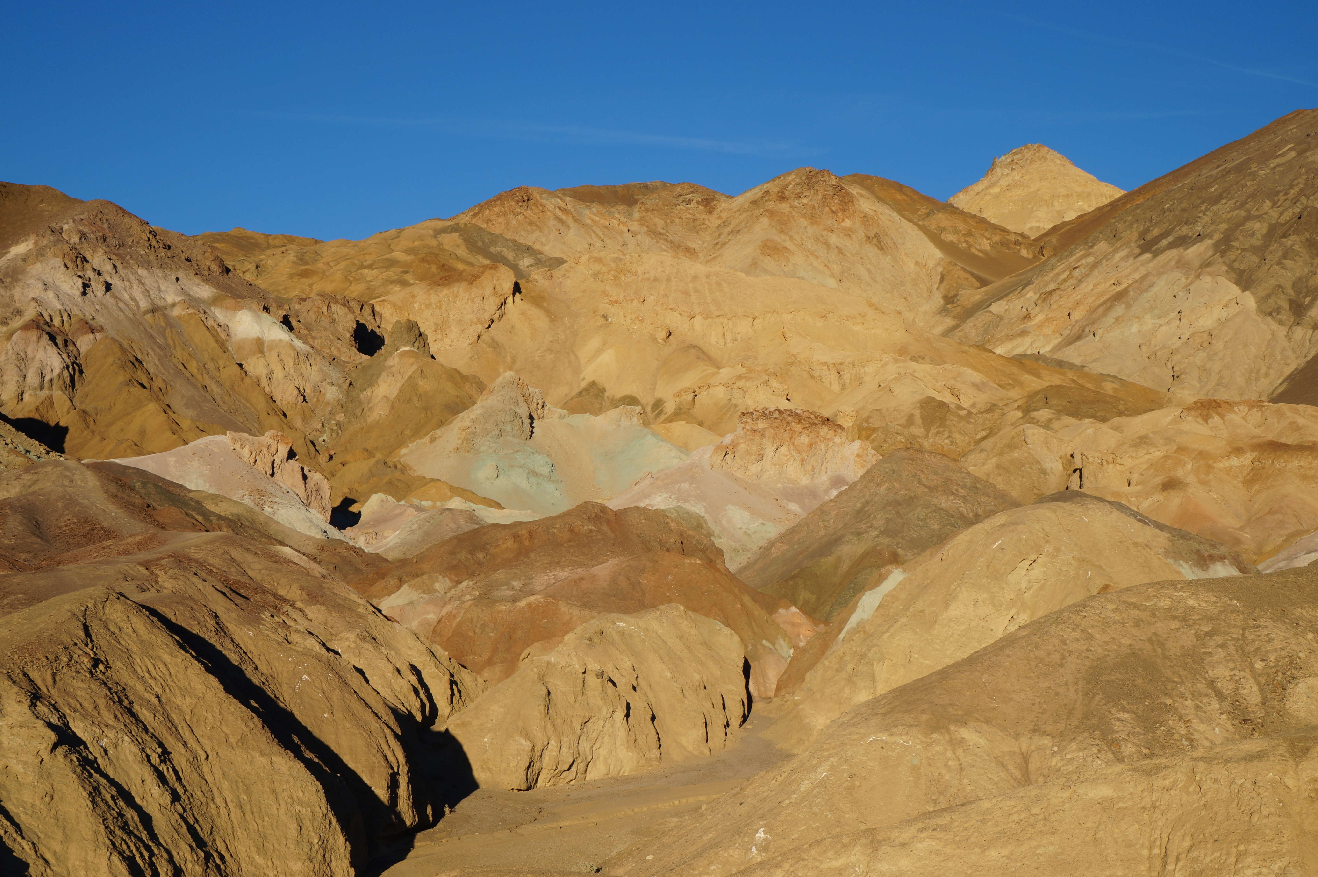 Artist’s Palette is a turn-off with parking and a chemical toilet near the end of Artist’s Drive that is cut into the Black Mountains and famous for its colors.