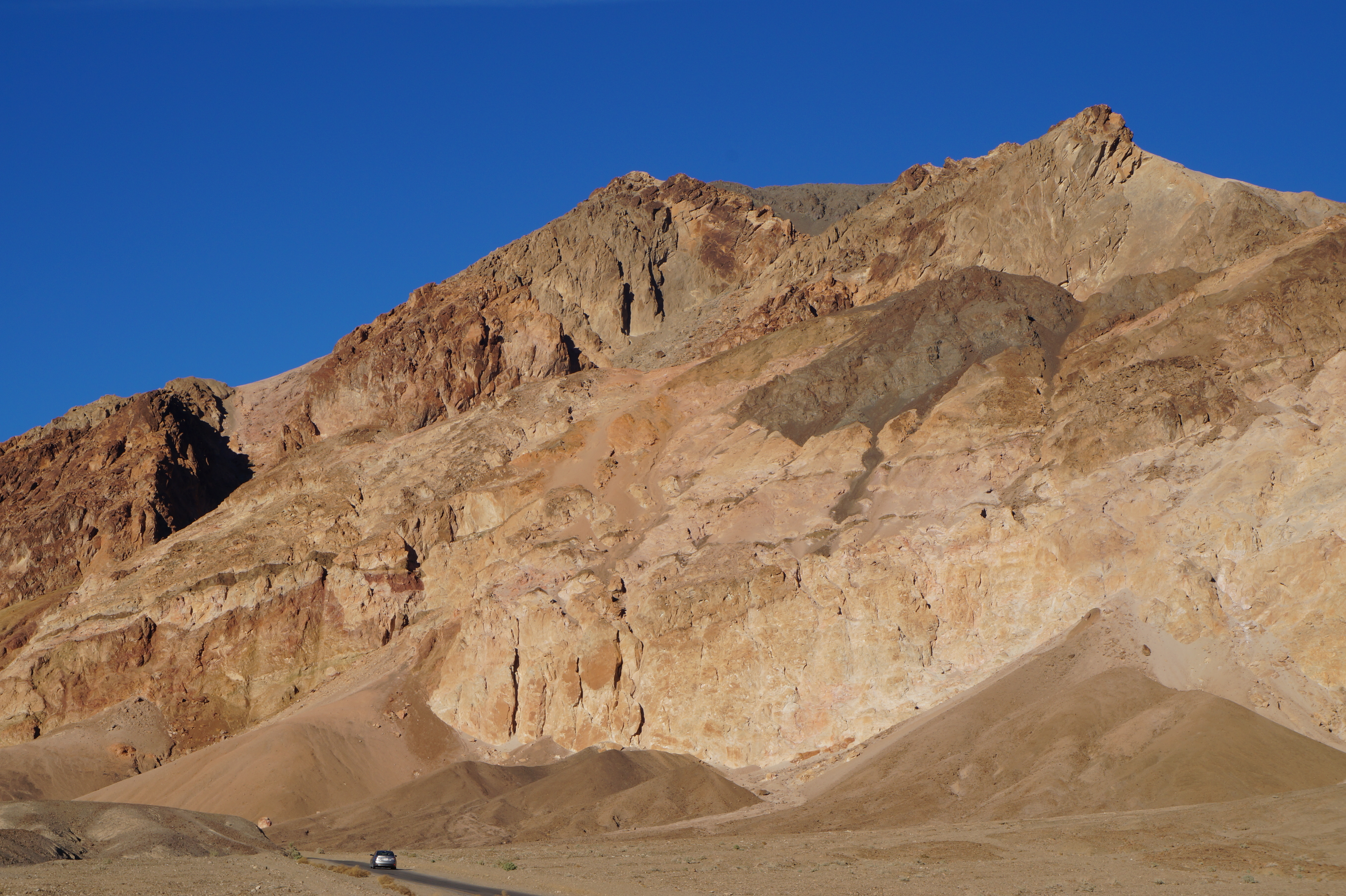 An interesting geological feature of Artist’s Drive is the clipping of the ‘toes’ of each alluvial fan by a tectonic fault that runs in an almost straight line parallel to the highway-though it’s most visible in aerial shots.