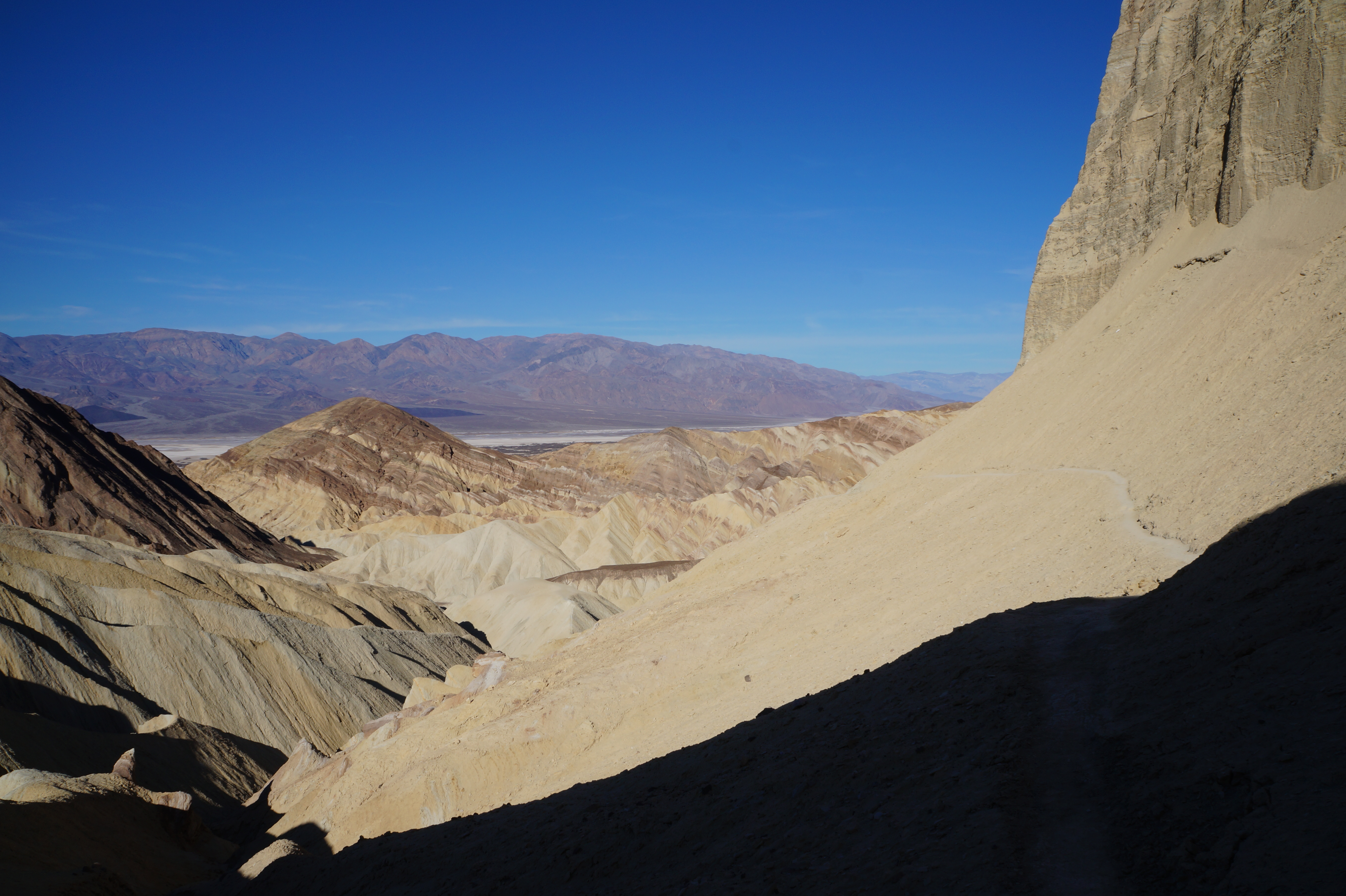 Since the point is closed for repair I hiked from Golden Canyon to Gower Gulch and to within about a mile of the point before giving up. The hike is strenuous in some points so you’ll want shoes with more grip than my worn Oregon hipster shoes provide. If hiking the gullies and draws bring water and tell someone where you are going before leaving so they can find your body.
