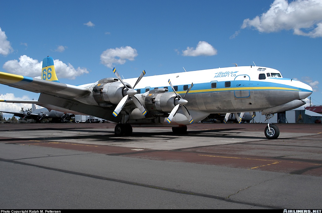 I like the old planes best so it was fun to spot what I think was tail number 66 (FAA # N6353C), a converted DC-7 from Butler Aircraft Co. Photo via Airliners.net.