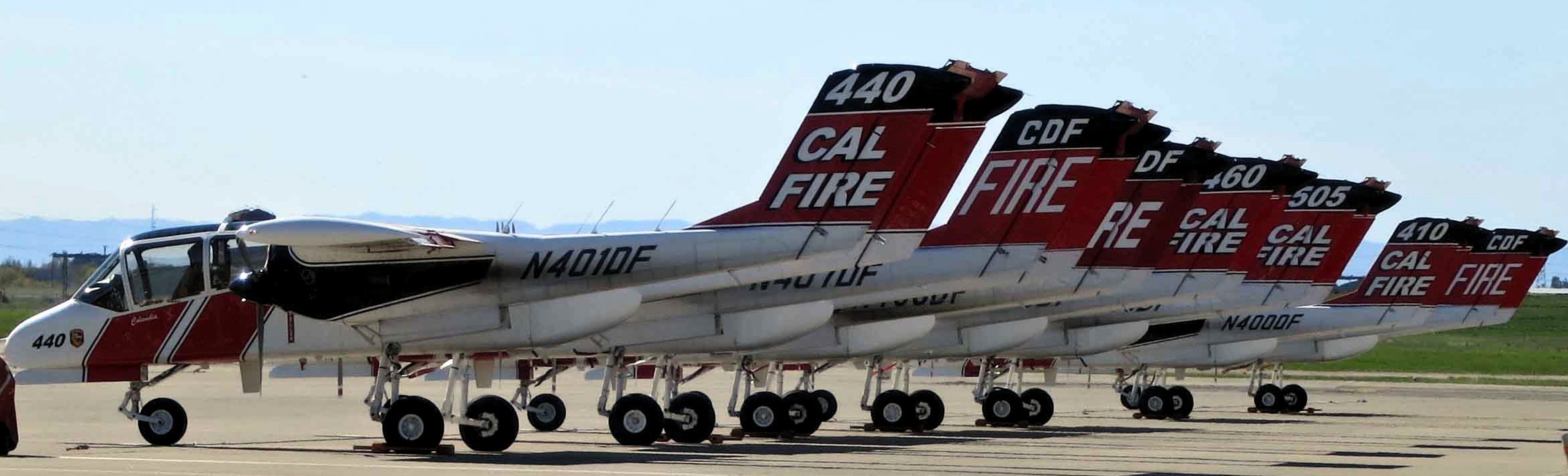 The giant tankers are impressive but the usual CAL FIRE types are seen more often, like these OV-10A Broncos, which CAL FIRE has 14 examples of. (Photo by Bill Gabbert).