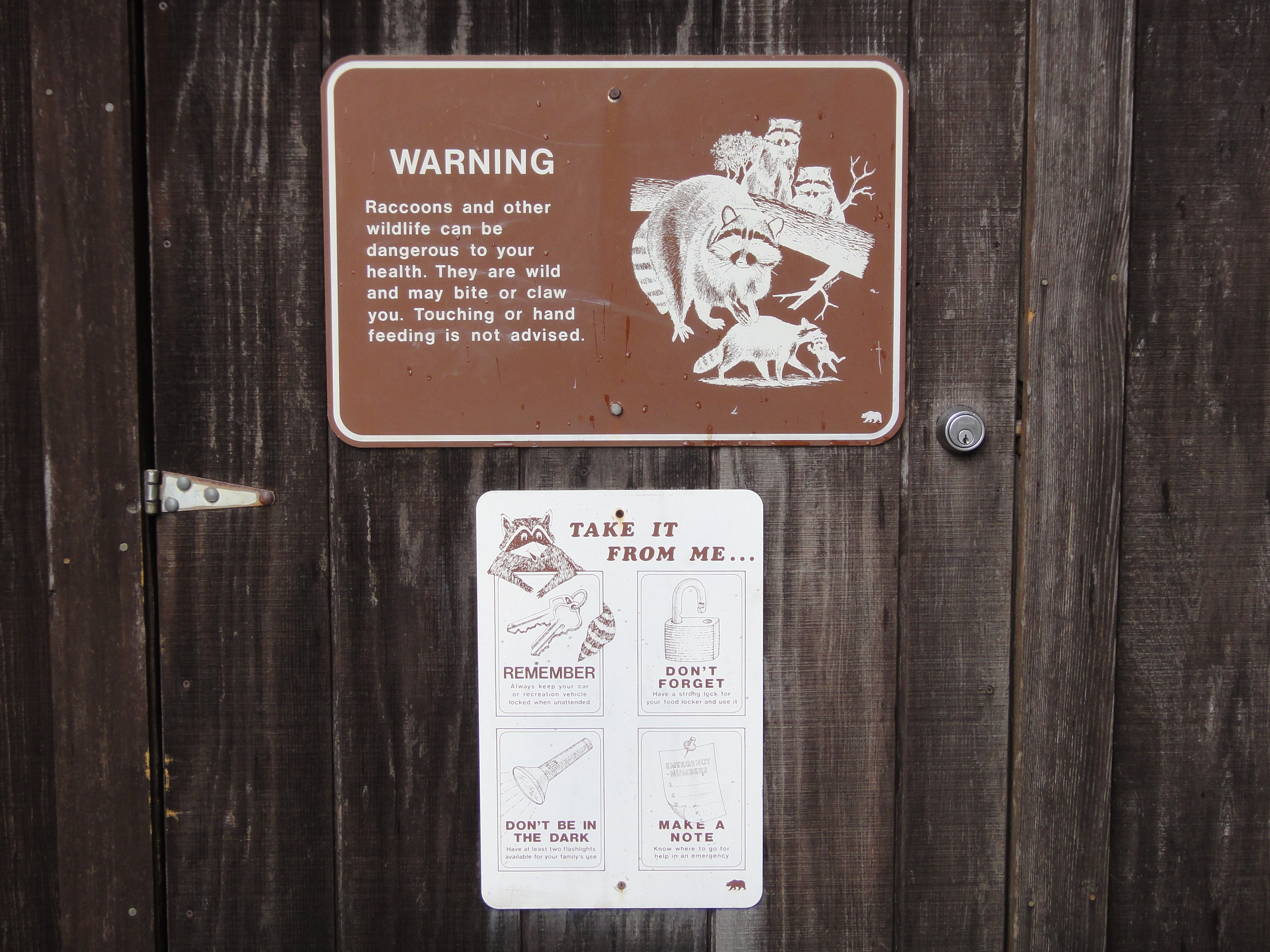 Each site had a level tent spot, a wooden storage cabinet with hasp for lock, very solid steel fire pit with grill and a picnic table with benches.