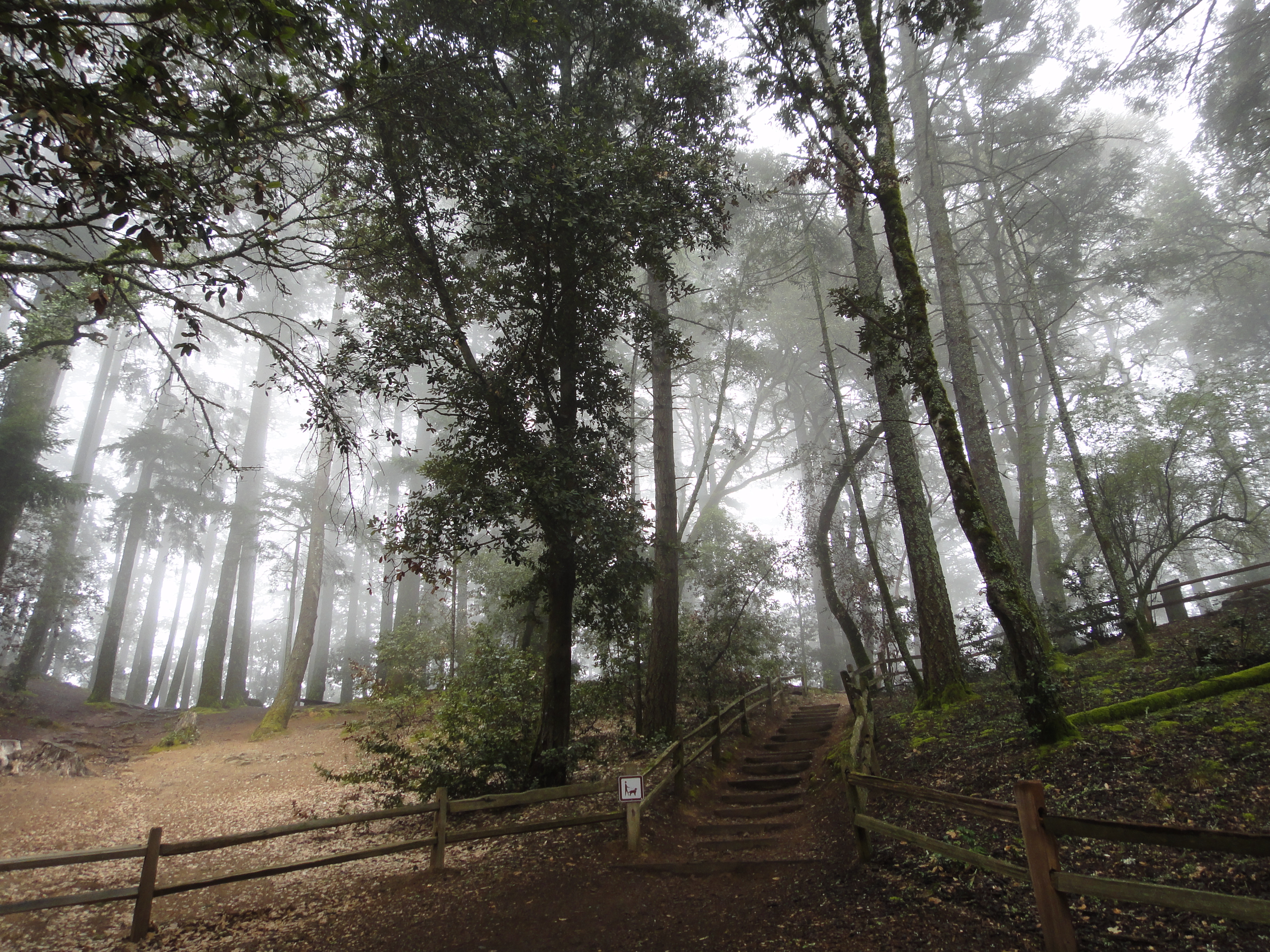 After resting and reading the park brochure we set off at daughter-San’s killing pace down the aptly named Steep Ravine Trail. Amazing how much greenery and ferns Mt. Tam still has, how startling that trees can condense so much water from mere fog.
