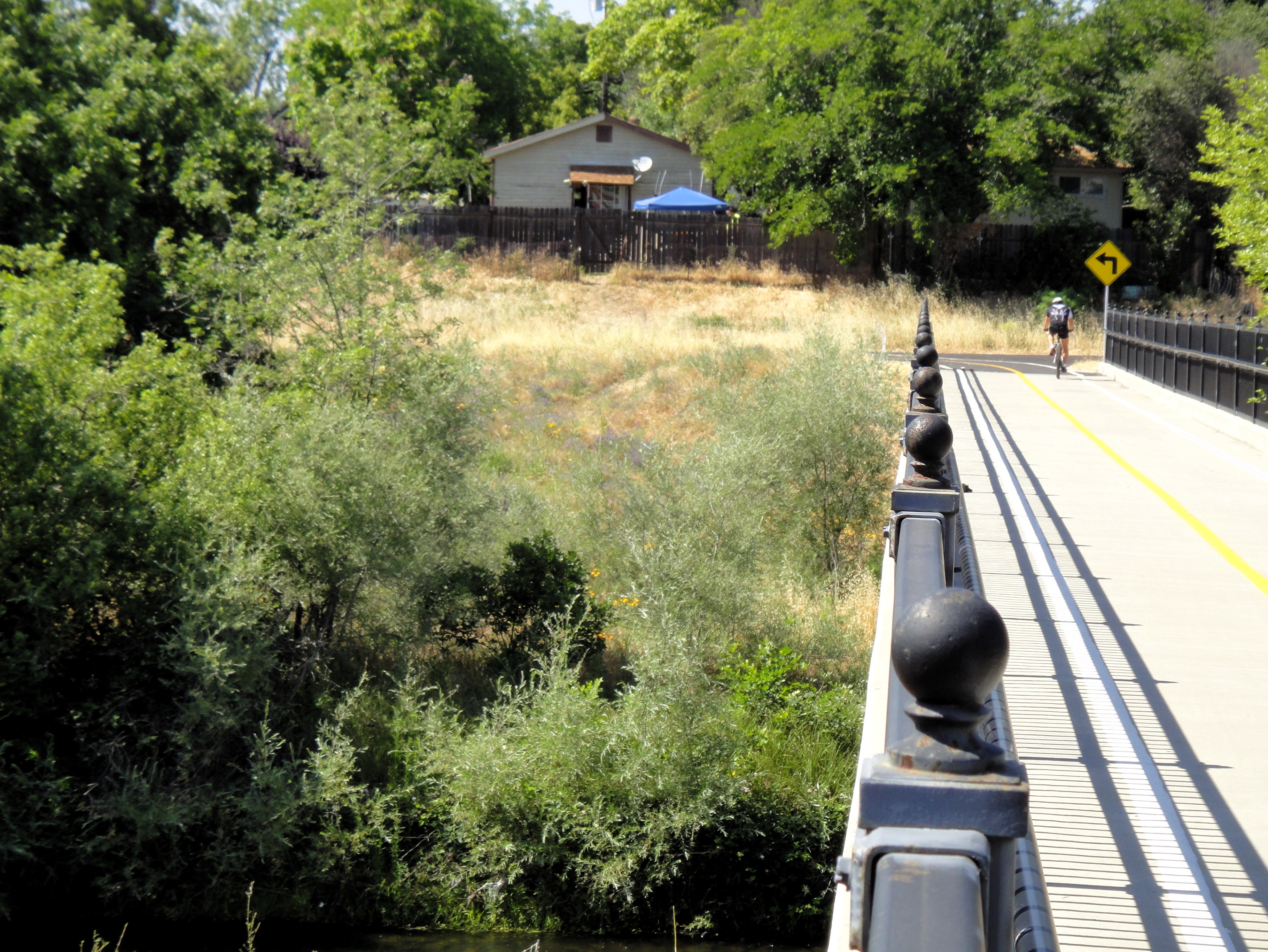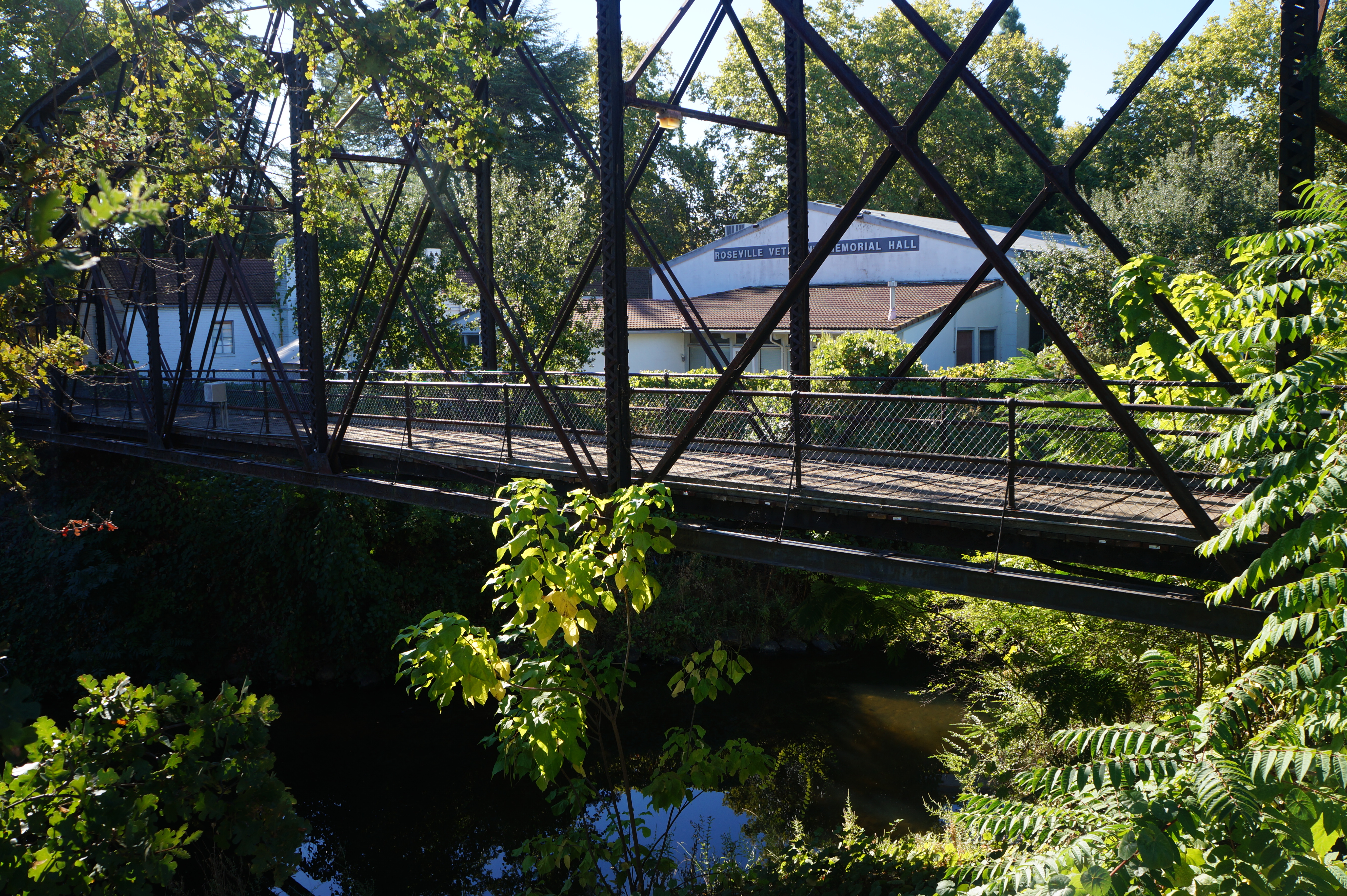 Below, a Parker through truss footbridge over Dry Creek, the “Rube” F. Nelson Footbridge” was an ice plant rail overpass that was moved to bridge Dry Creek between the old fire station and Veterans Memorial Hall.