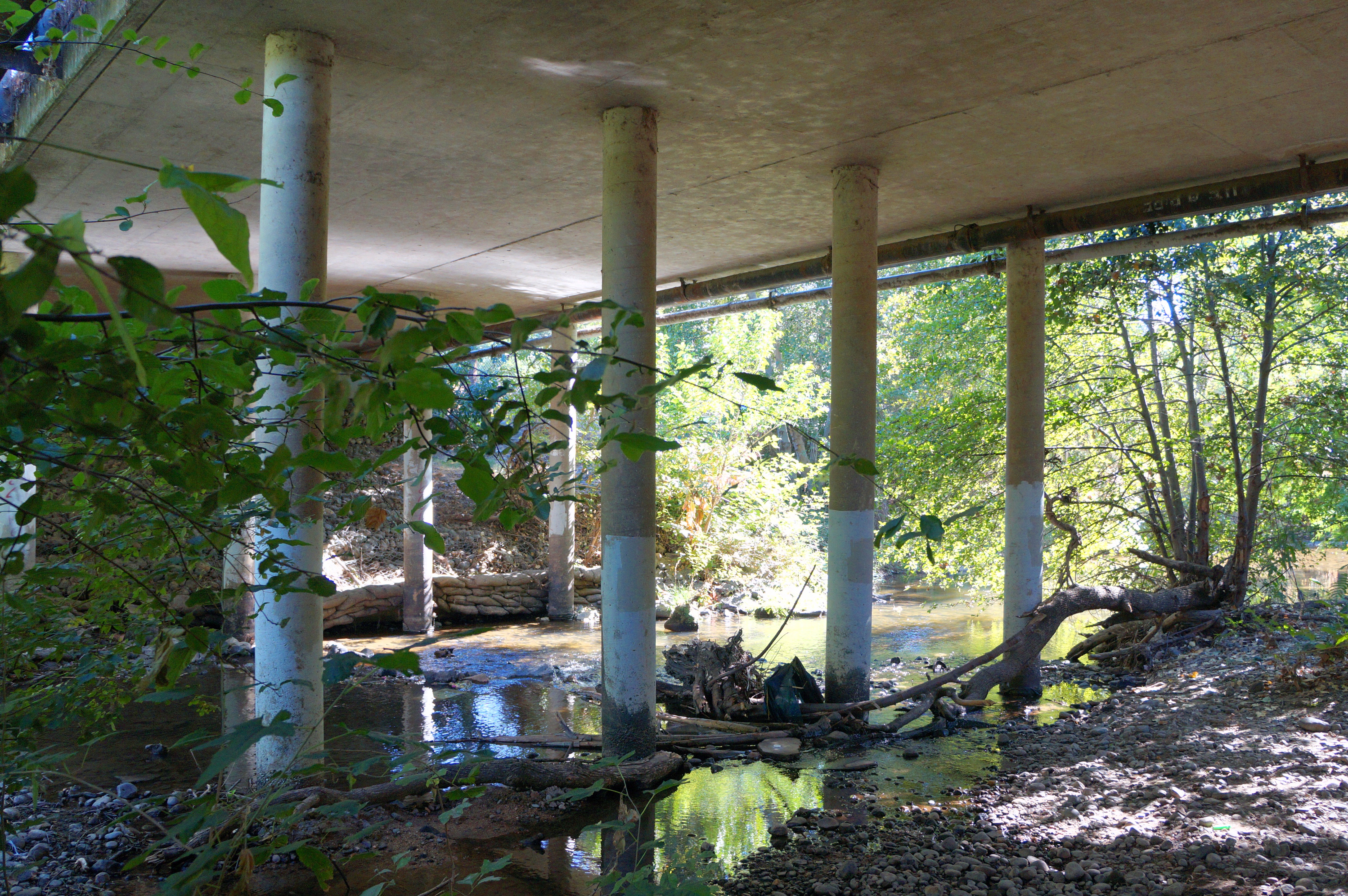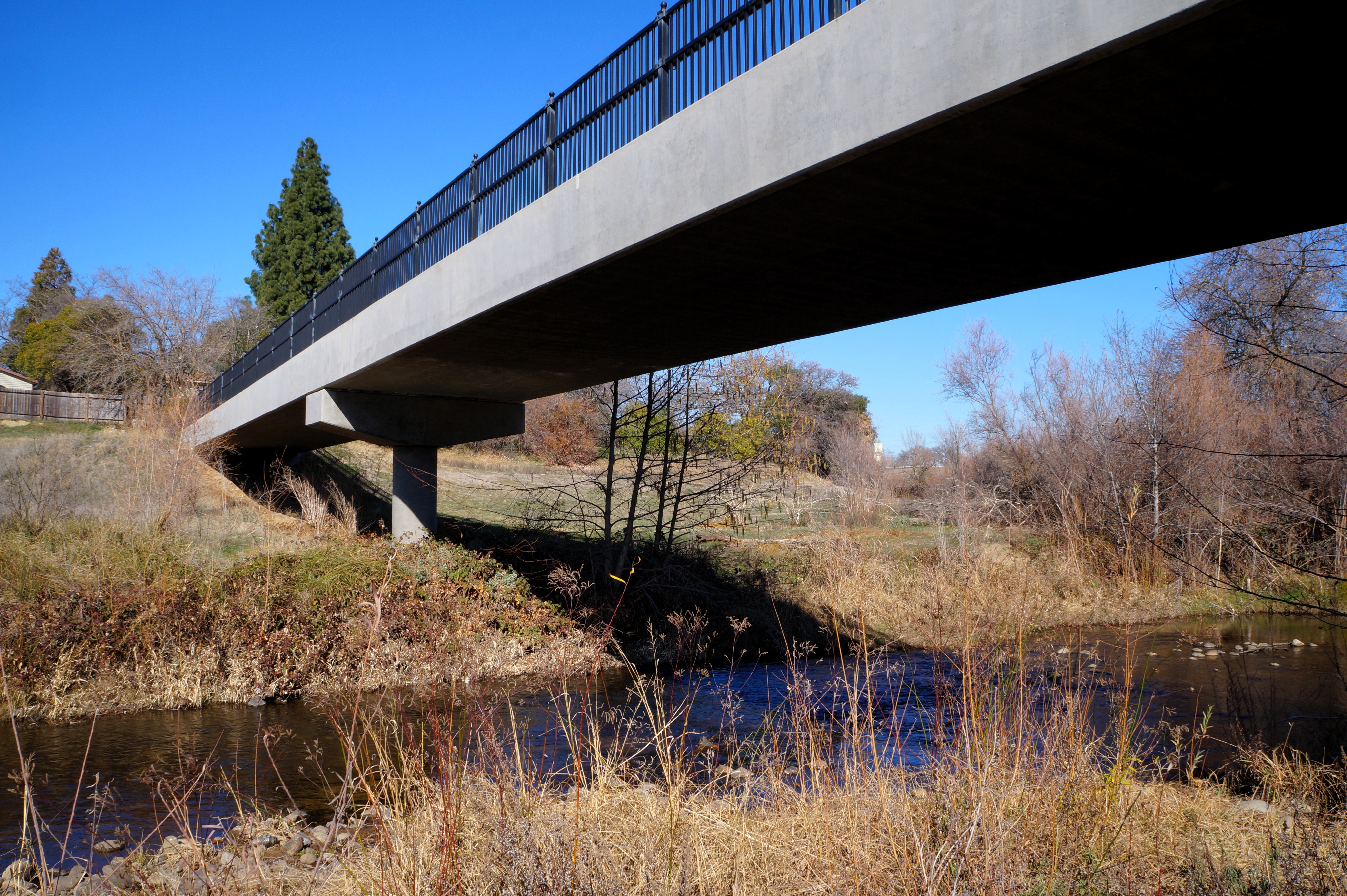 On Folsom Road near Maciel, this bridge is the start of Miners Ravine bike/walking trail. When it rains big salmon come bashing up Dry Creek in a sexual frenzy. Feral cats on the creek are trapped to be neutered, one ear clipped then released. Georgia feeds feral cats here at her own expense. The cats like to sleep under the bridge but homeless people sleep there too.