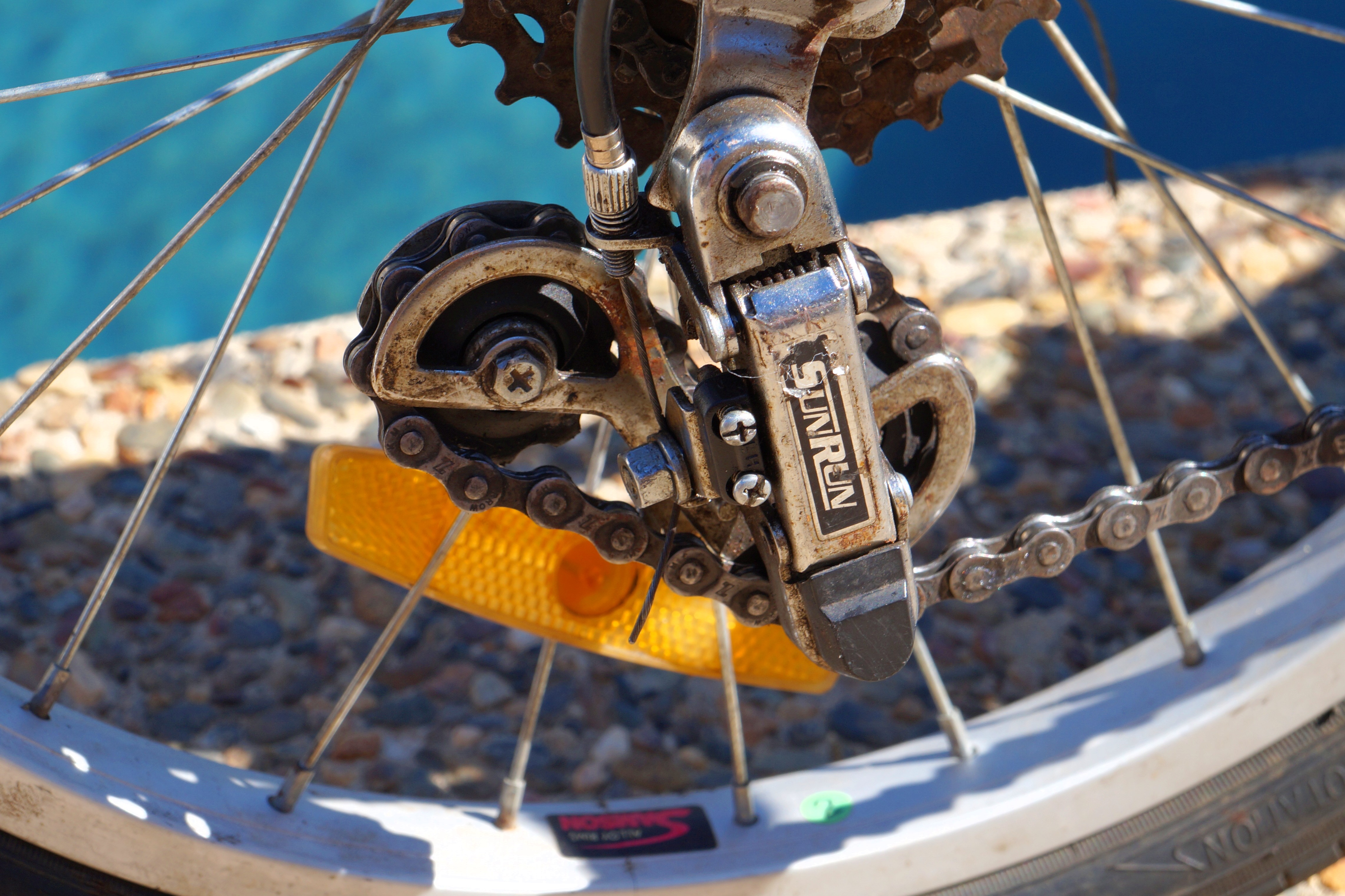 SunRun dérailleurs, sound and look suspiciously similar to also mediocre SunRace and SunTour components of that era. They work OK, as do the brakes.