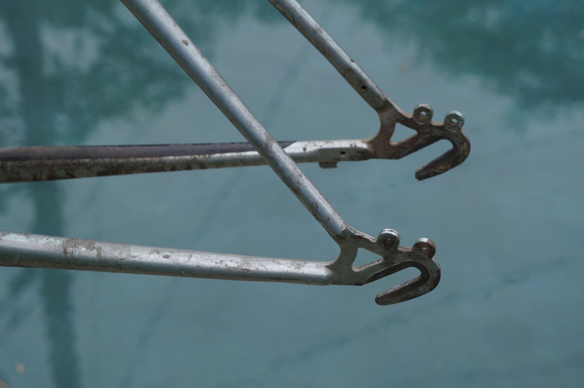 DSC05693 Published April 13, 2018 at 5456 × 3632 in Nishiki Bravo Single-speed Bike Conversion Part II ← Previous Next → ‘Horizontal drop-outs’ are why old bike frames are used for fixie/SS conversion.