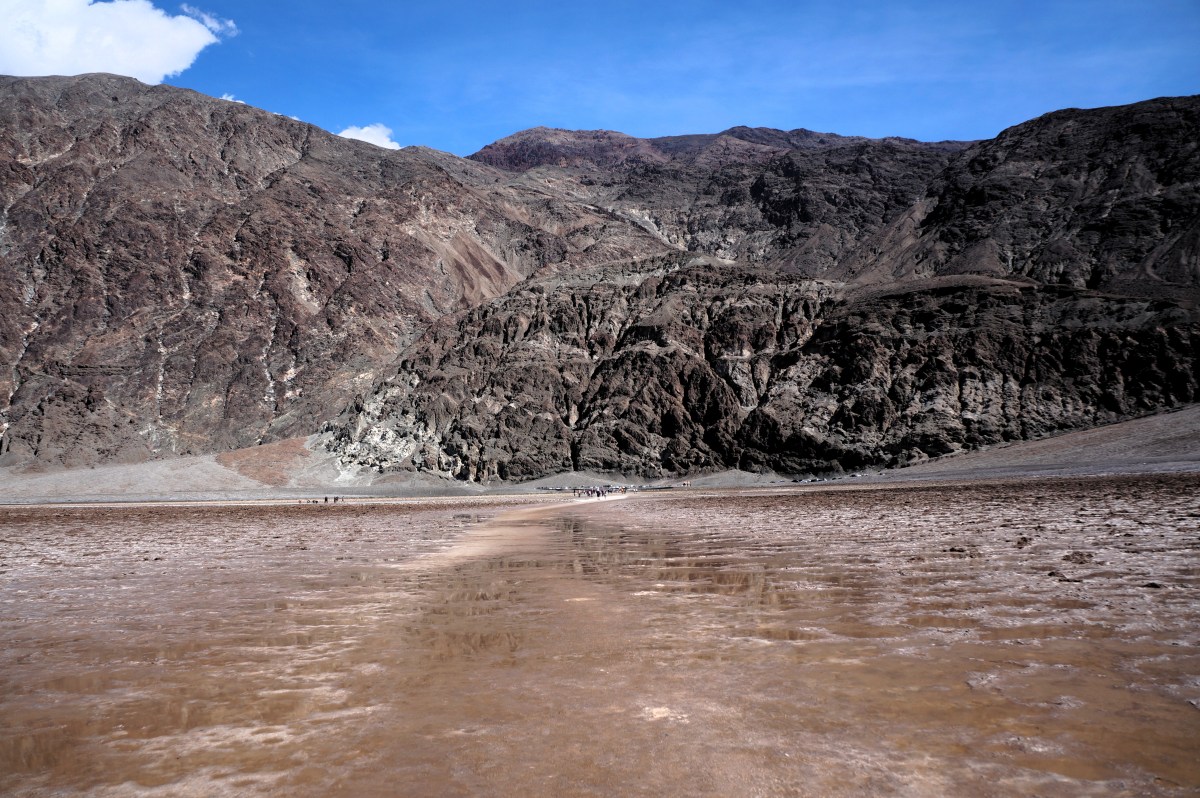 DSC06671 Published March 27, 2019 at 5456 × 3632 in DV III: The Inevitable Low of Badwater ← Previous Next → Note different colored rocks and talus scree art fault line above highway.