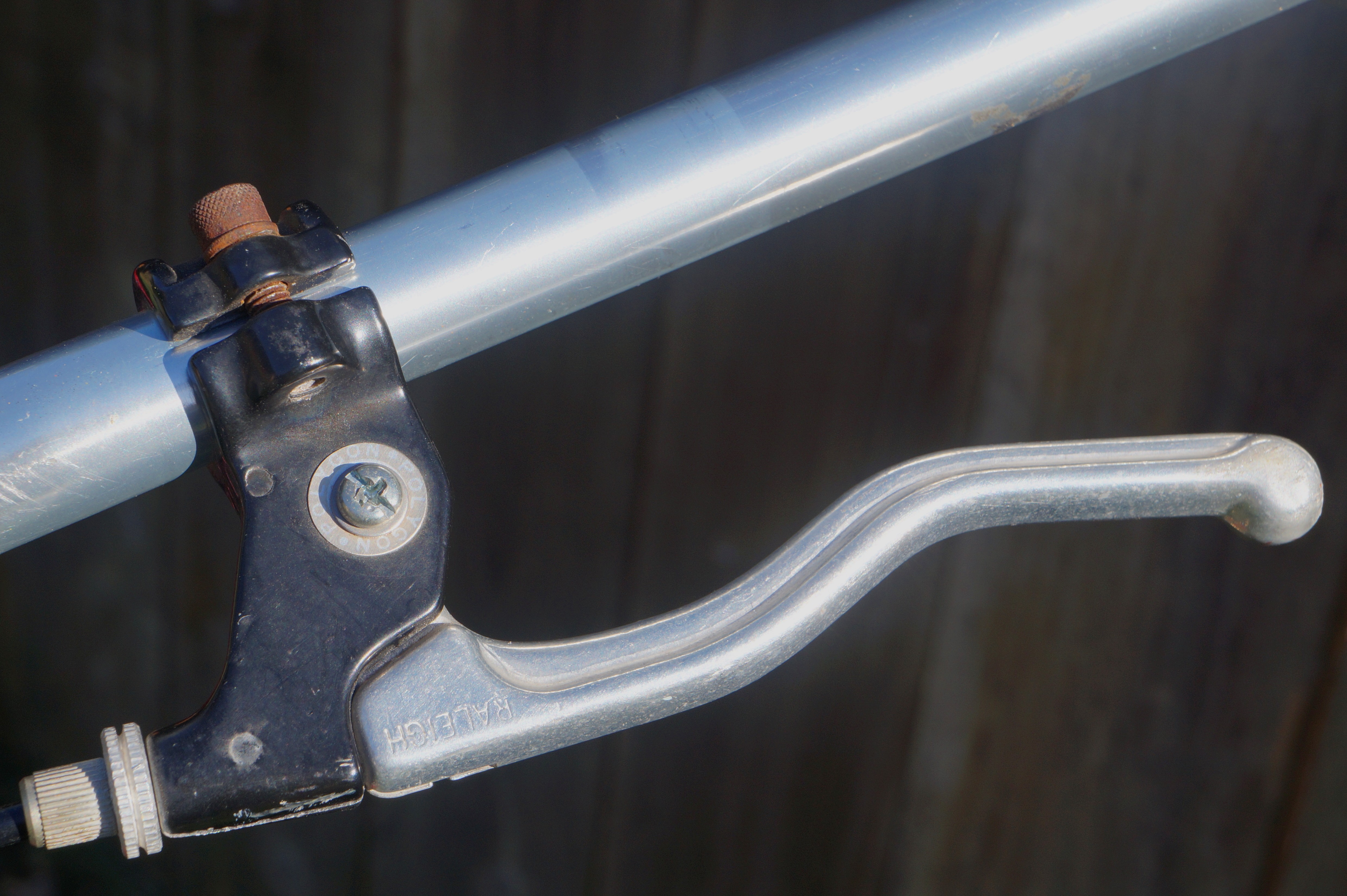 DSC07072 Published October 29, 2019 at 4954 × 3296 in Vintage Peugeot Restomod ← Previous Next → Raleigh brake levers. Bars will be chopped about even with the lever ball end.