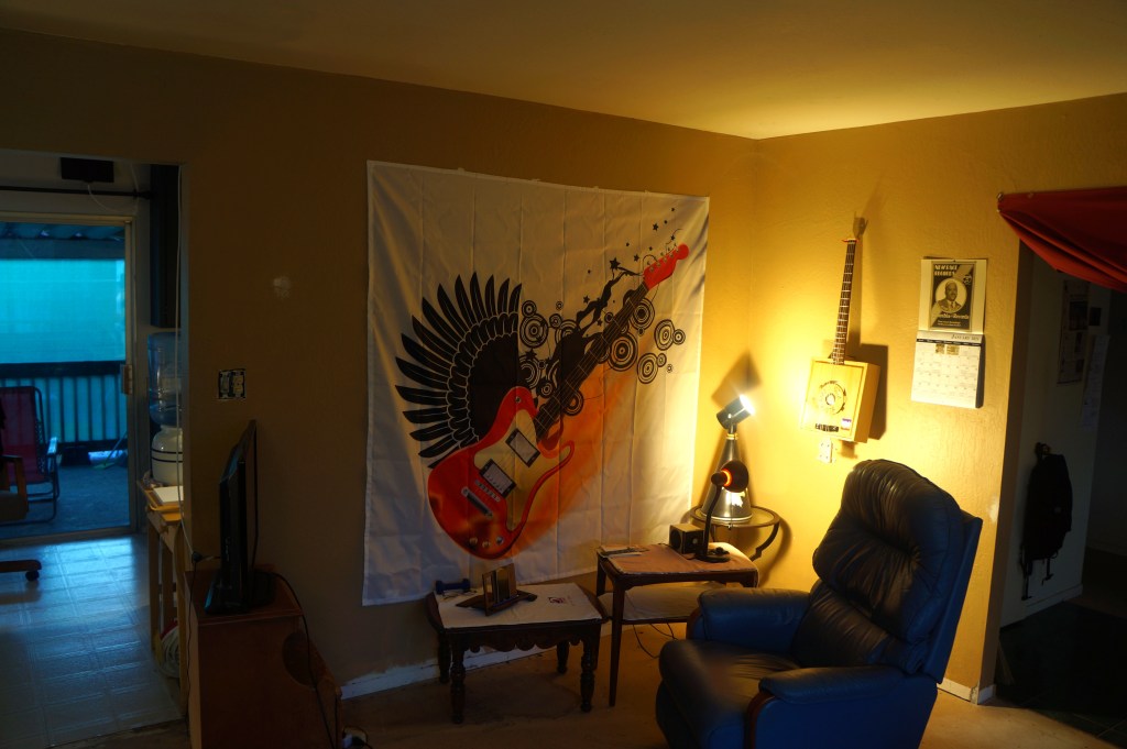 So, it looks cool in my unfinished new-old-stock batchelor bass-themed living room .