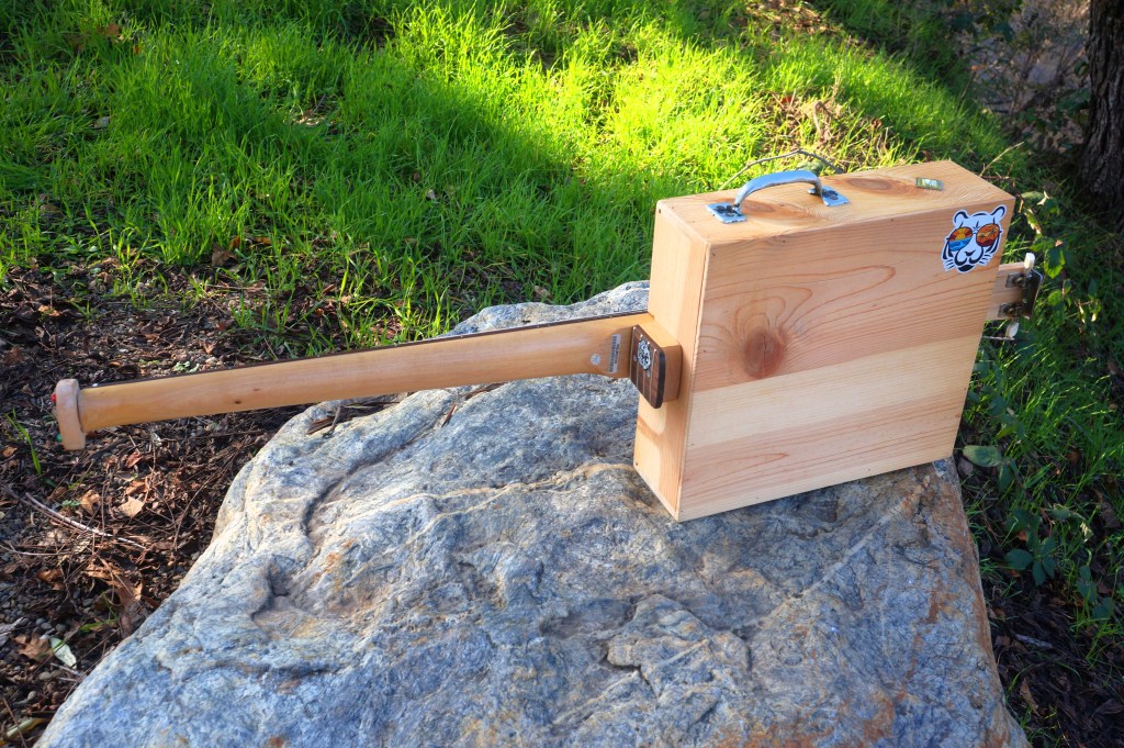 The mismatch between the low structural strength of a common pine wine crate and mighty electric bass strings was an obvious problem.