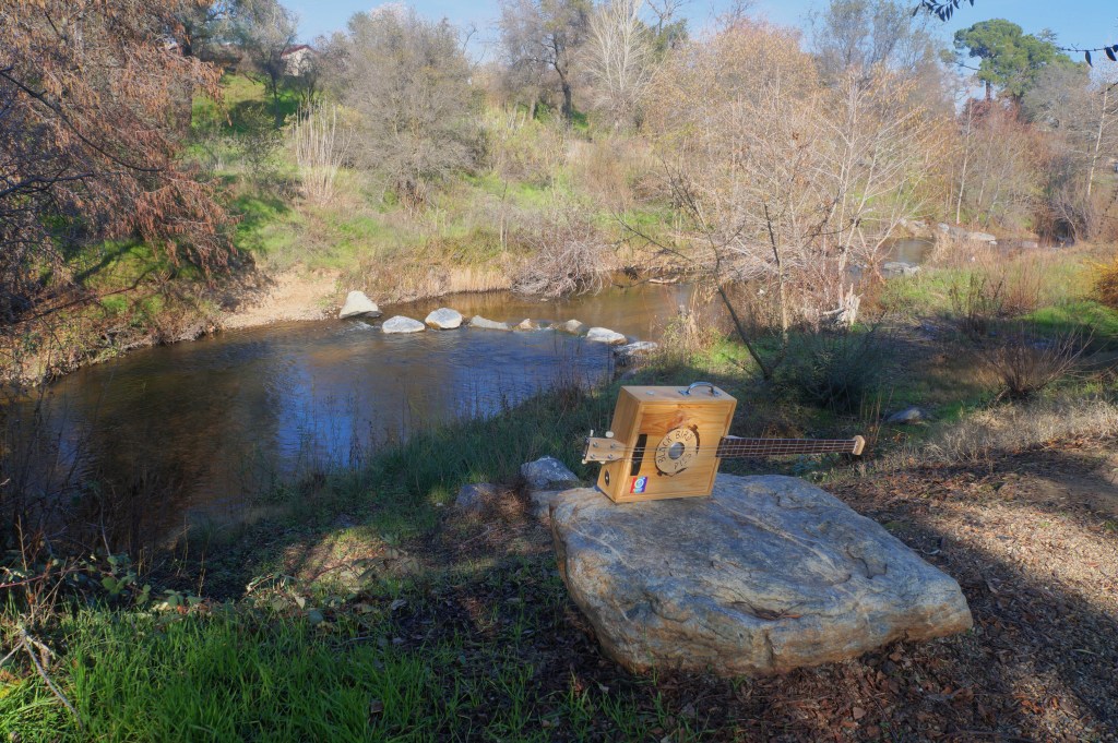 But as you can see by the one inch tall action-wall art it is. Any further attempt at tuning it might have cracked the wine box so I gave up on sound. I’m convinced this could work with gusset bracing and much smaller strings.