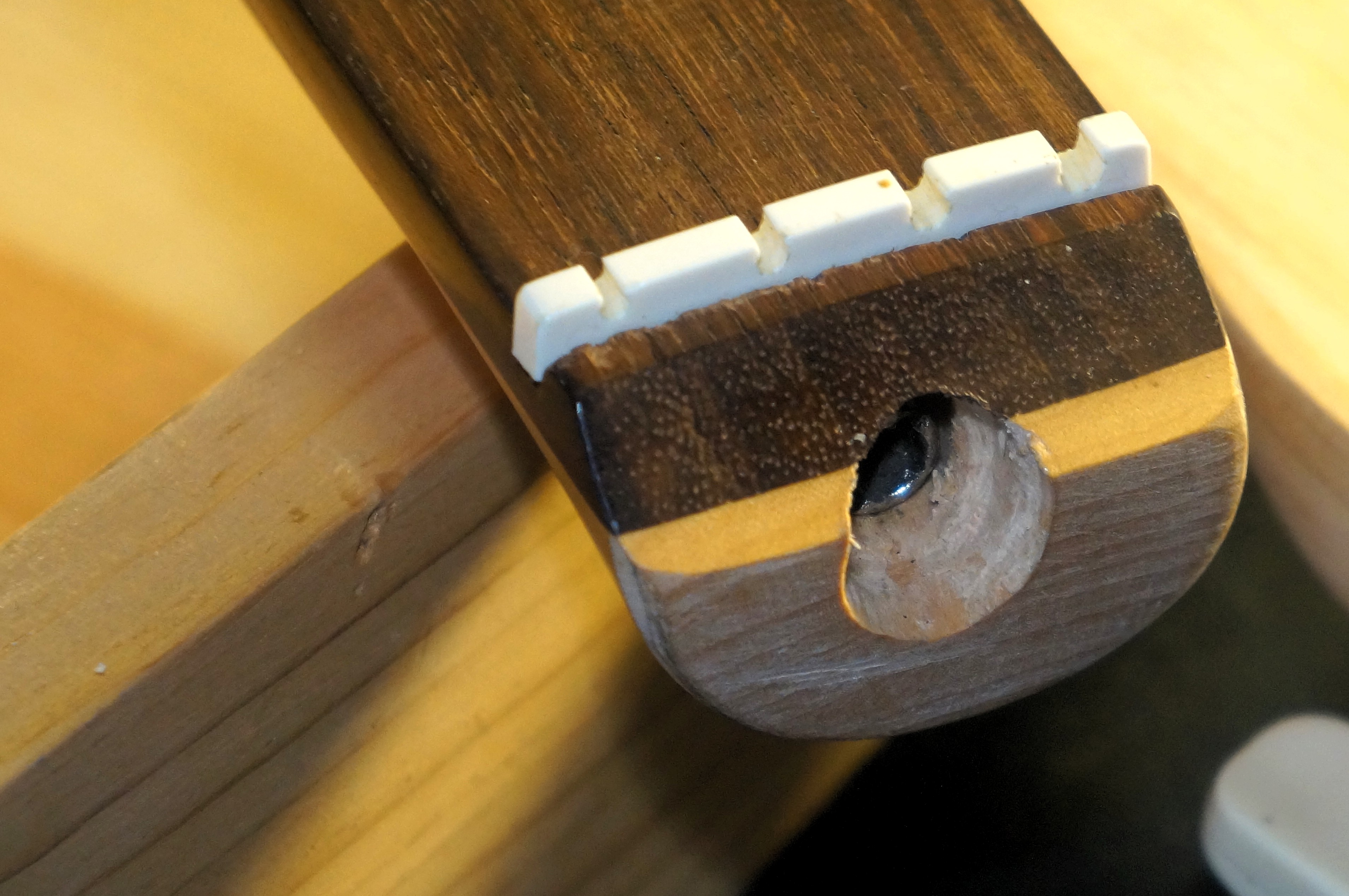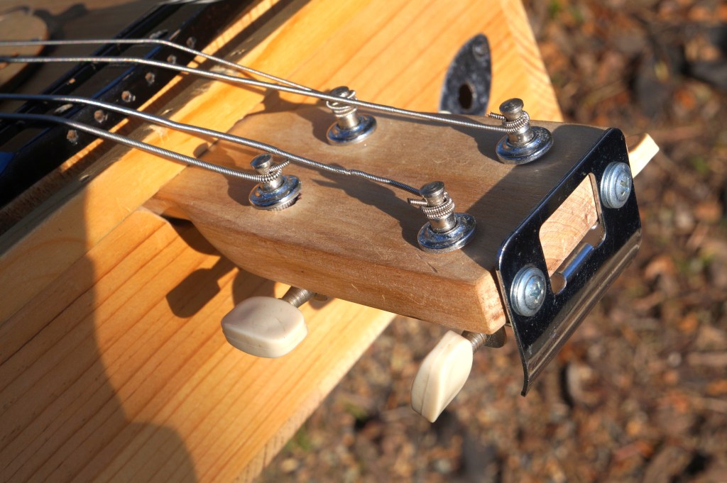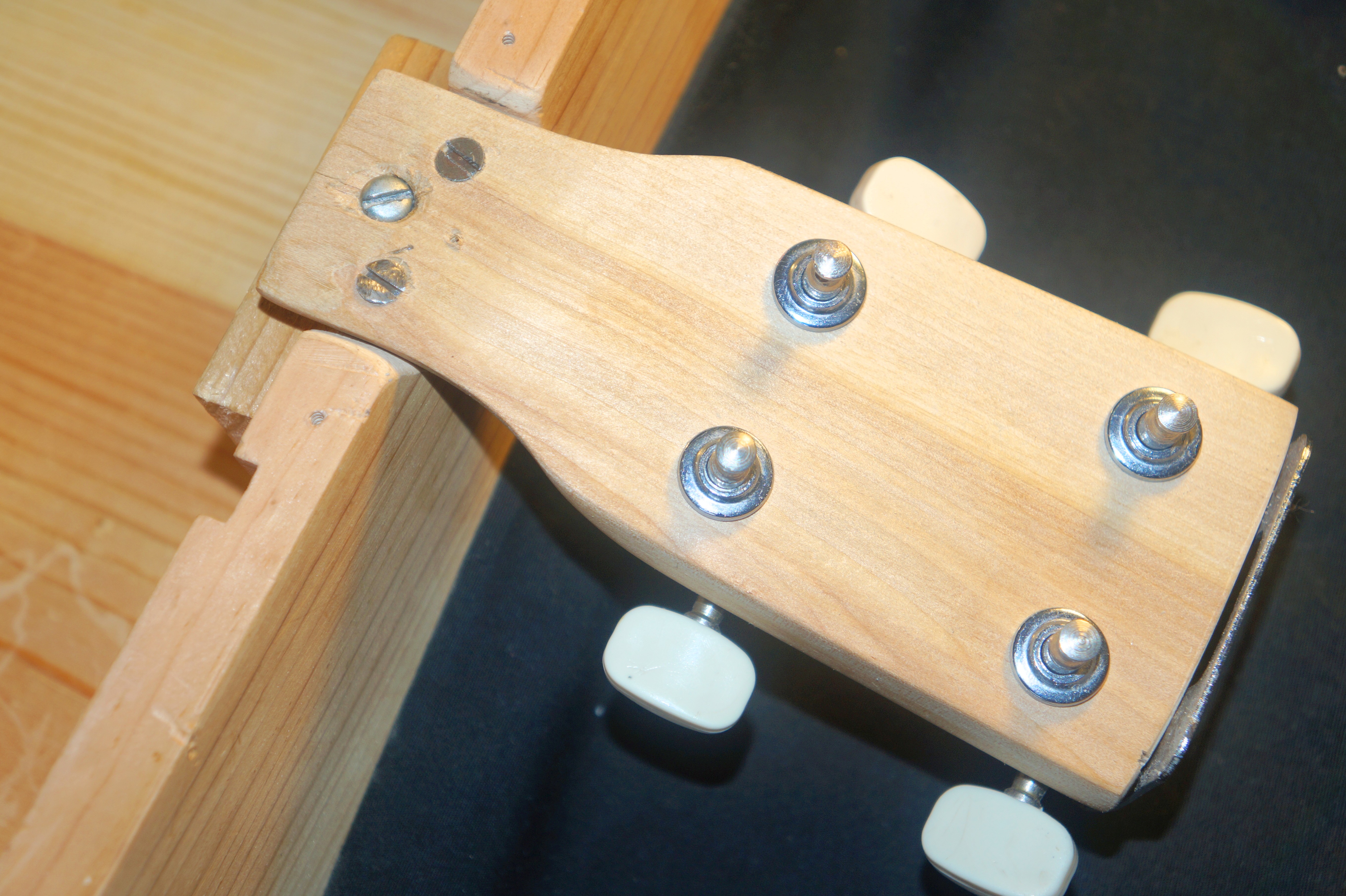 On the plus side the modified ukulele headstock (tailstock?) actually seemed to work pretty well in tuning the beast.