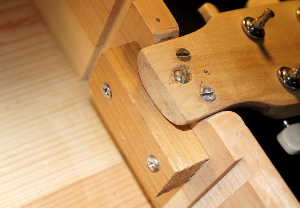So I braced the neck with wood blocks and hefty wood screws I found in the garage every place I could.