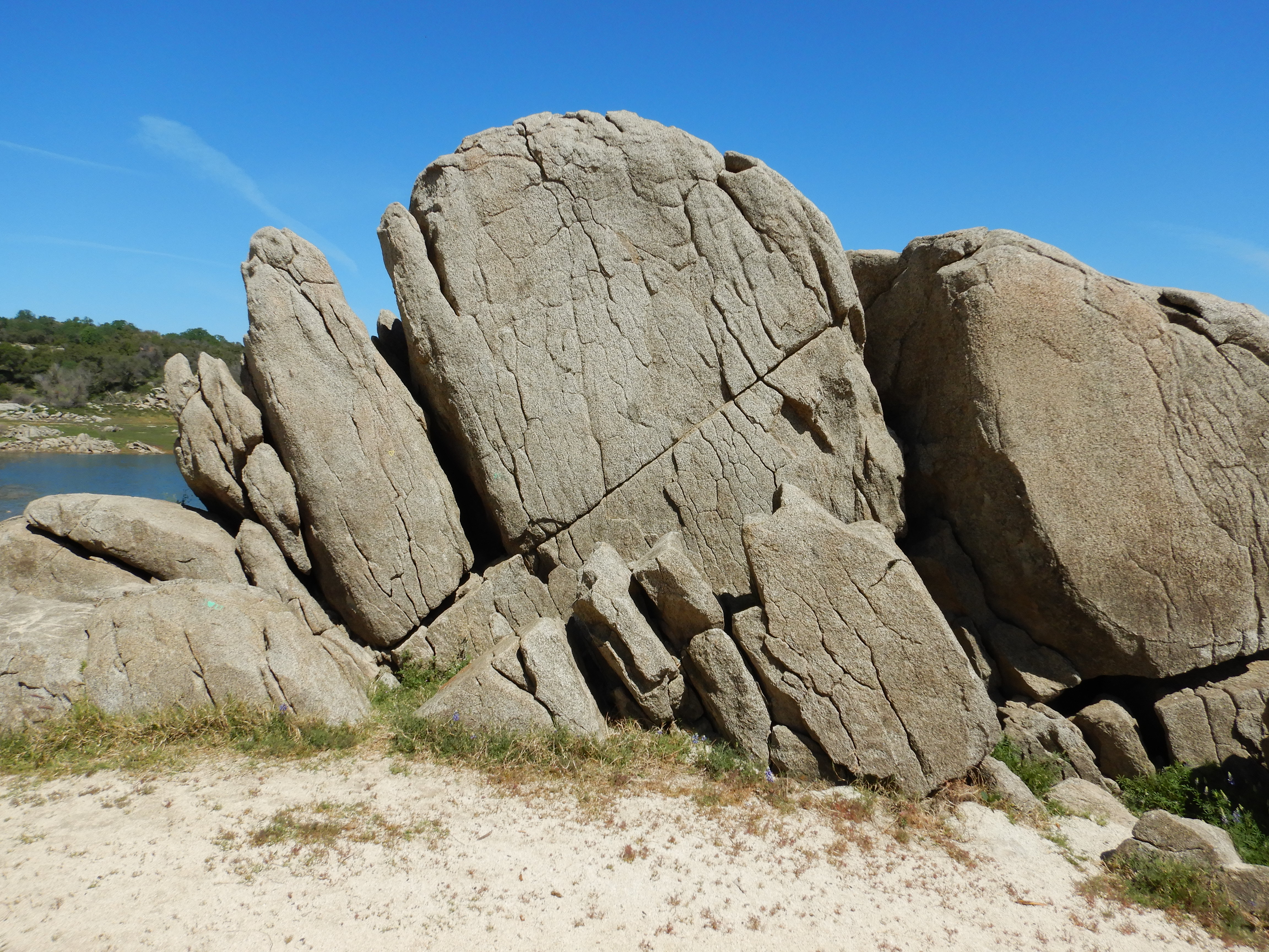 Another end product of these uplifted and exfoliating intrusive igneous ‘granite’ plutons, floating balloons of molten rock that froze deep underground here long ago.