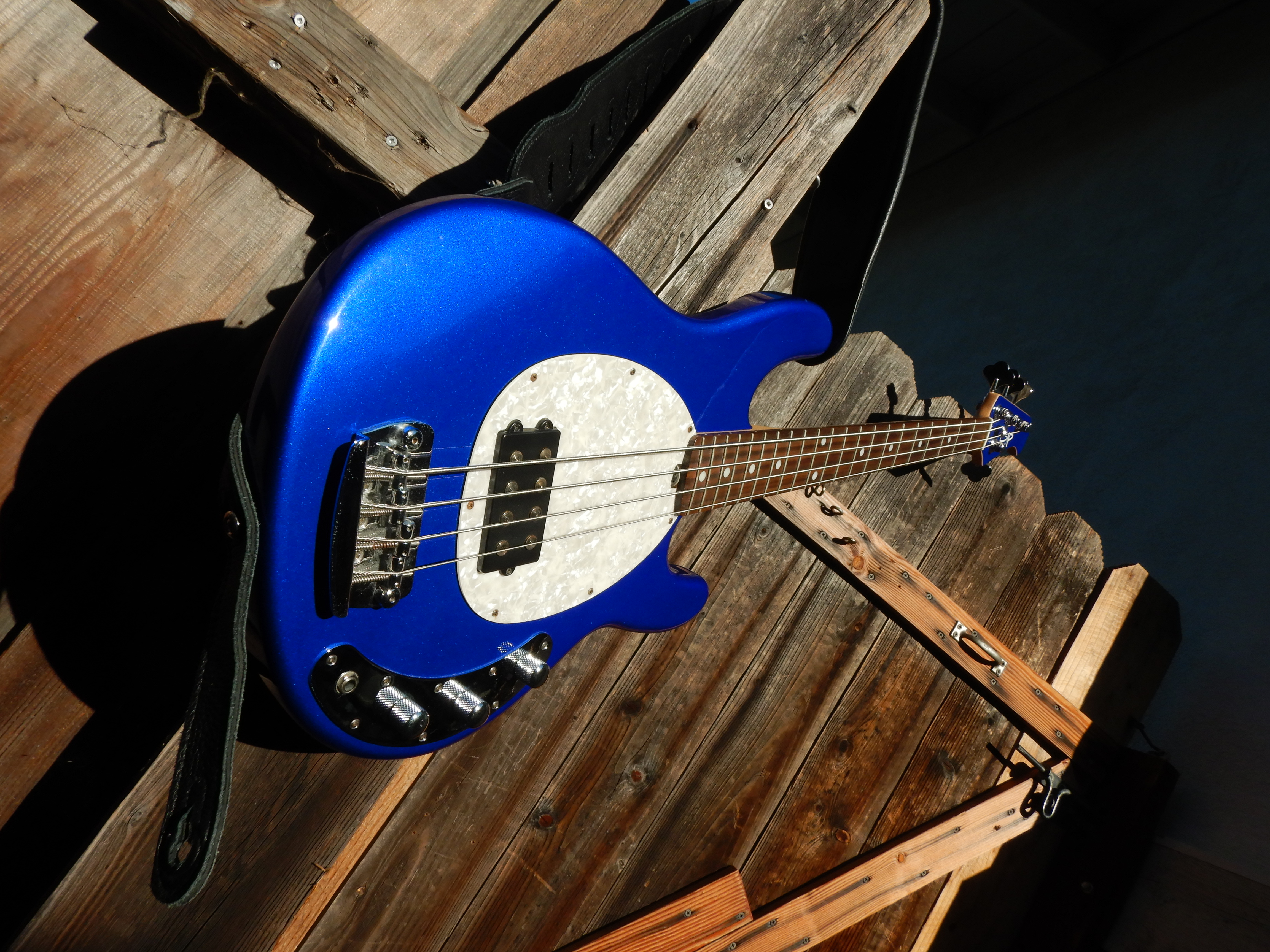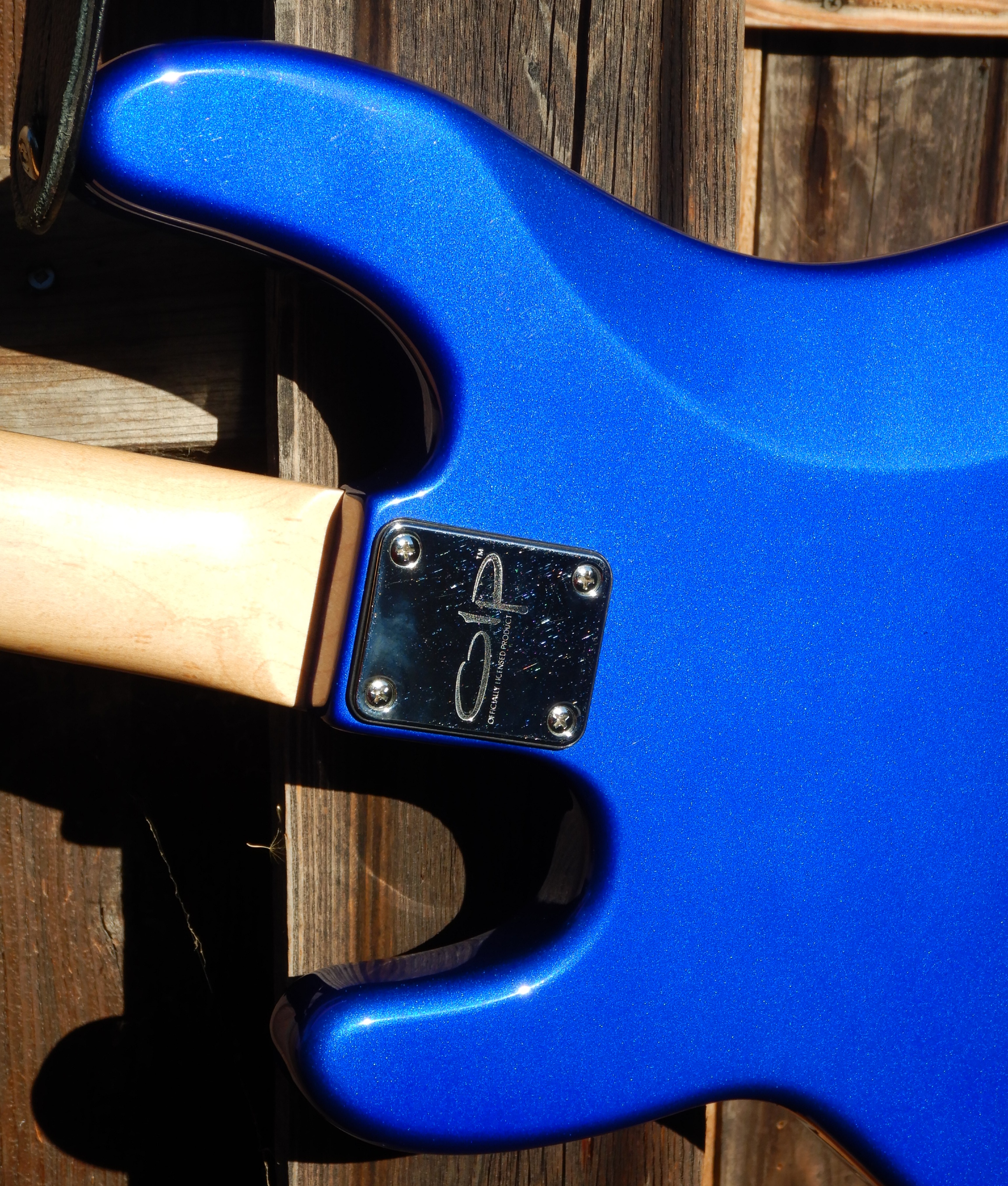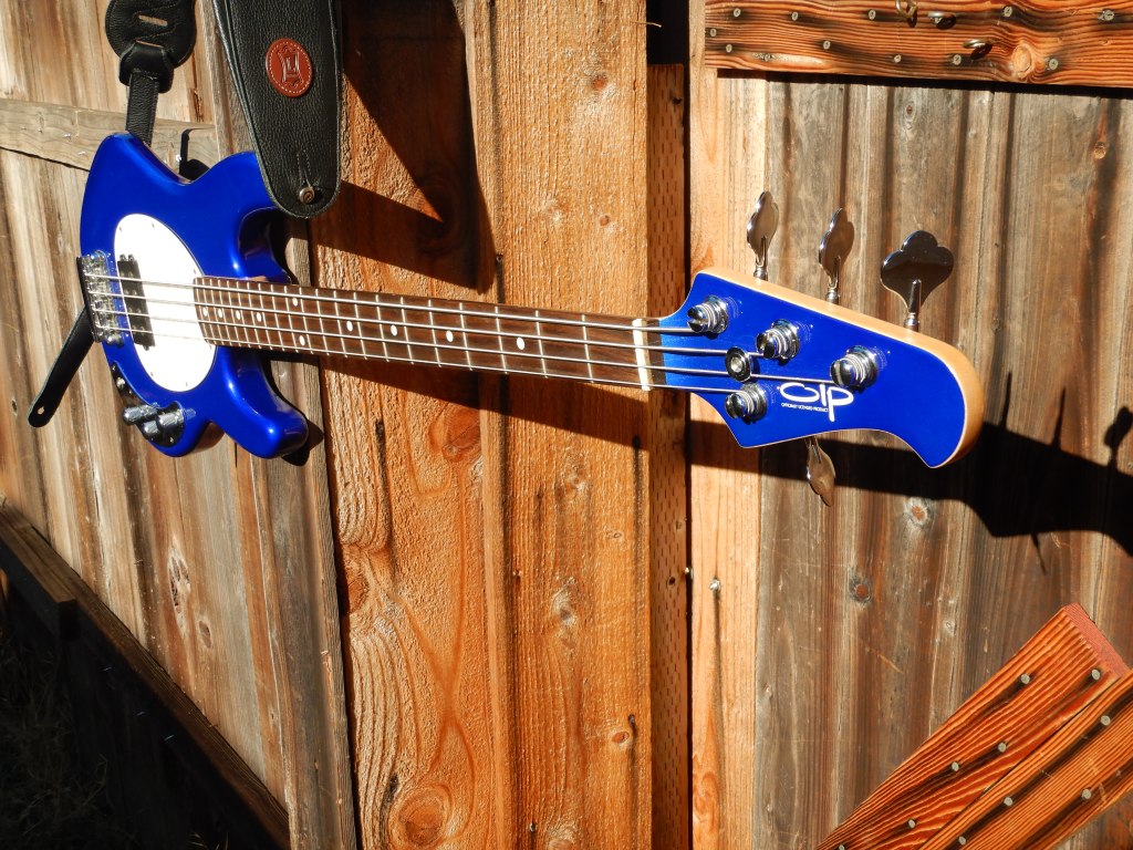 I can only play primitive I-IV-V 12-bar blues so I love a blue bass, my 2nd blue bass and my 2nd OLP (Officially Licensed Products) bass.