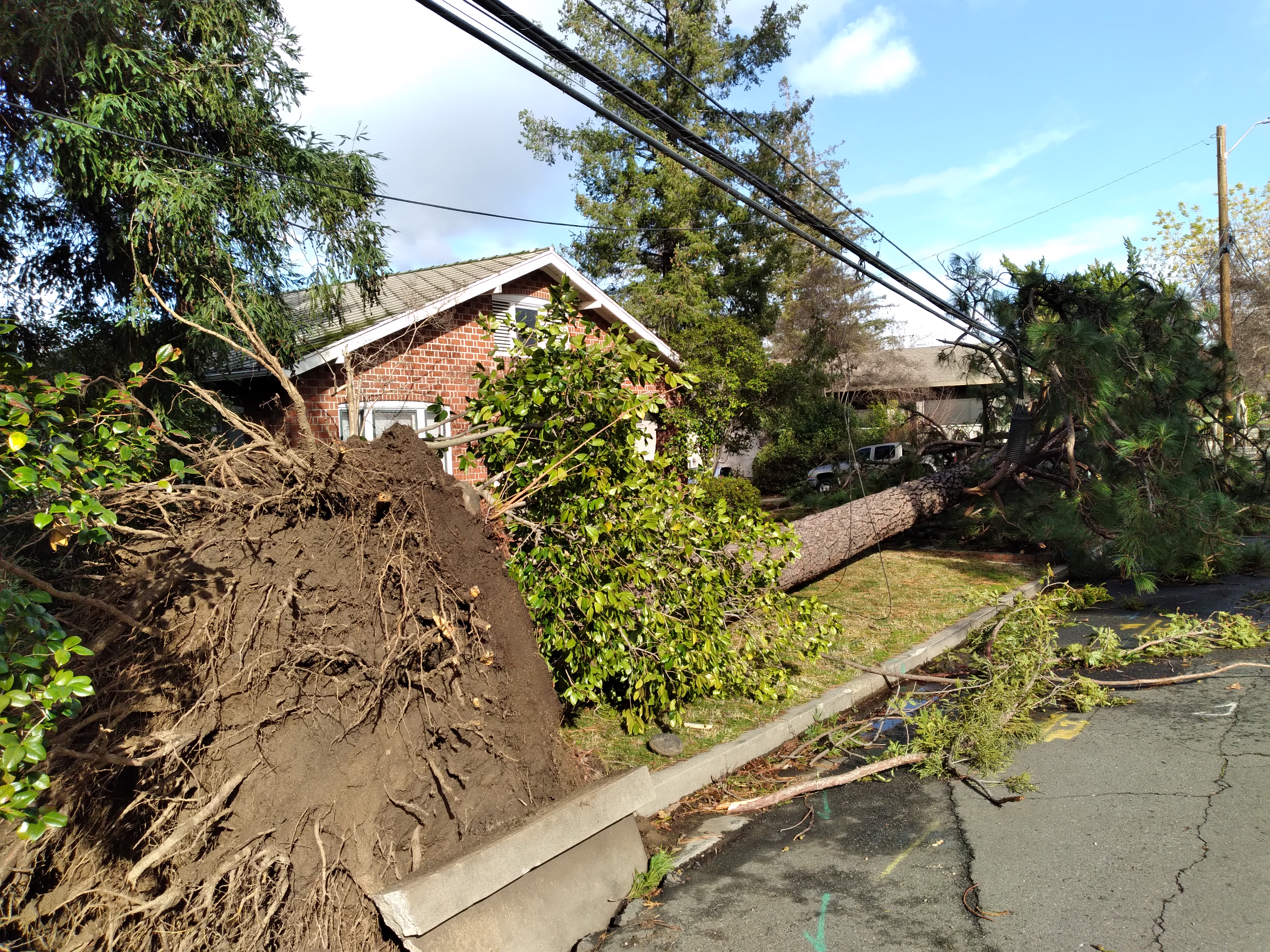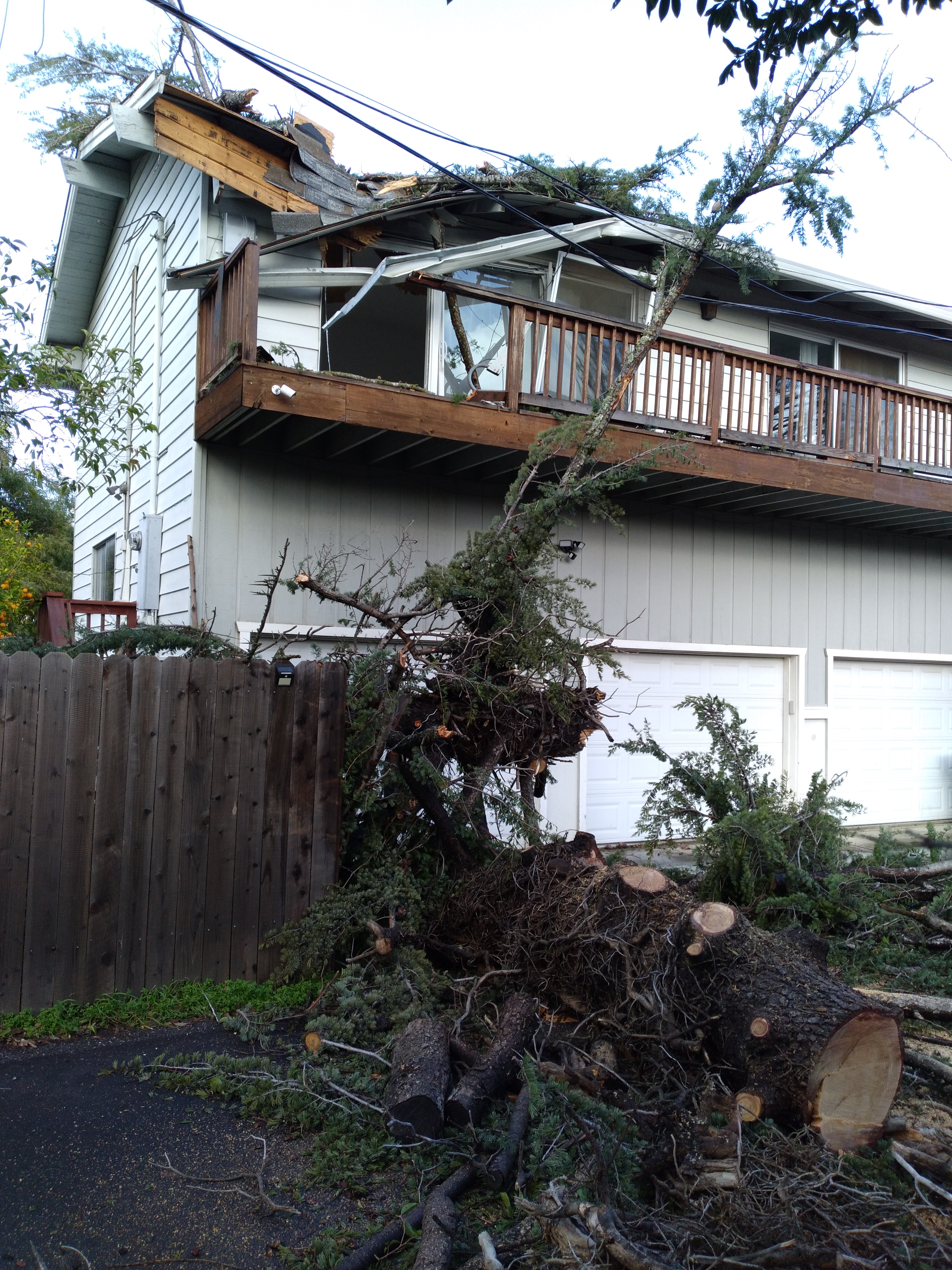 Two large trees fell, killing power both times. But it was quickly restored (in time for football!).