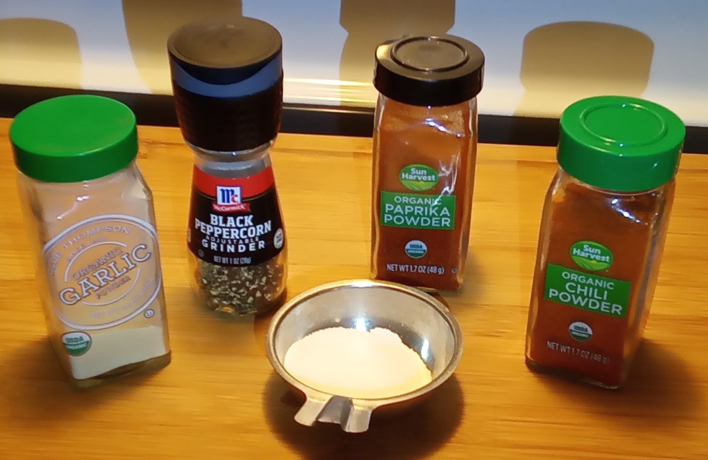 I have a tendency to go wild on the seasonings but this batch I stuck to iodized salt, fresh ground pepper, garlic powder, chili powder and paprika.