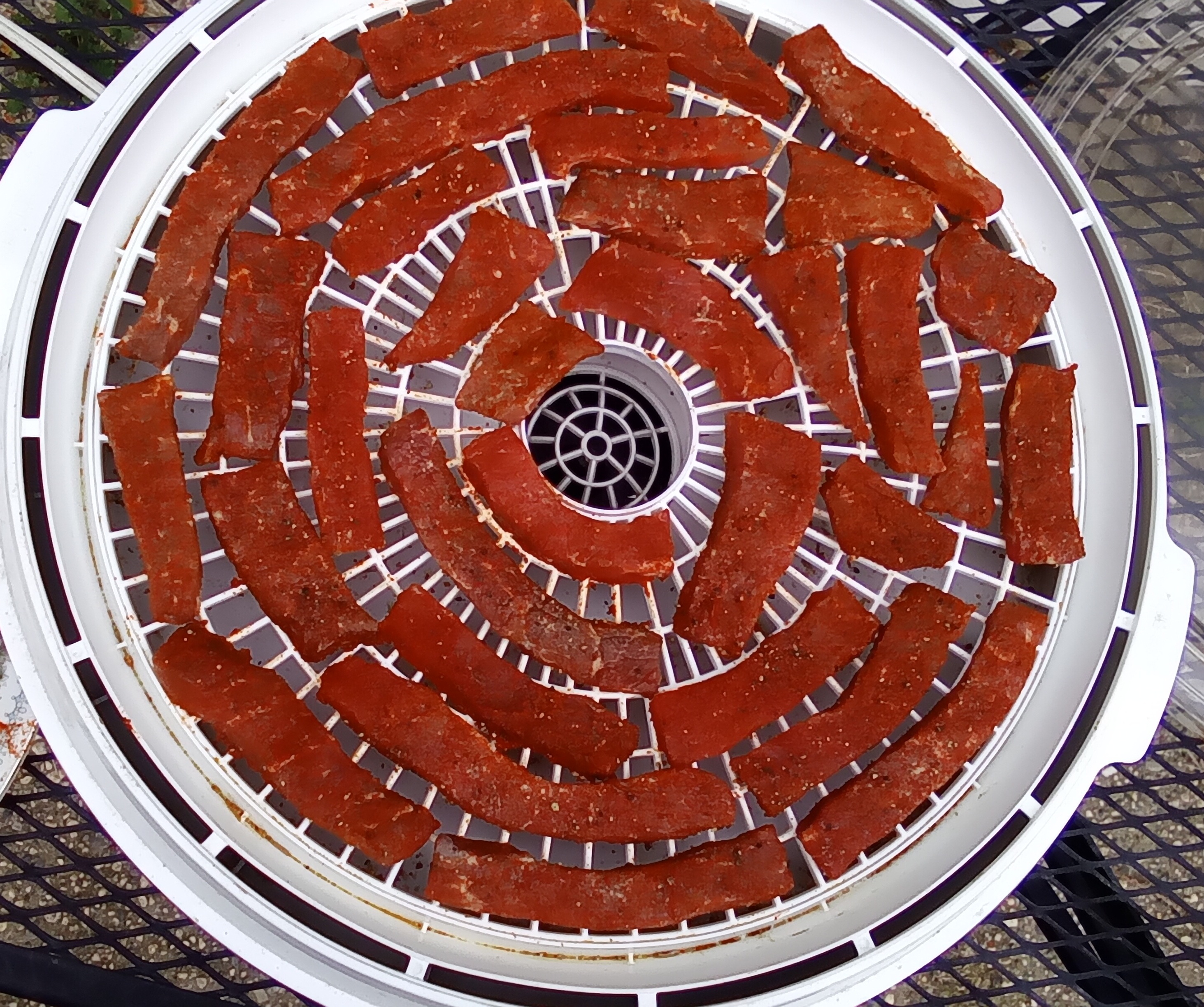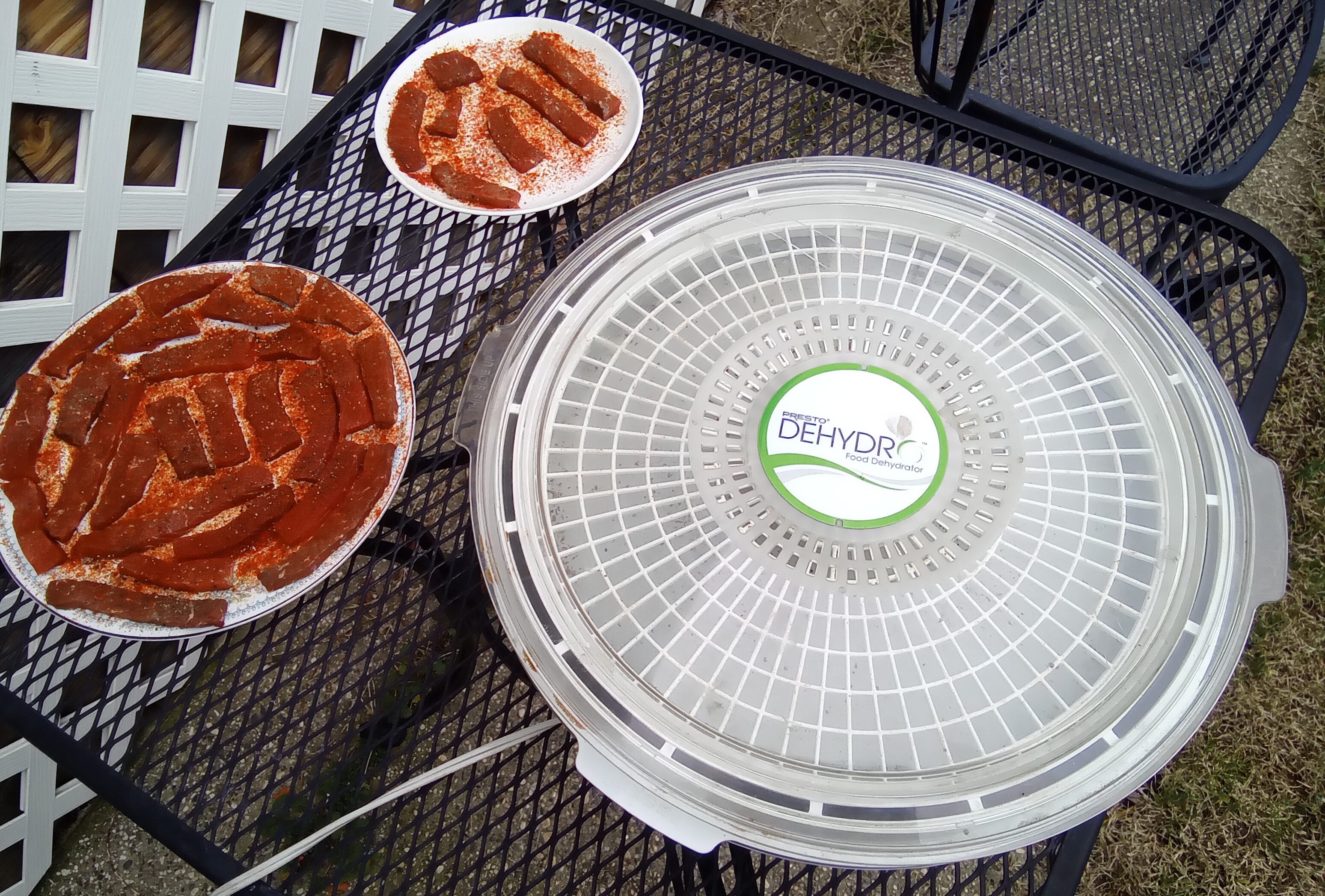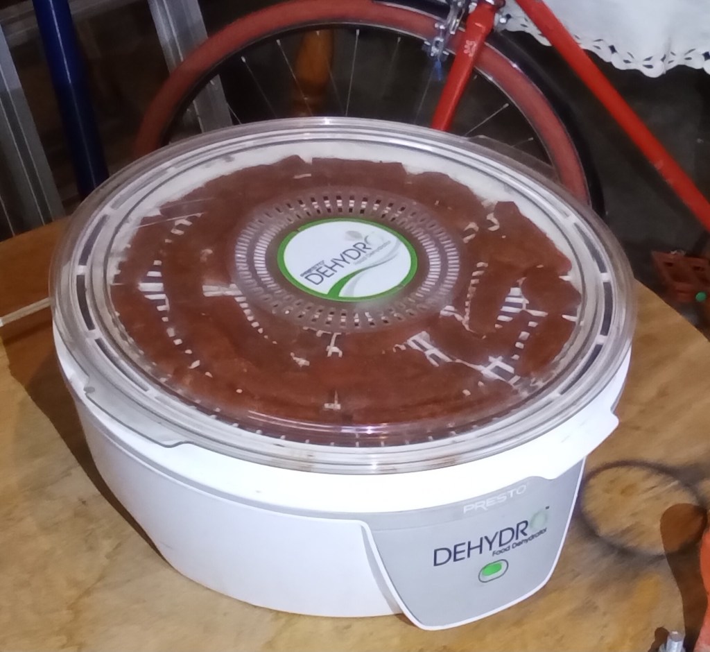 Here’s my dryer, a Presto Dehydro on permanent loan from my old pal. I do give him samples. The unit’s fan whines so I use it in my garage.