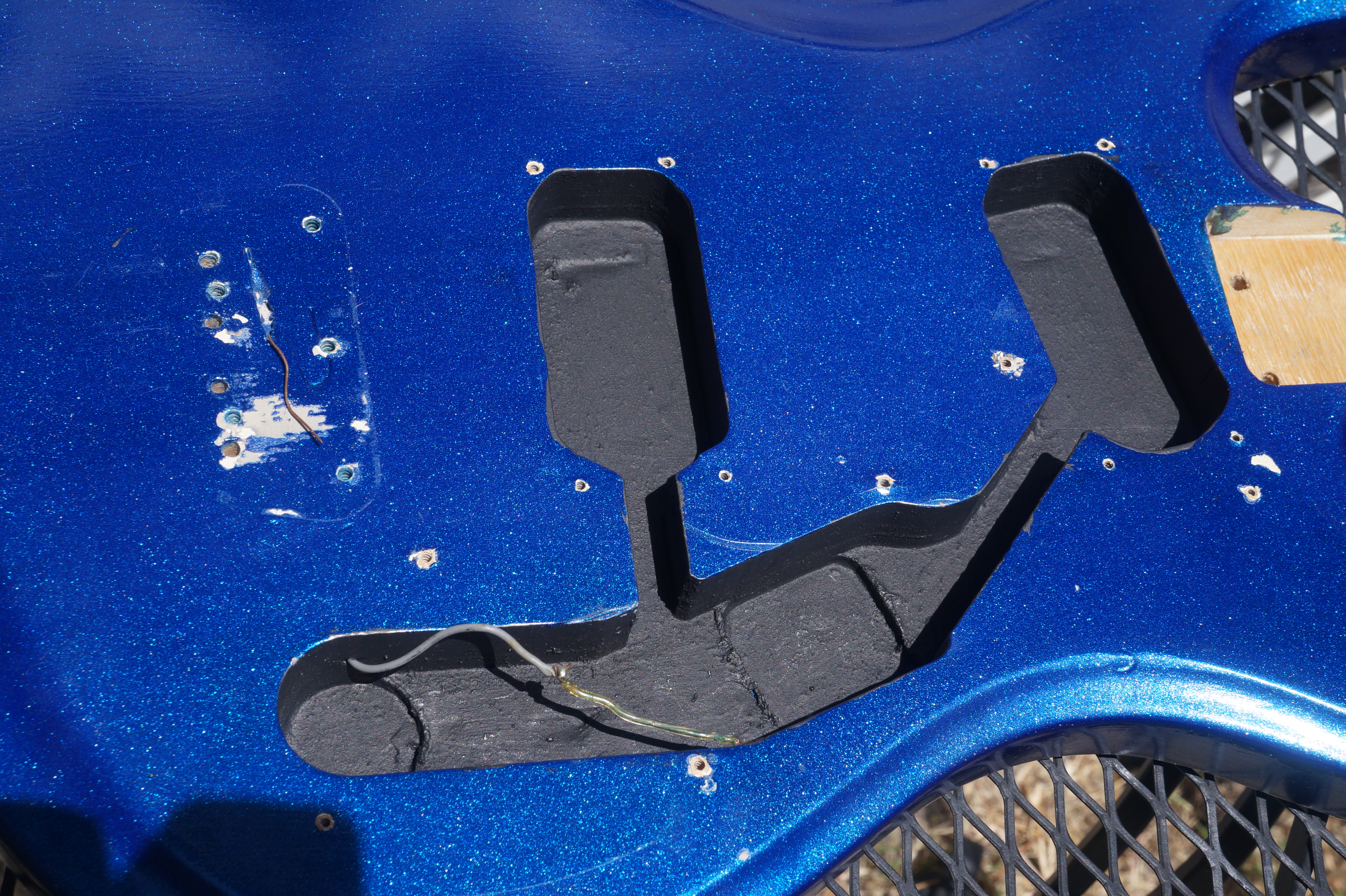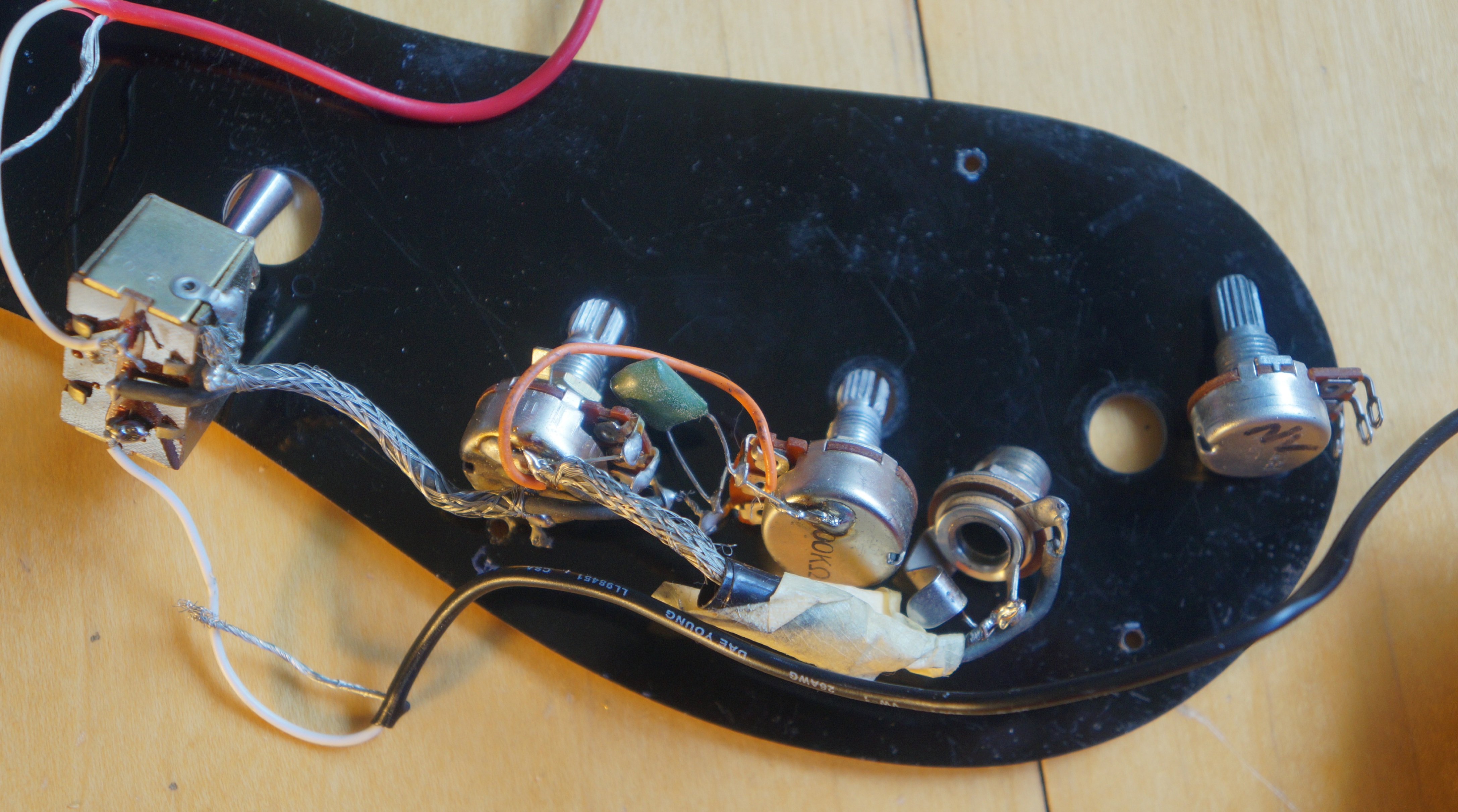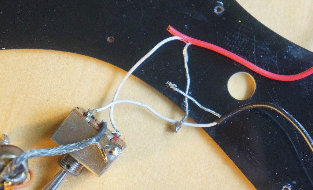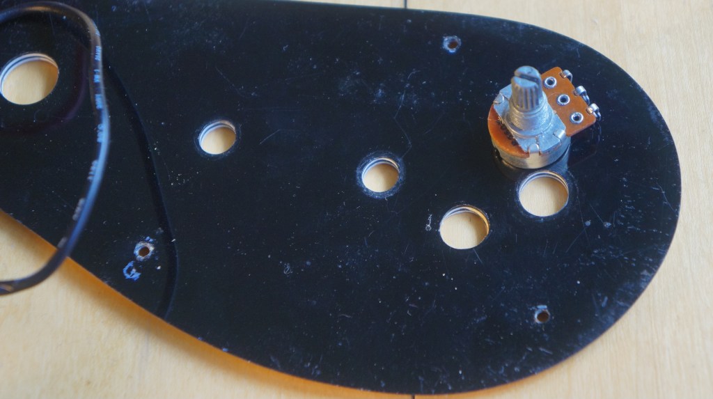 I’m guessing the output jack wire was too short to reach the original pick guard hole. For some reason.