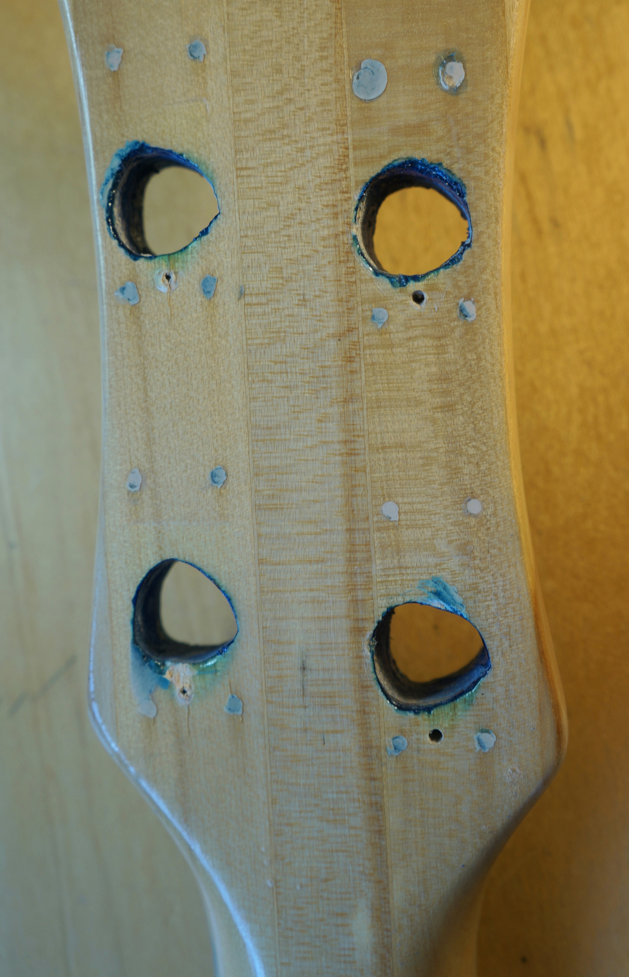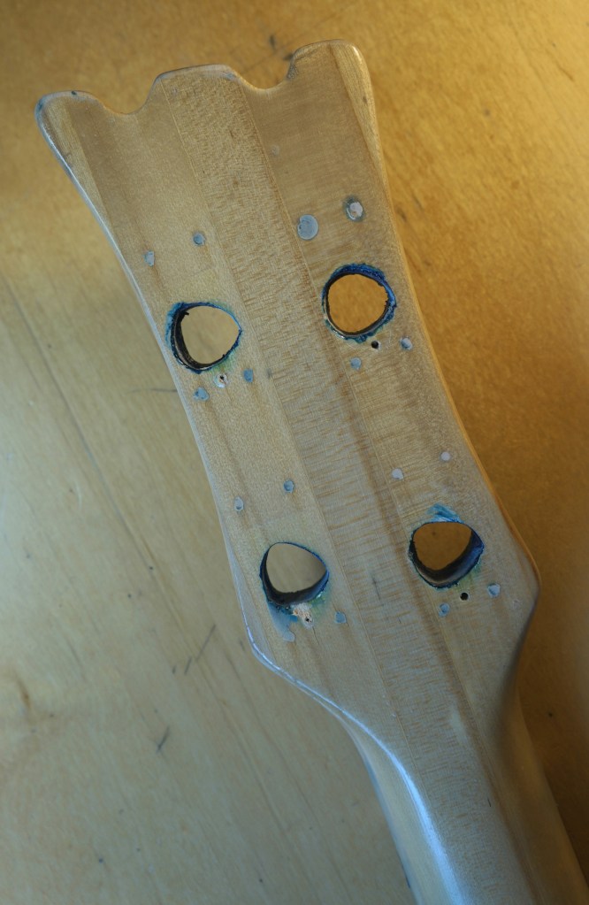 So I might leave a bit of sparkly blue on body and headstock and varnish over it.