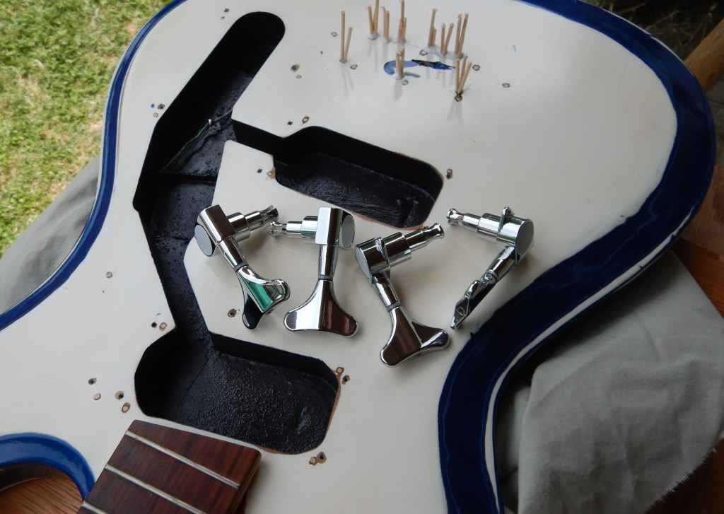 I’m about half through with my Univox Hi-Flyer piccolo bass project, only 90% to go.