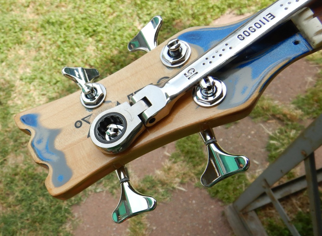 Installing them was easy with this ratcheting 15 mm box end wrench; and tiny Phillips head screwdriver for tiny screws in back.
