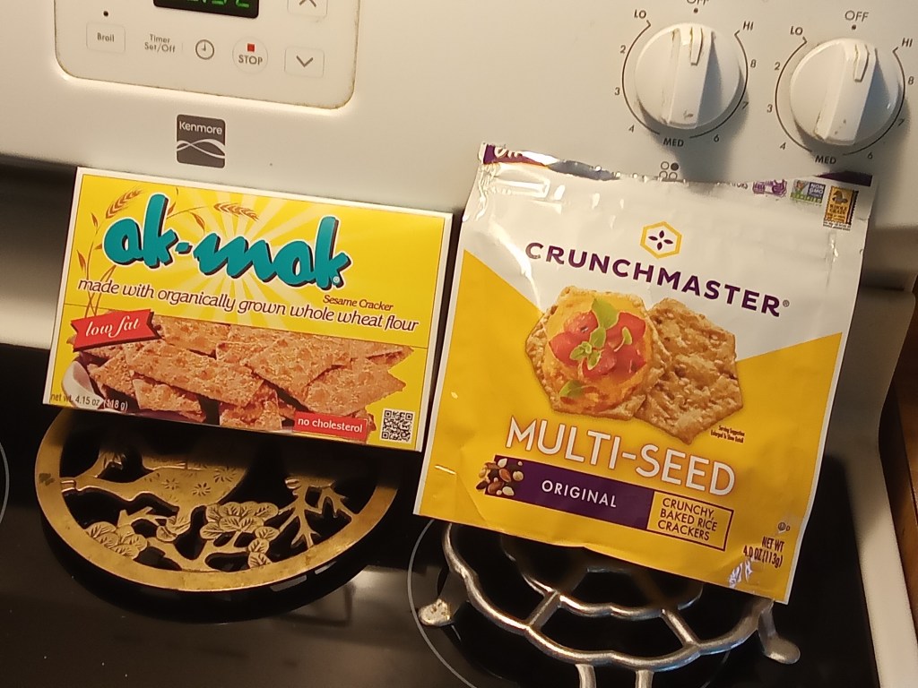 Serve it with whatever you like but I still favor Ak-mak Armenian crackers. And lately thin Crunchmaster rice and quinoa crackers, neither using industrial seed oil. Difficult to find in these modern times.
