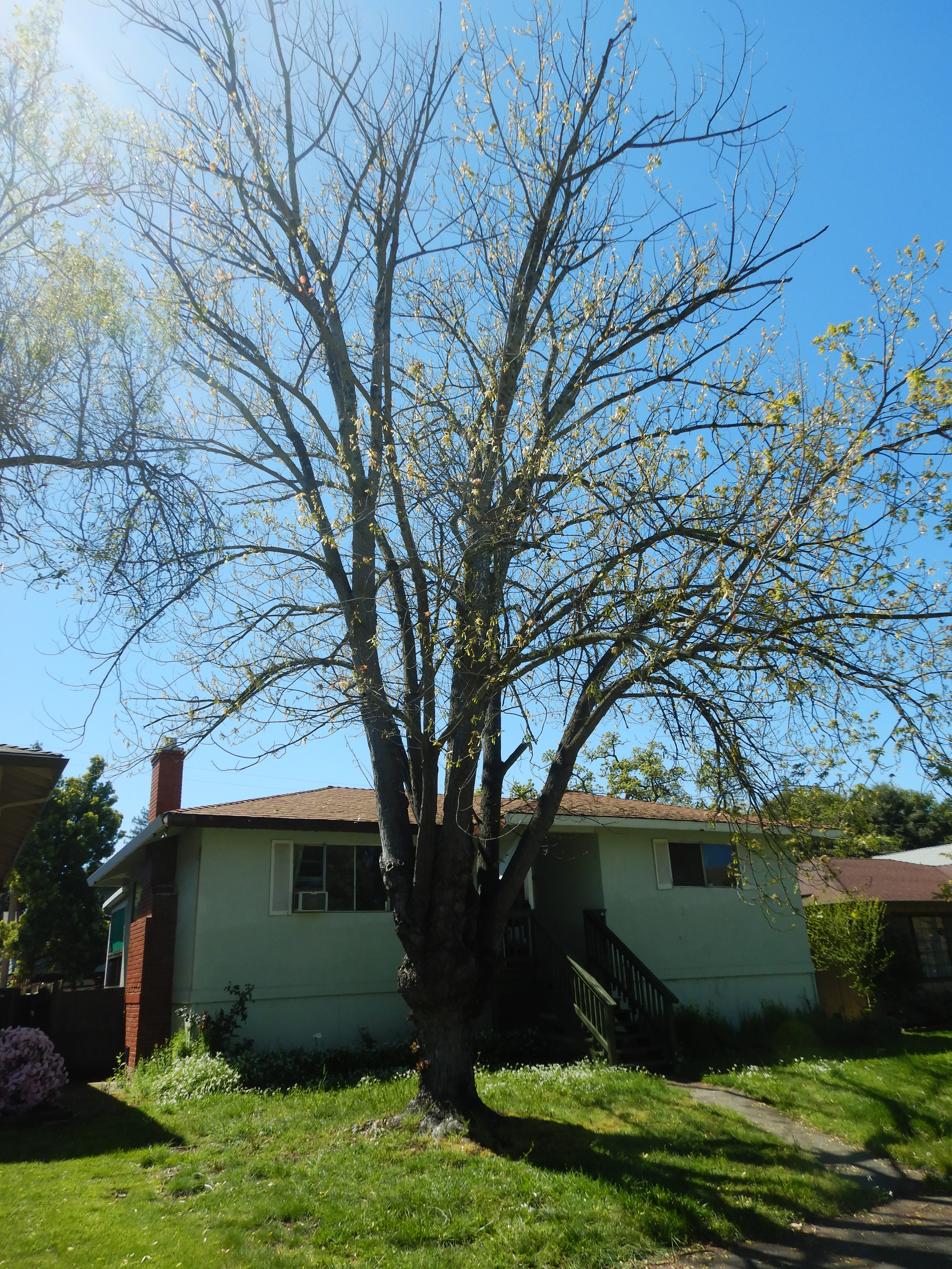 The roof is worn but does not leak except from maple leaves clogging the roof drain valley (the cricket), easily fixed and prevented by clearing maple leaf roof mats off the cricket. But a scary tall height for an old man with arthritis and a fake hip. I let my also elderly LL climb that tall ladder.