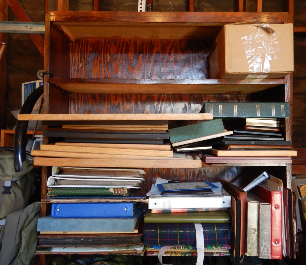 So I relocated the family photo albums to shelving across the garage, going through each box to edit out any dupes, out-of-focus, unknown faces.