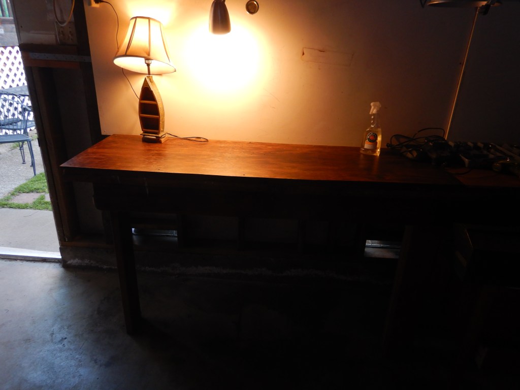 I previously used the counter to store my tool boxes, and general storage like my inherited family picture collection. General debris and clutter covered it making it unusable as a work space even if it were not so very dark.