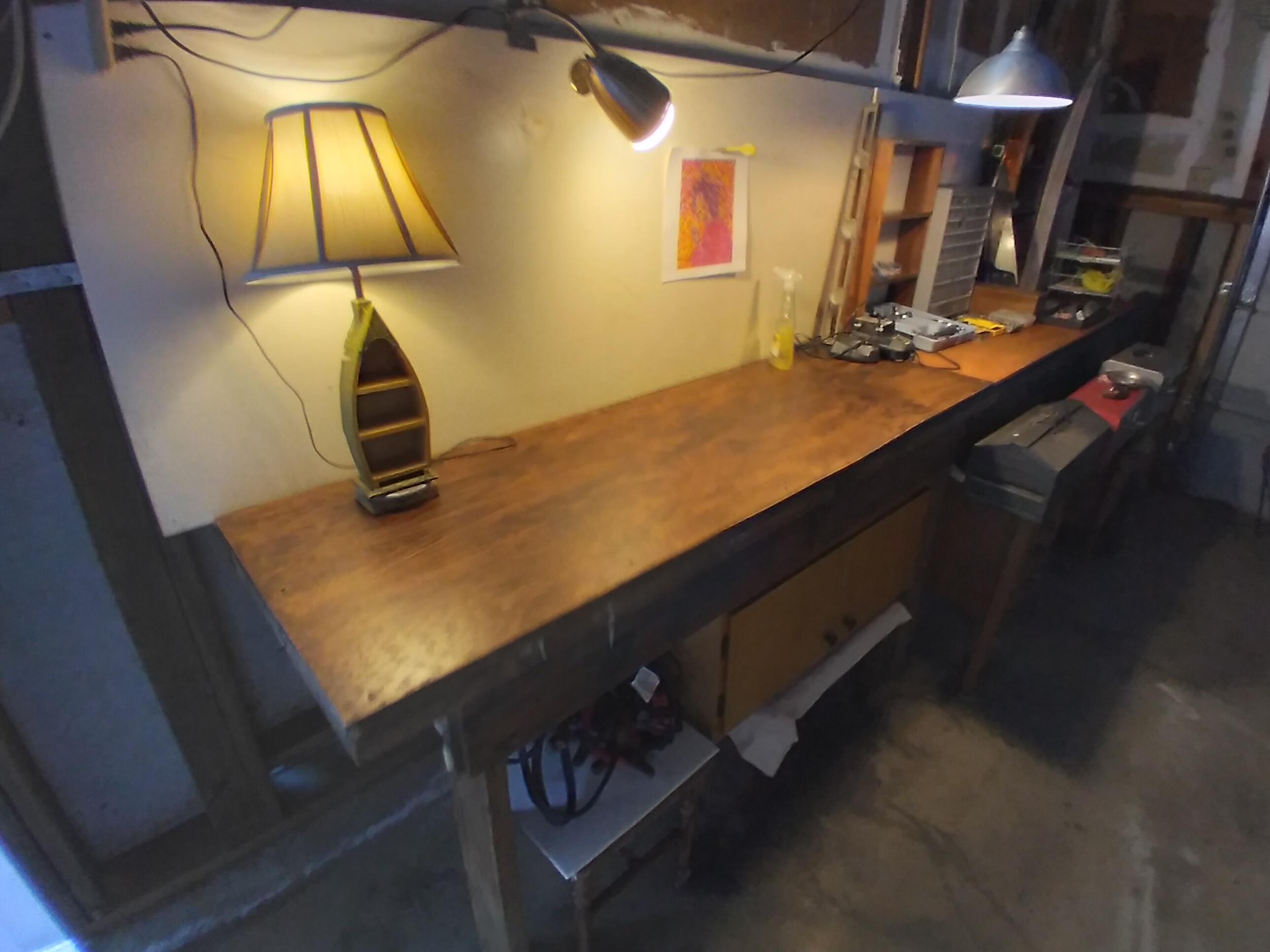 I previously used the counter to store my tool boxes, and general storage like my inherited family picture collection. General debris and clutter covered it making it unusable as a work space even if it were not so very dark.