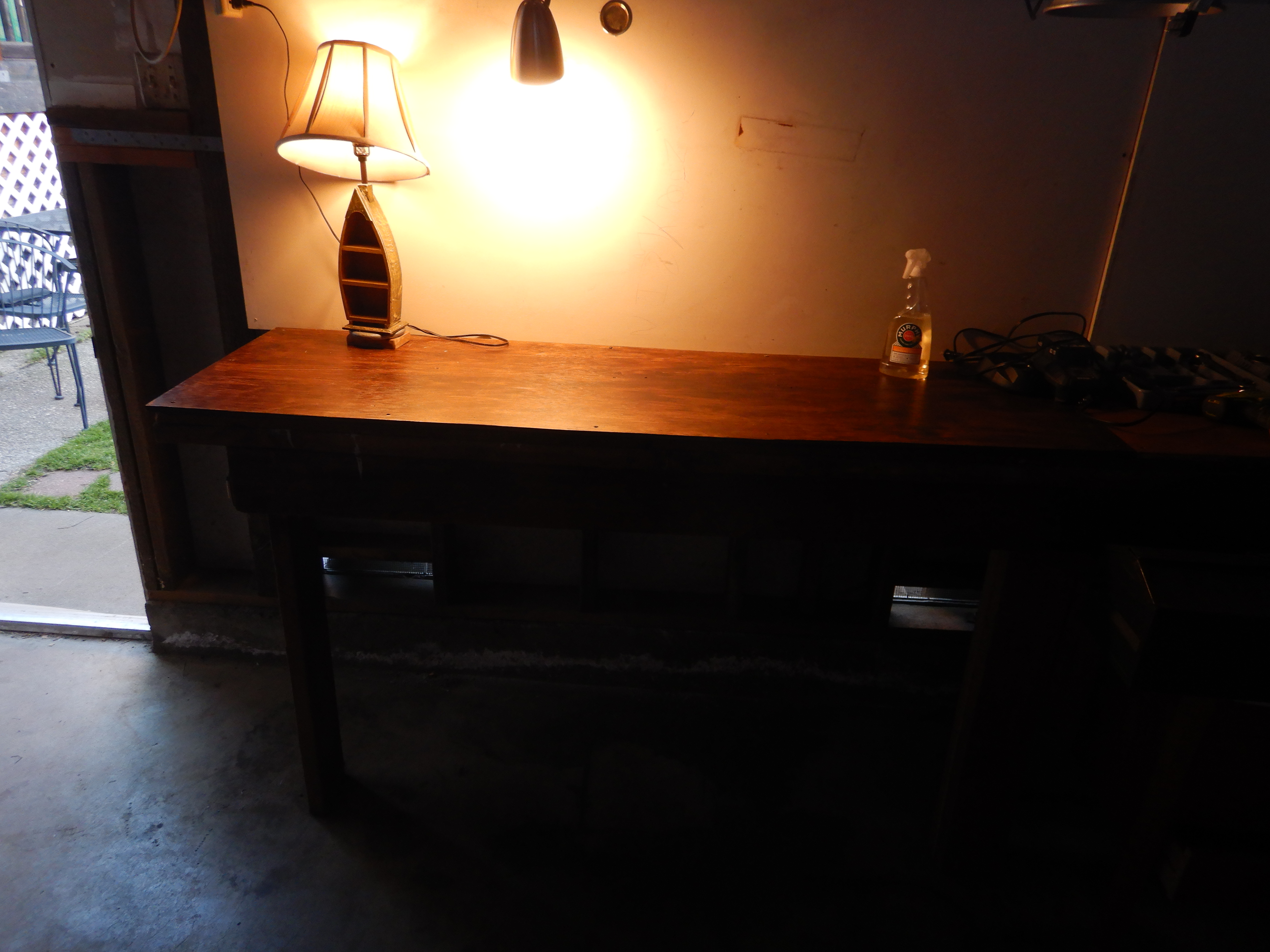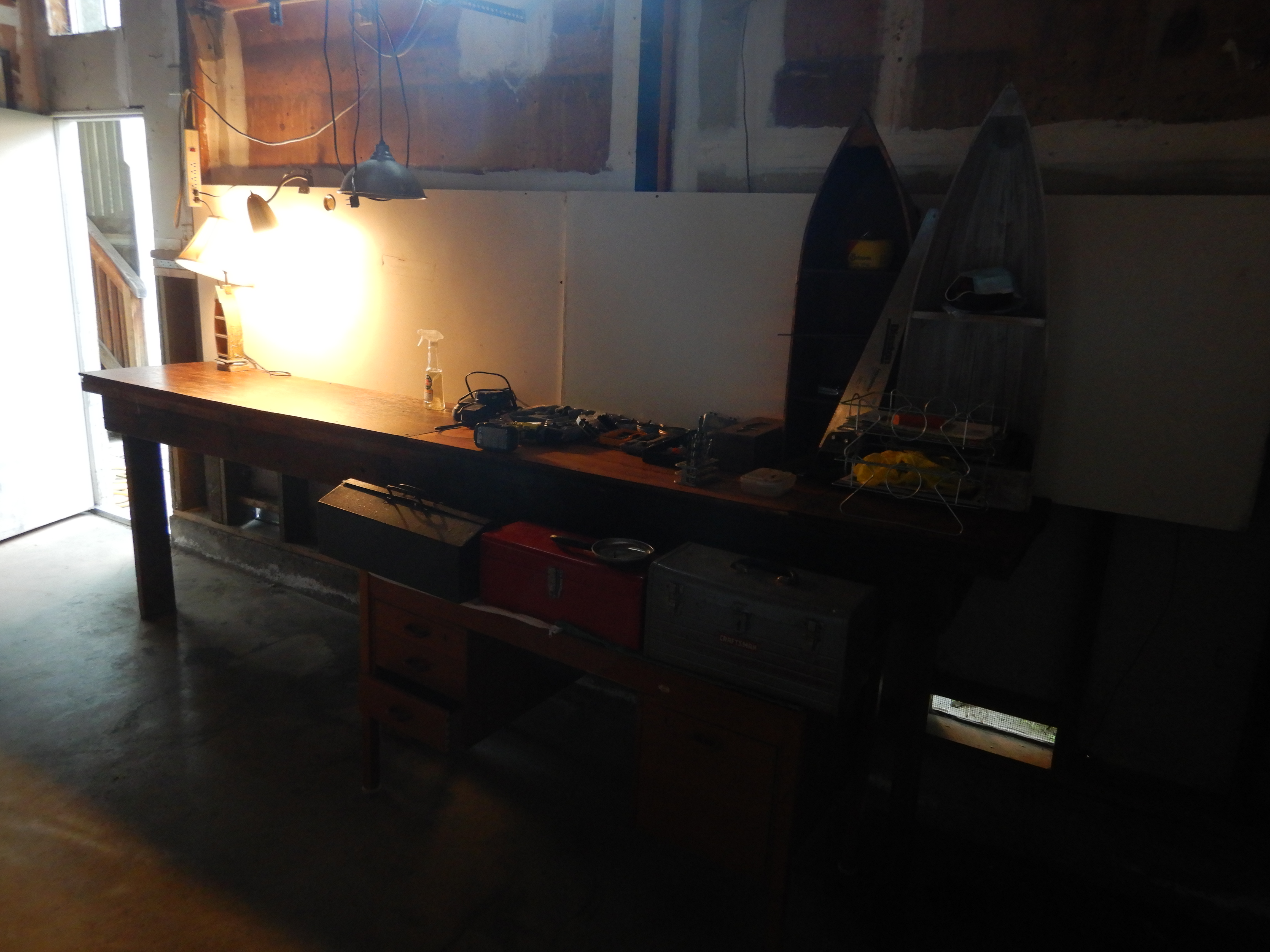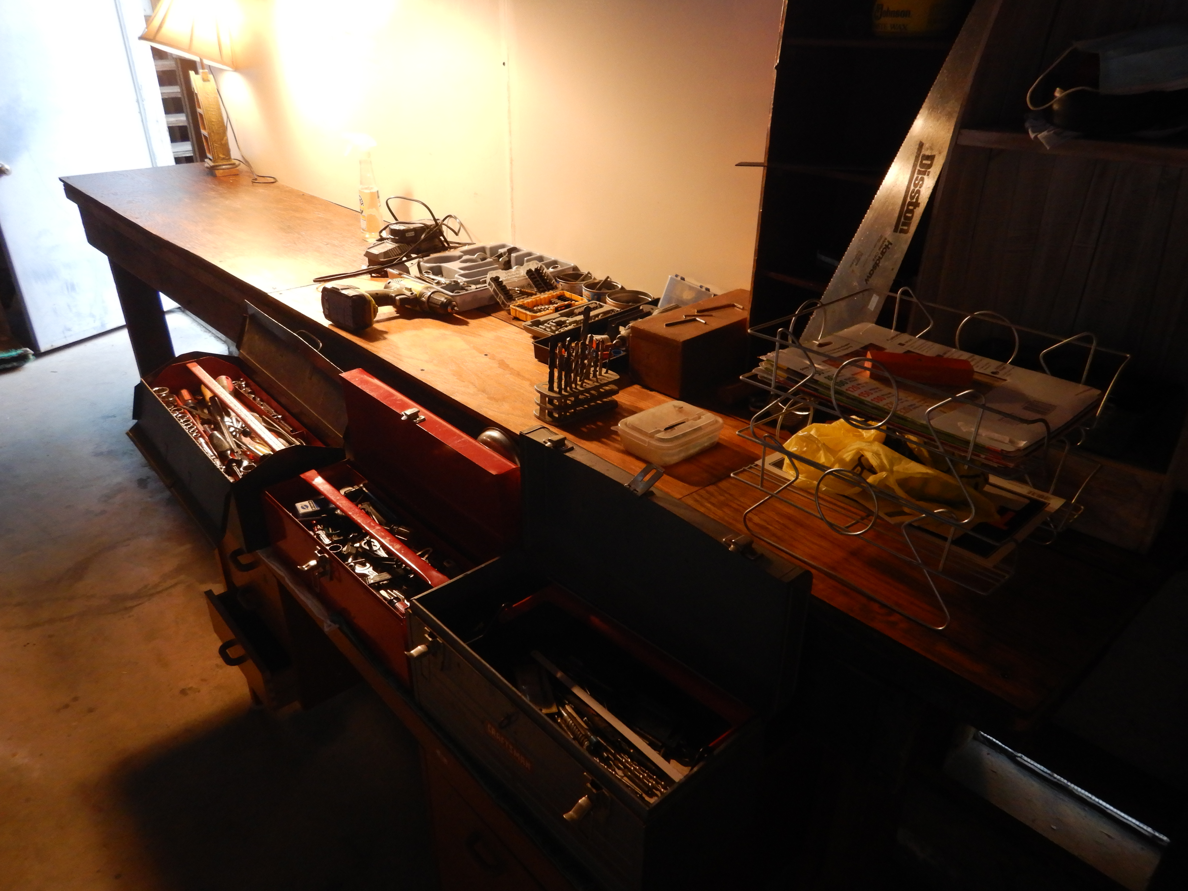 So my goal was to keep all my tools together to the right side of the work table, tool boxes on top, other tools stored in a wood desk and wood cabinet under the countertop.