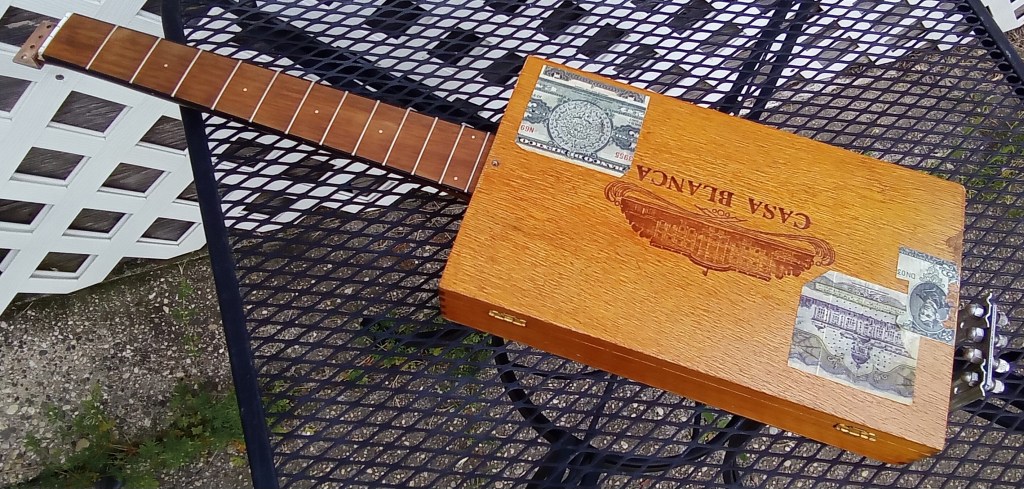 My last chance cigar box bass/guitar thingie is stalled at this point because I don’t know how to operate this fine new Hitachi router I inherited in 2021 from my craftsman daddy.