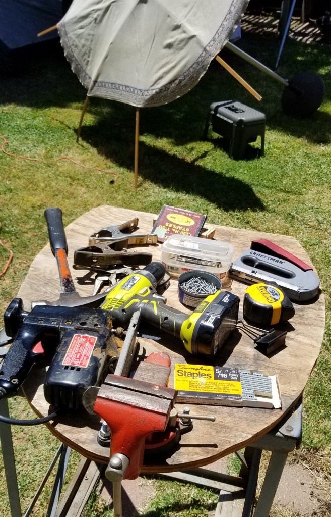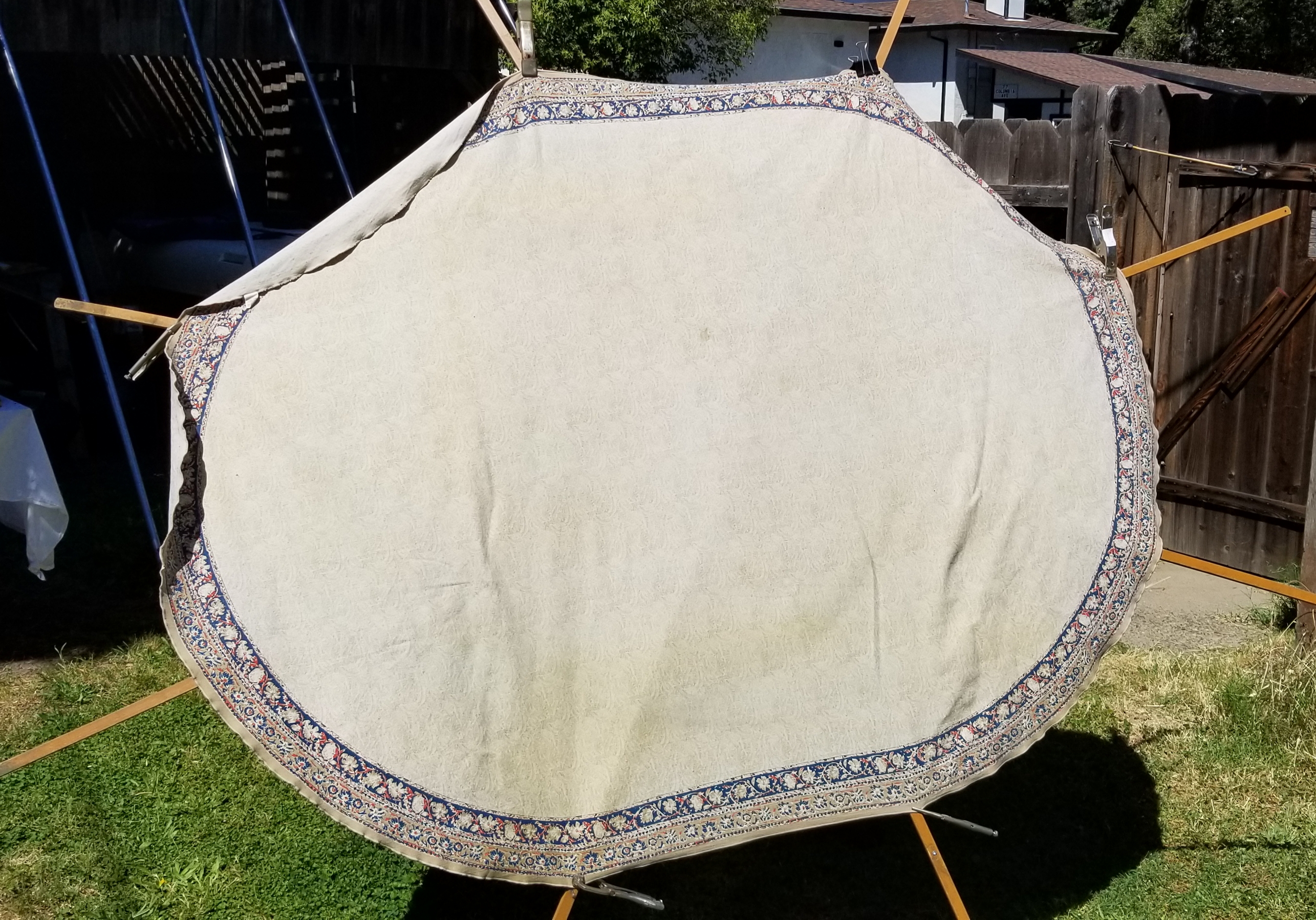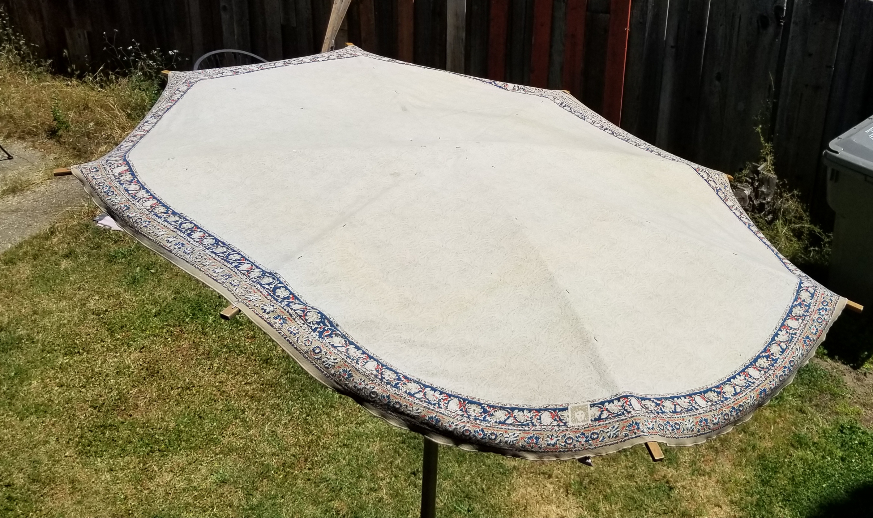 The nice old round cotton tablecloth I inherited from somewhere. I used it as a dust cover for years in the garage.