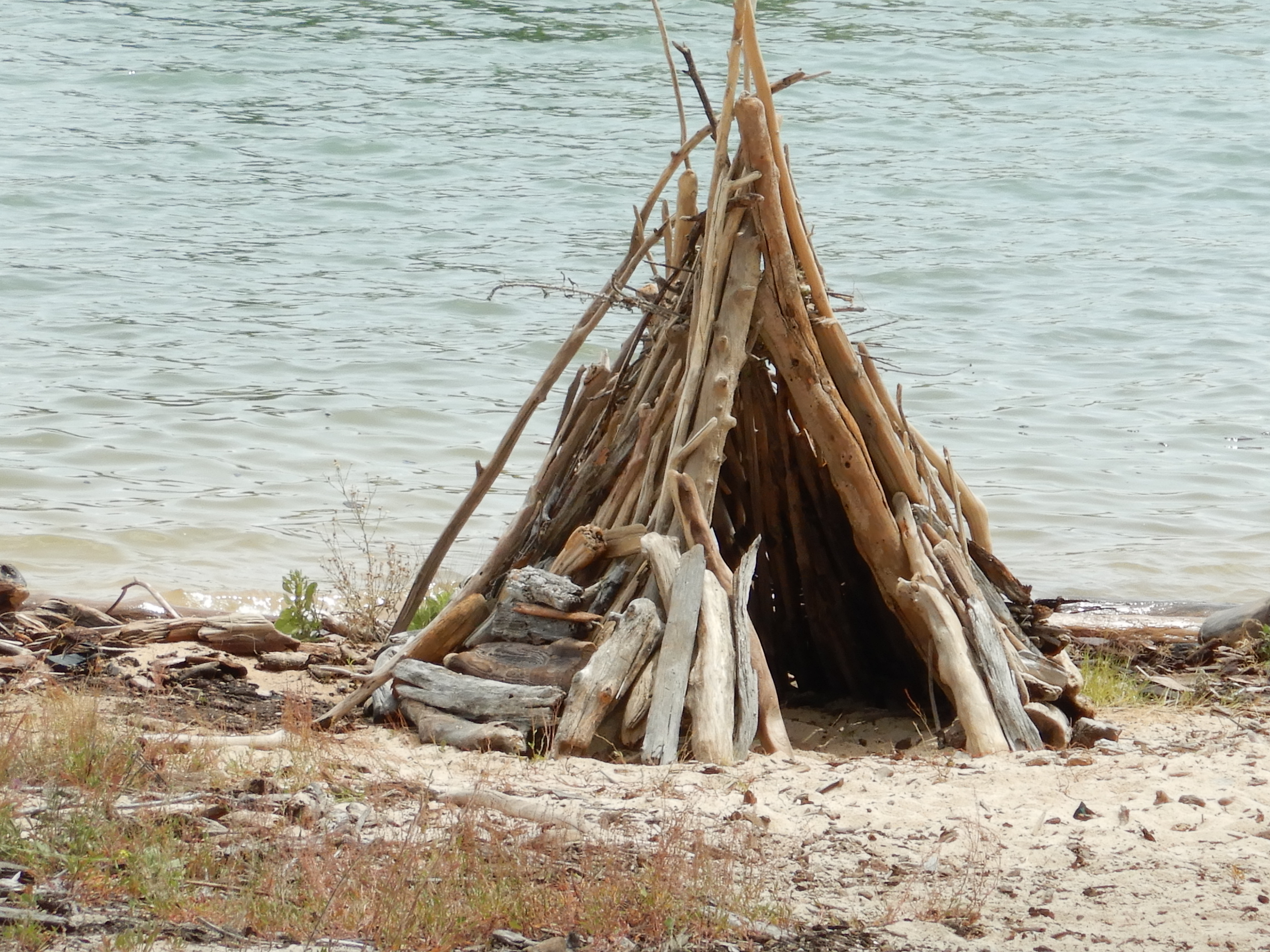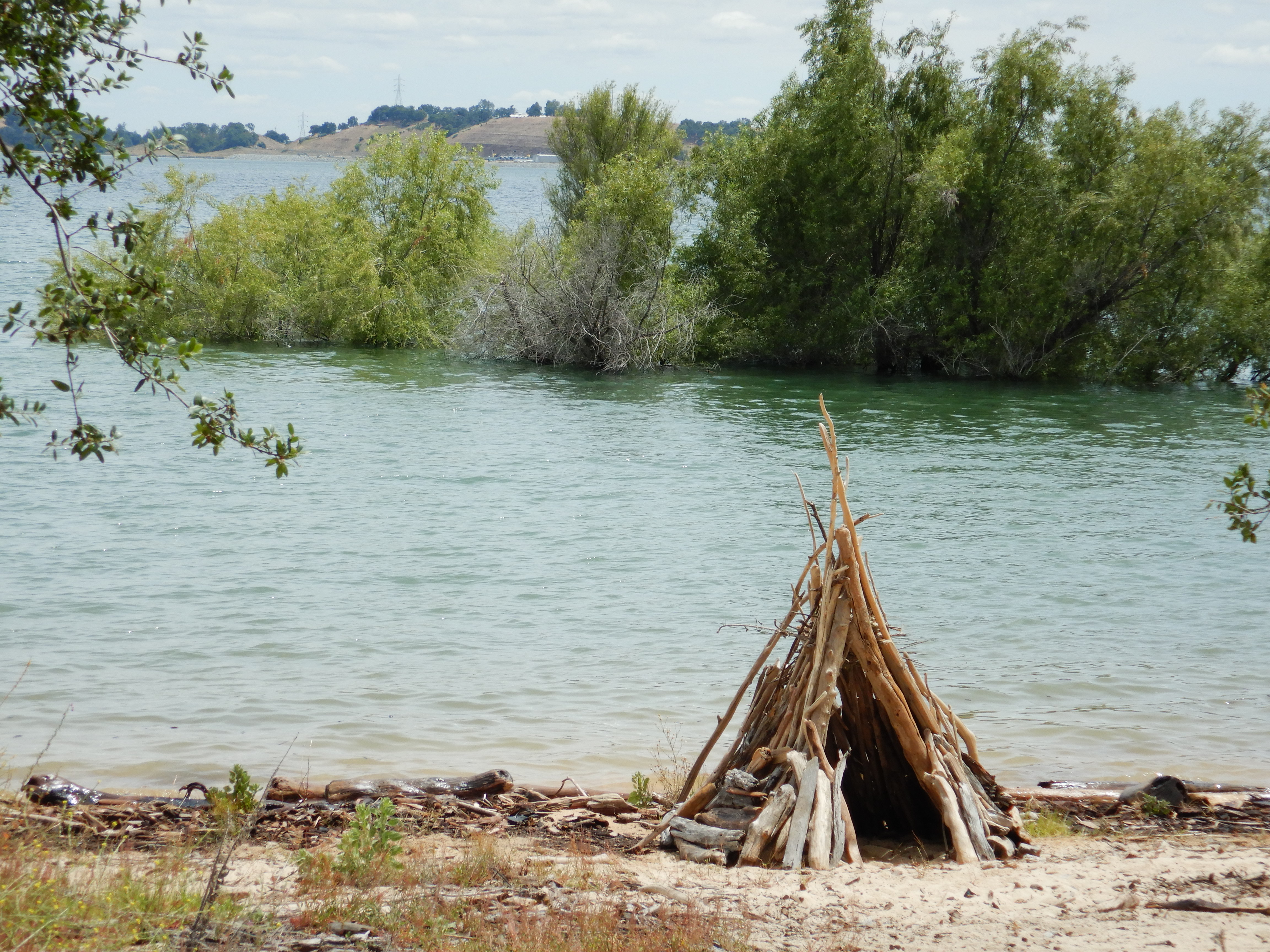 Originally built far from the distant water for welcome shade, the teepees now have boat wake waves lapping at them from the near record high water levels.