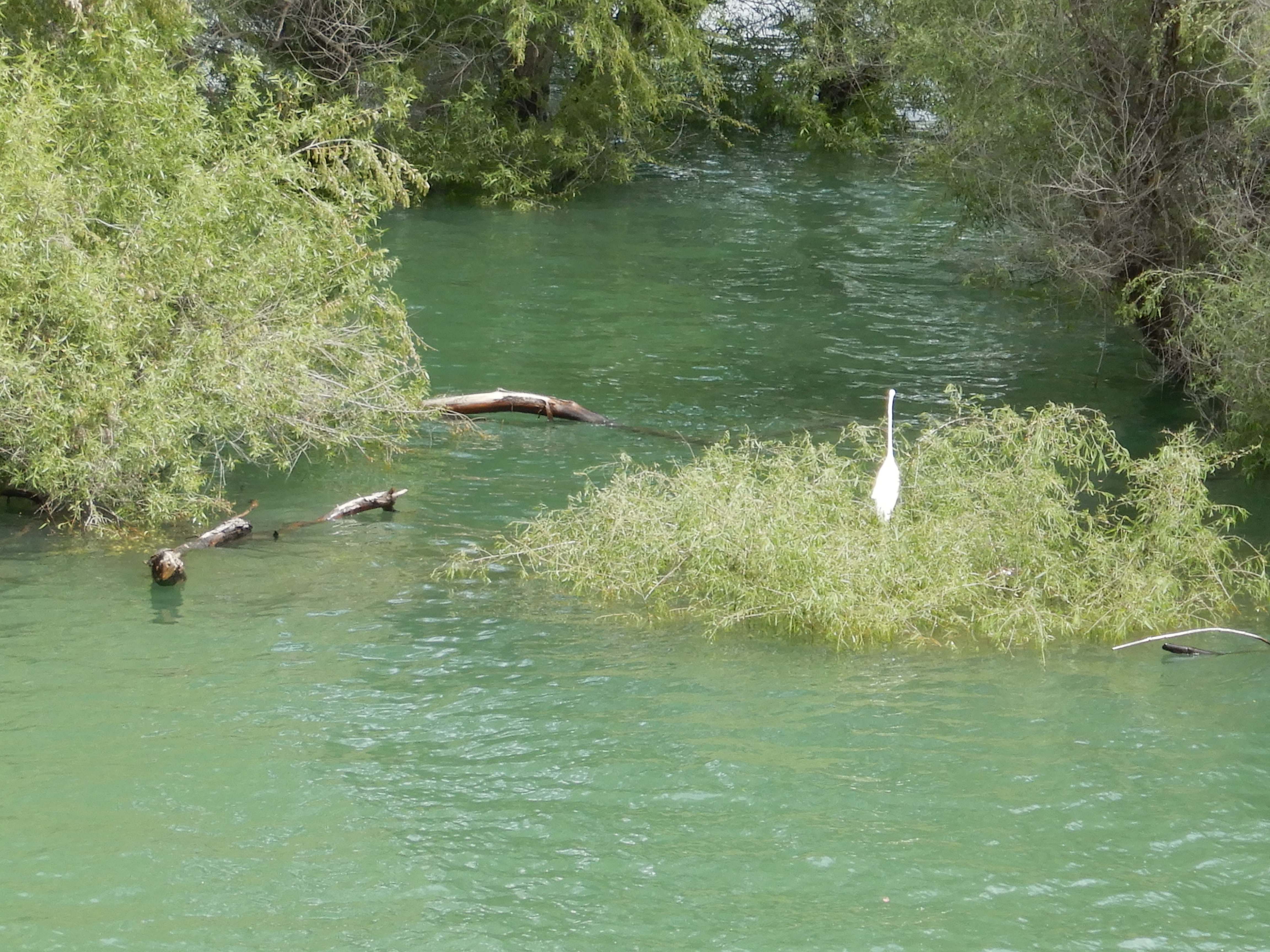 I’ve paddled my inflatable kayak around flooded trees like this here before, and I know what this snowy or cattle egret is hunting. The many fish that school around the tree clumps, feeding on the bounty of flooded land. Though I’m sure she’d skewer and devour any stray frog, lizard or snake in the foliage as well.
