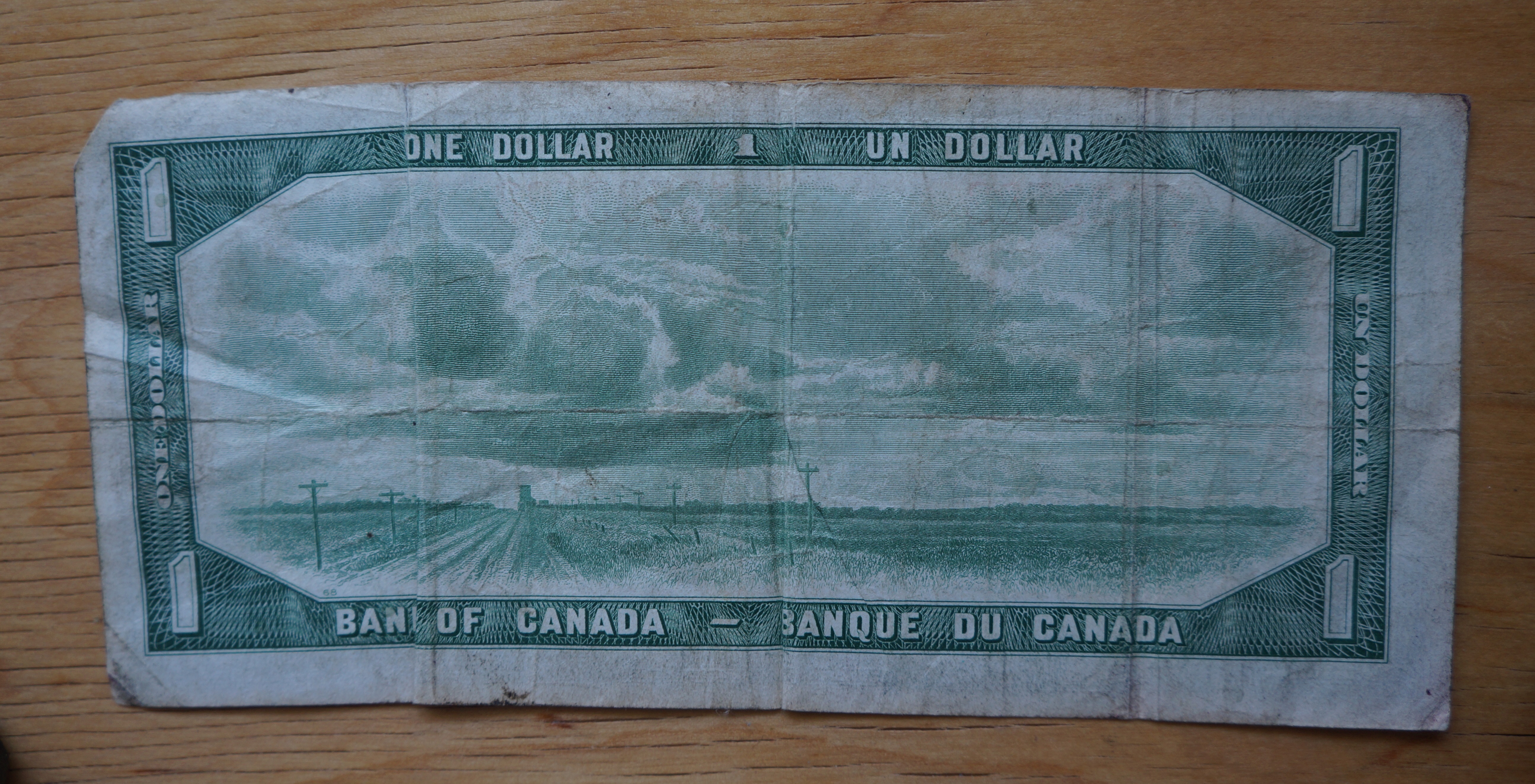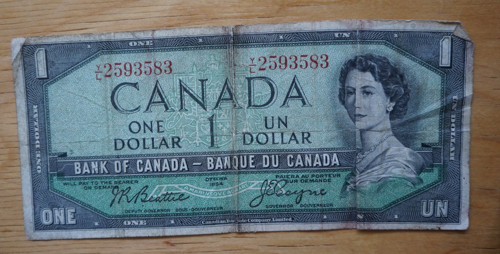 From 1954, a Canadian dollar. Green is a popular color for money.