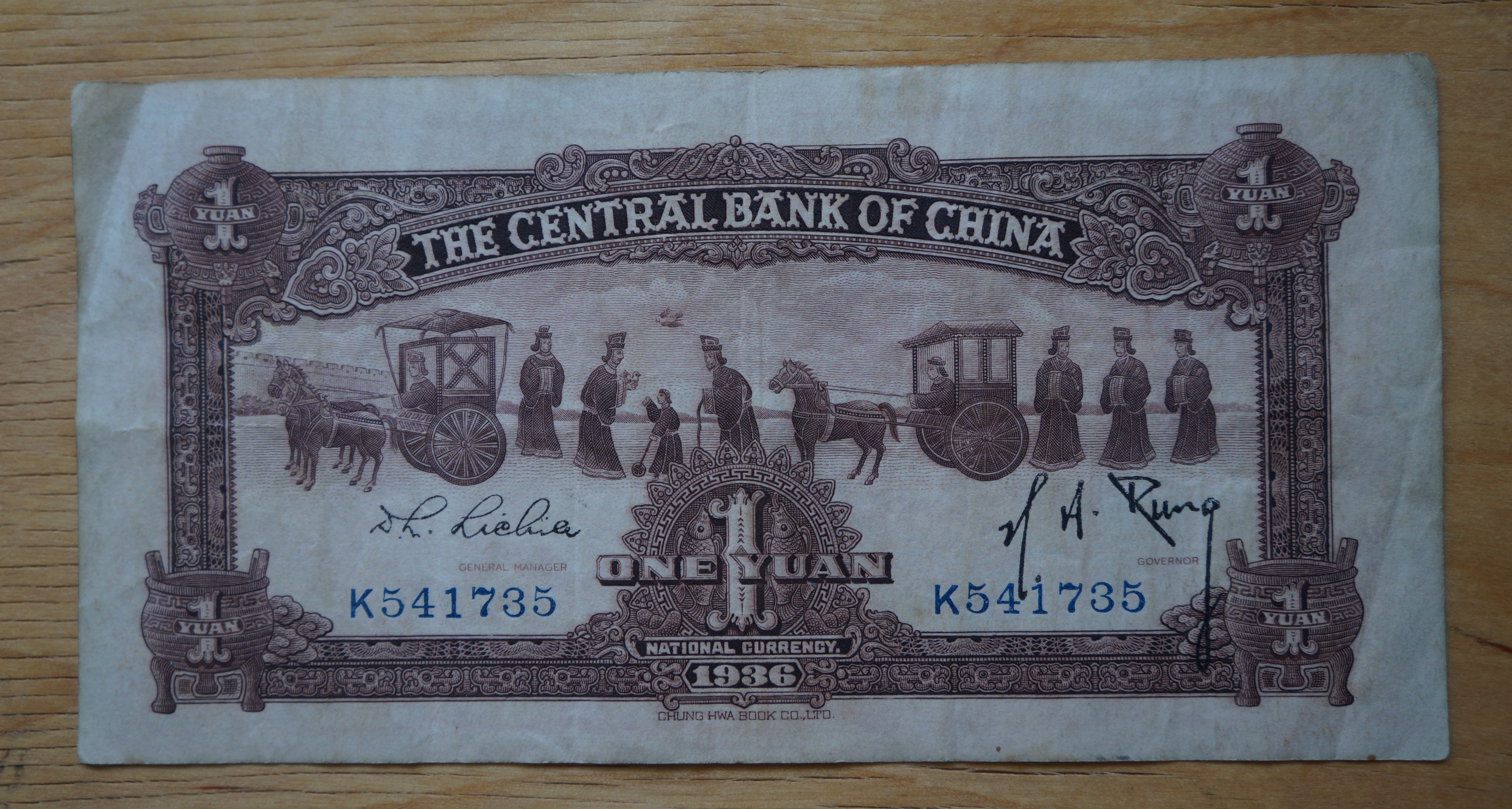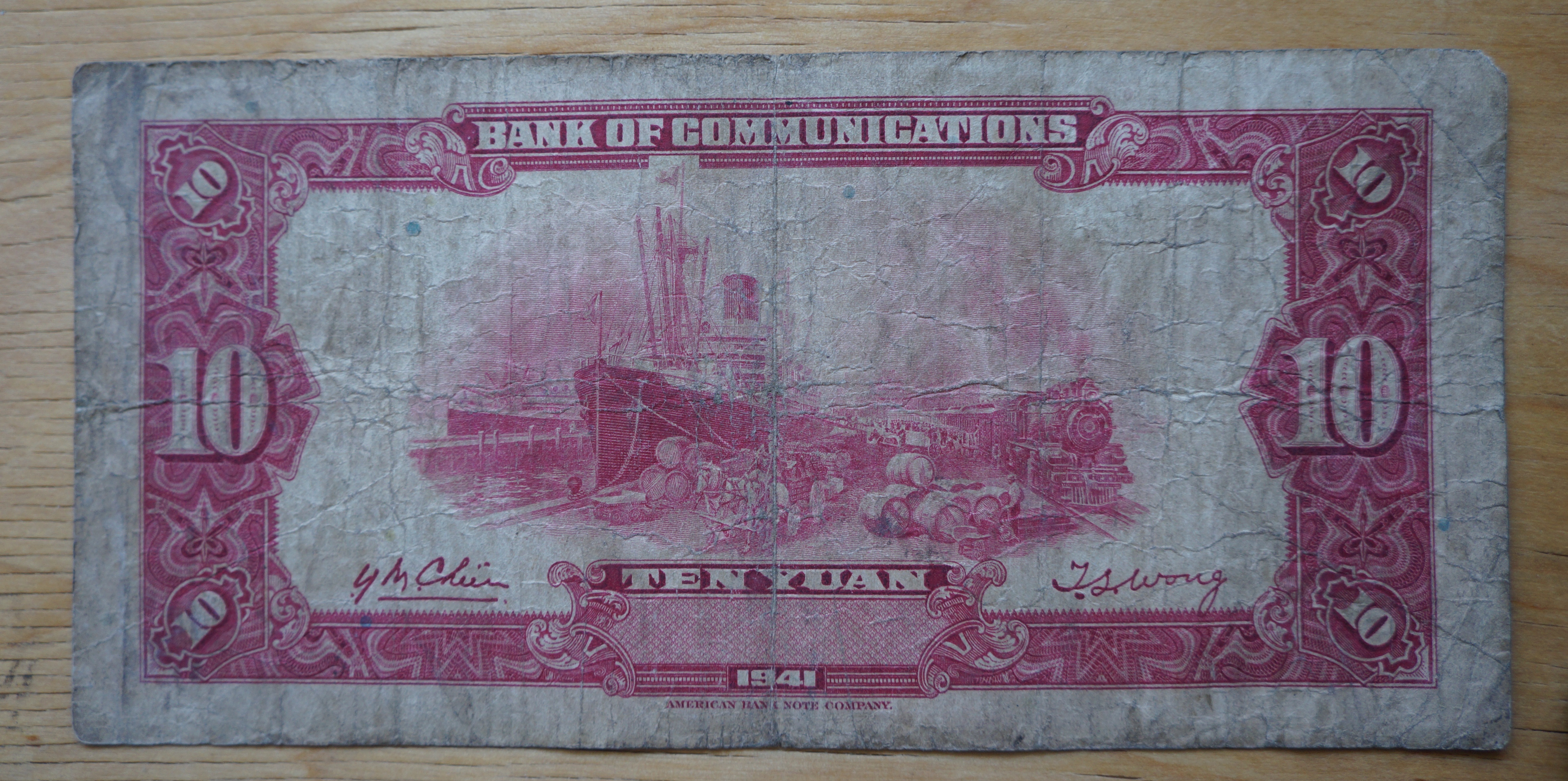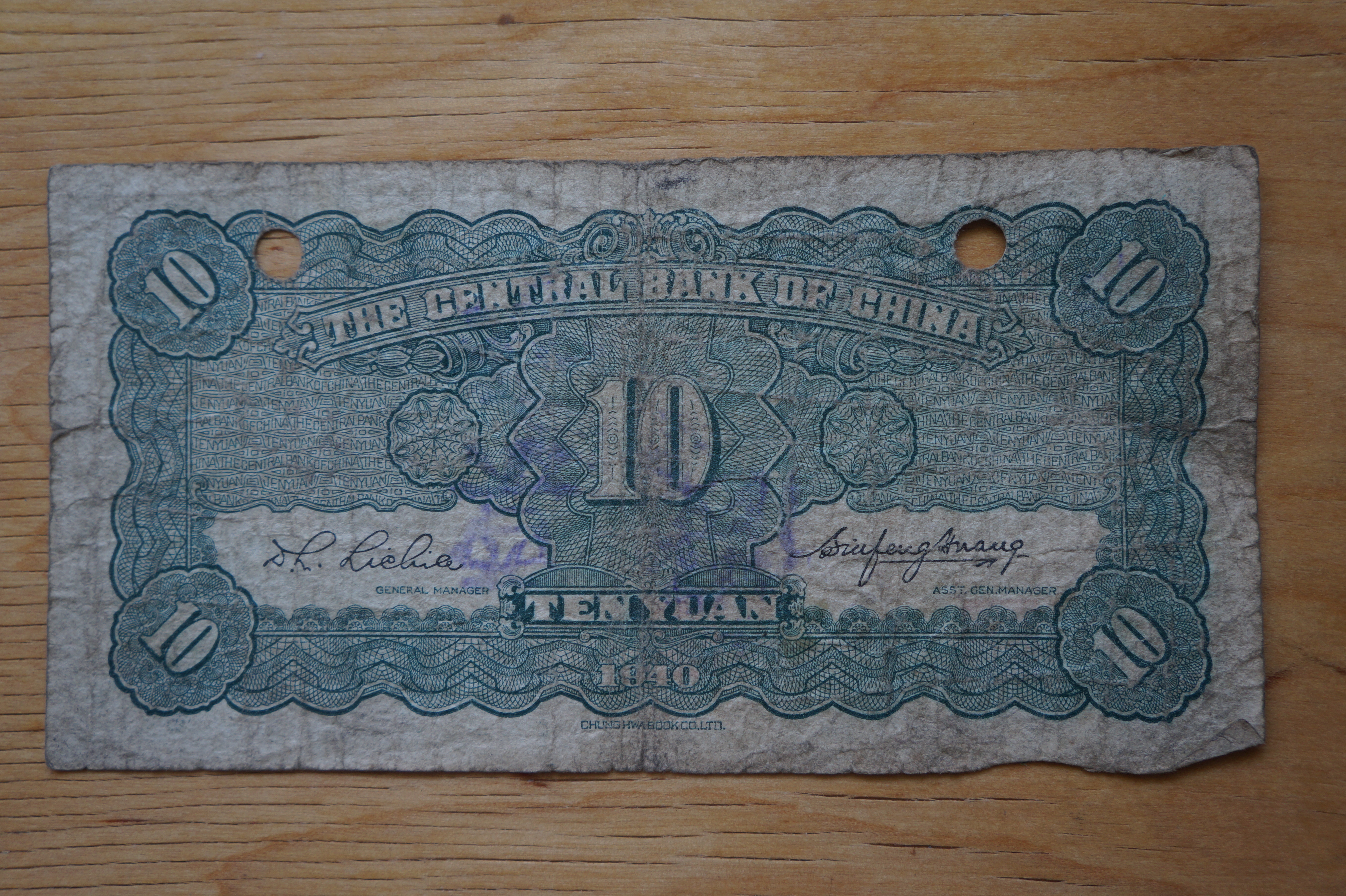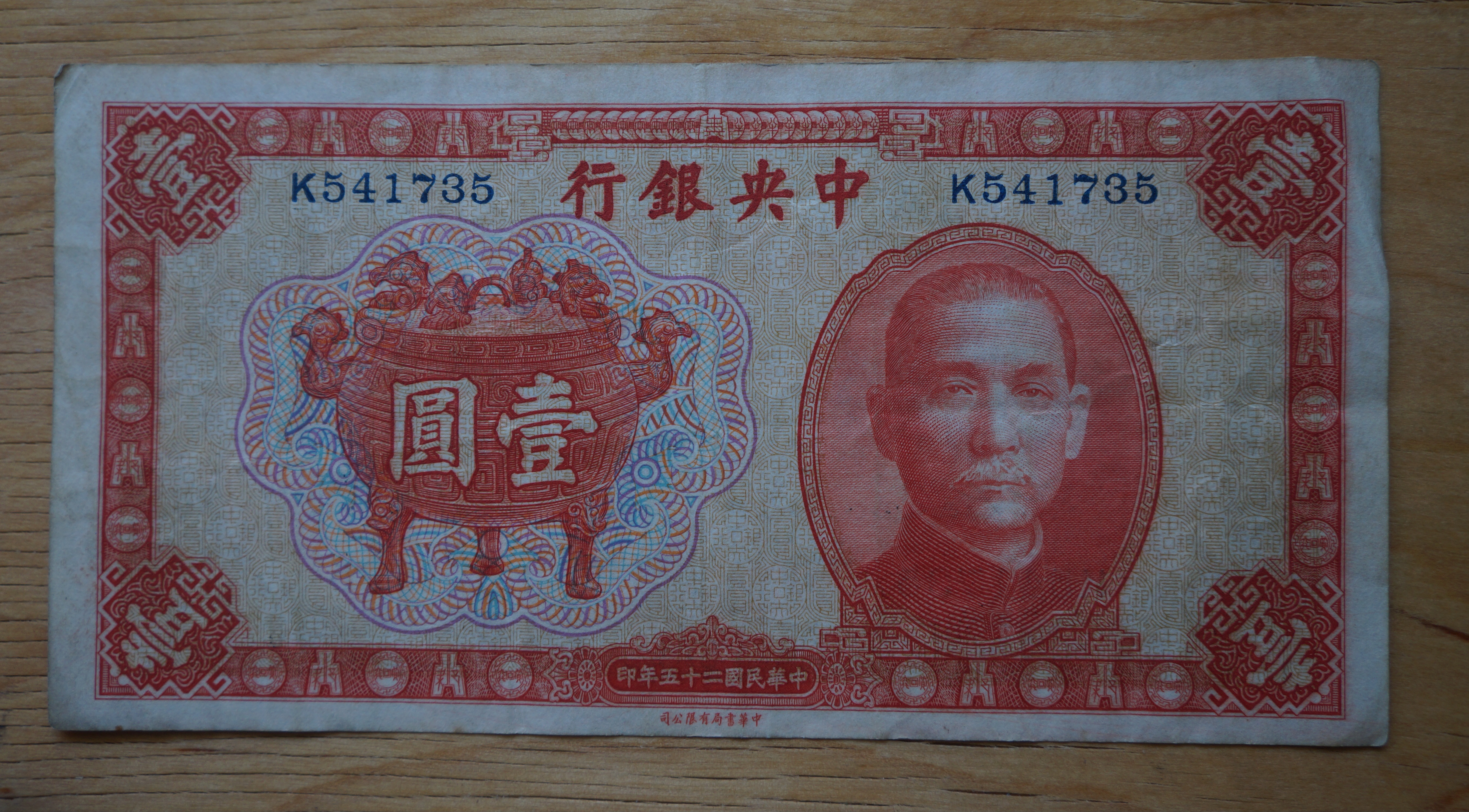 This bill was printed in China by the Zhonghua_Book_Company, who printed bank notes for China from 1931-1949.