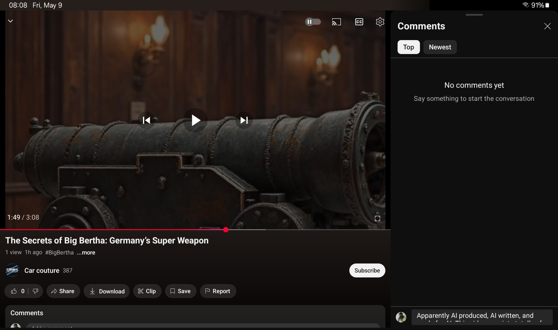 I didn’t get to the end so I don’t know if it was even mentioned. The video ‘content creator’, Car couture (sic on capitalization), probably stole the footage from a video tour of a random military museum.