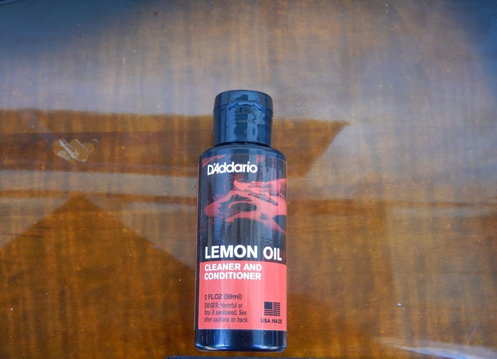 The fretboard looks lots darker and prettier after lemon oil treatment.