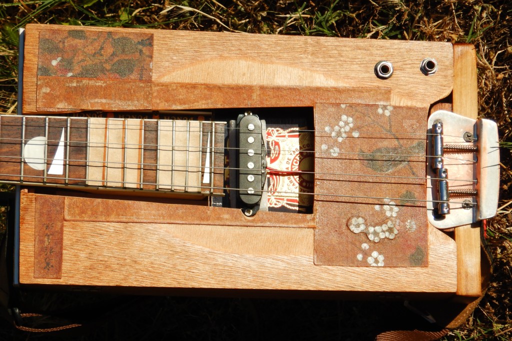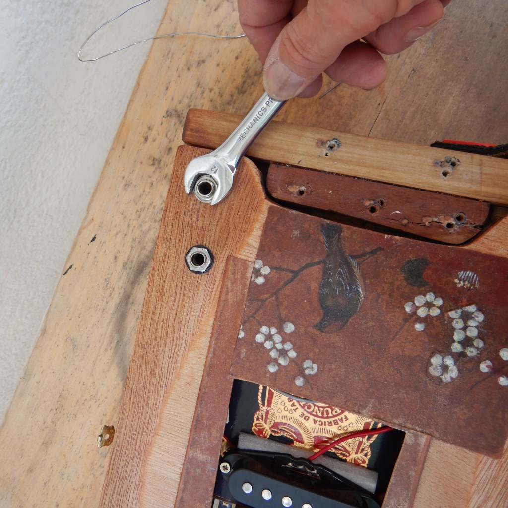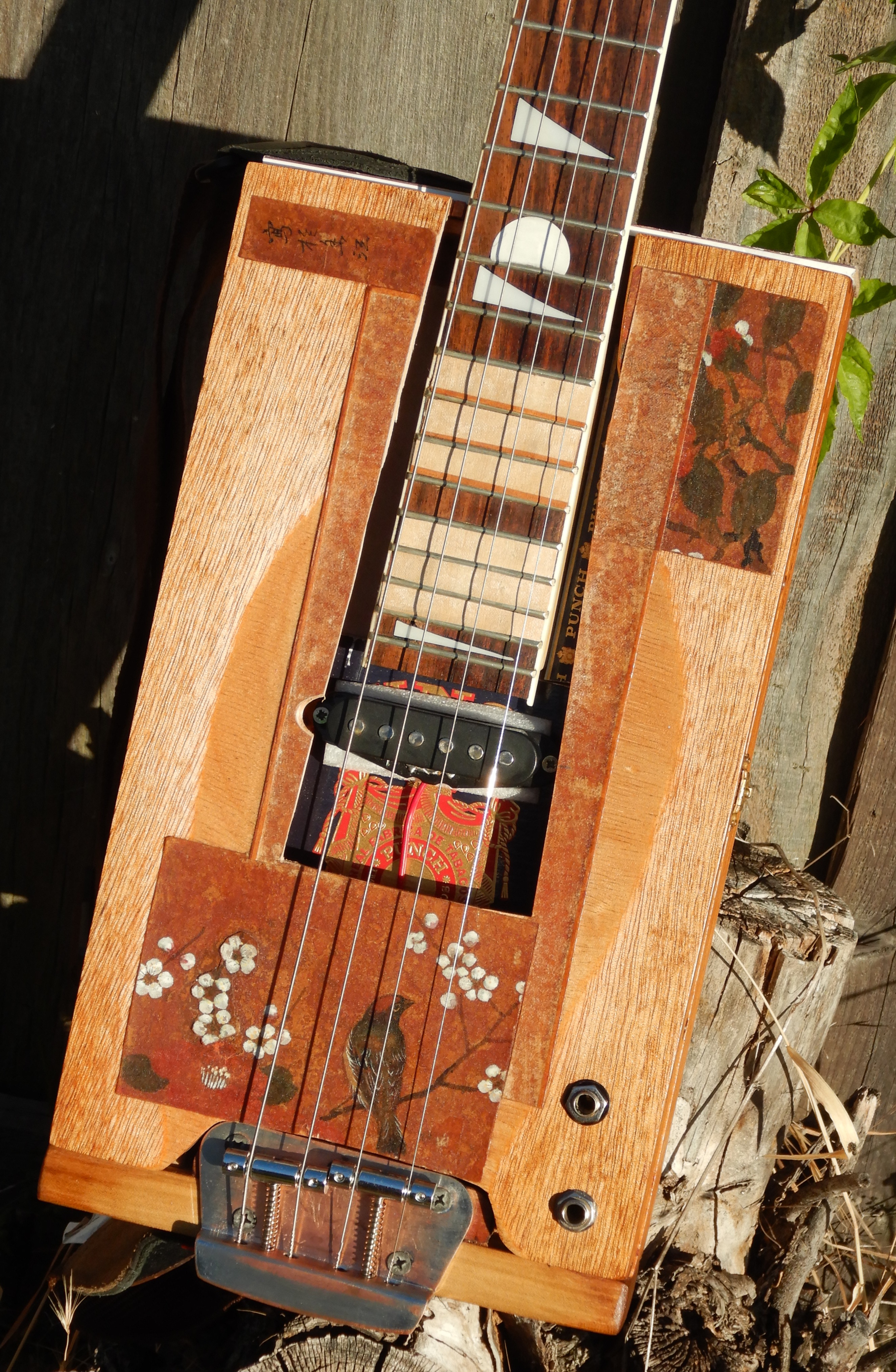 Today I installed both a salvaged magnetic straight coil pickup, and a second, piezo electric one in my piccolo bass cigar box guitar project.