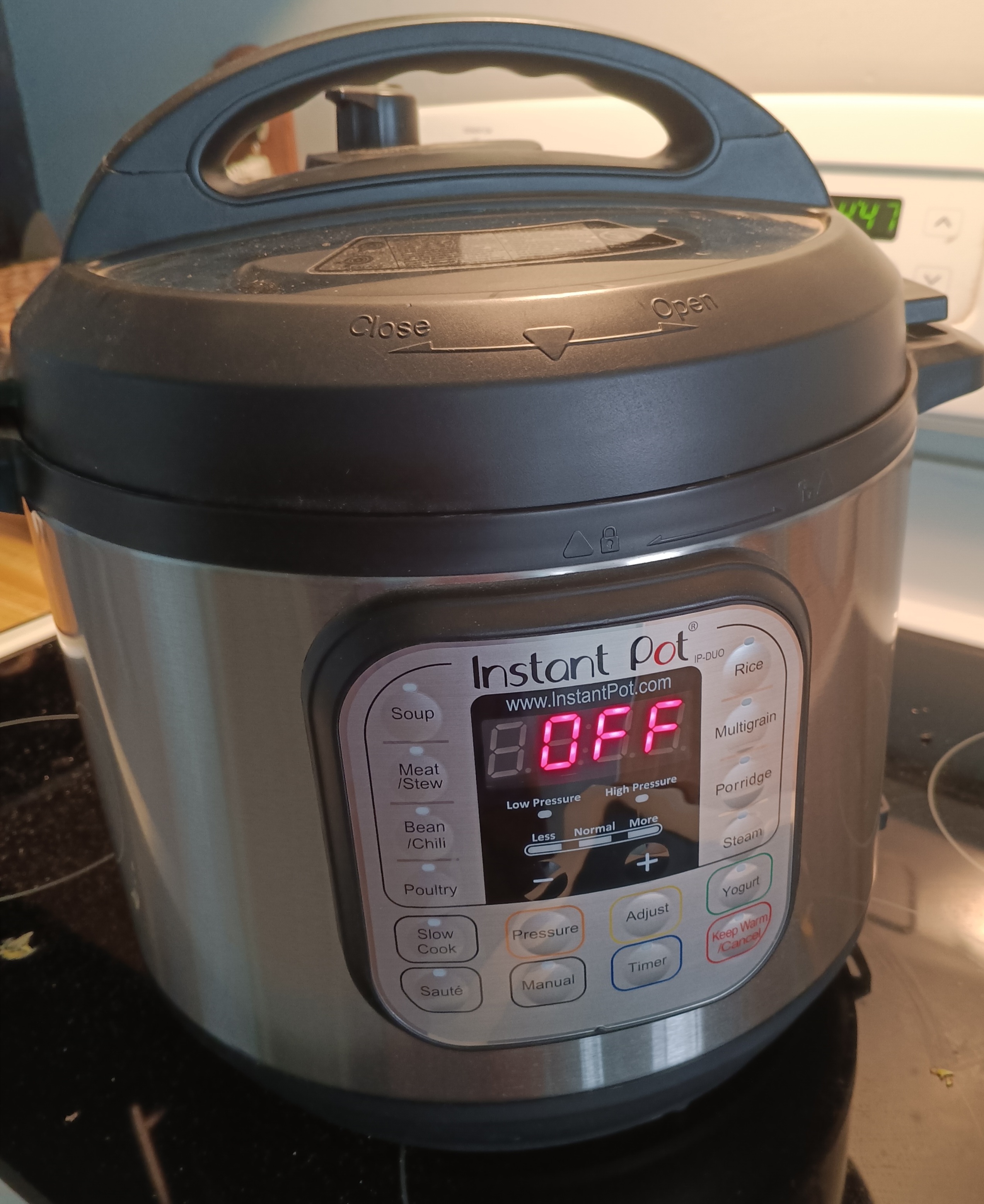 I needed to vent the steam so I pushed the vent lever on top, careful to keep fingers well to the side as the steam shot out the top, taking quite some time. Then I could open the lid.